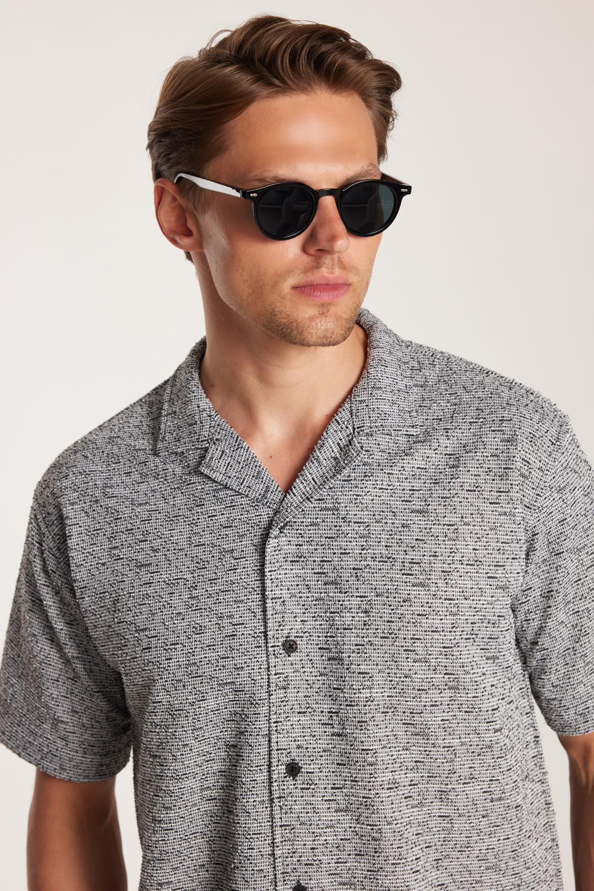 Erkek Relax Fit Rahat Kesim Örme Kırçıllı Dökümlü Kısa Kollu Apaş Yaka Gömlek