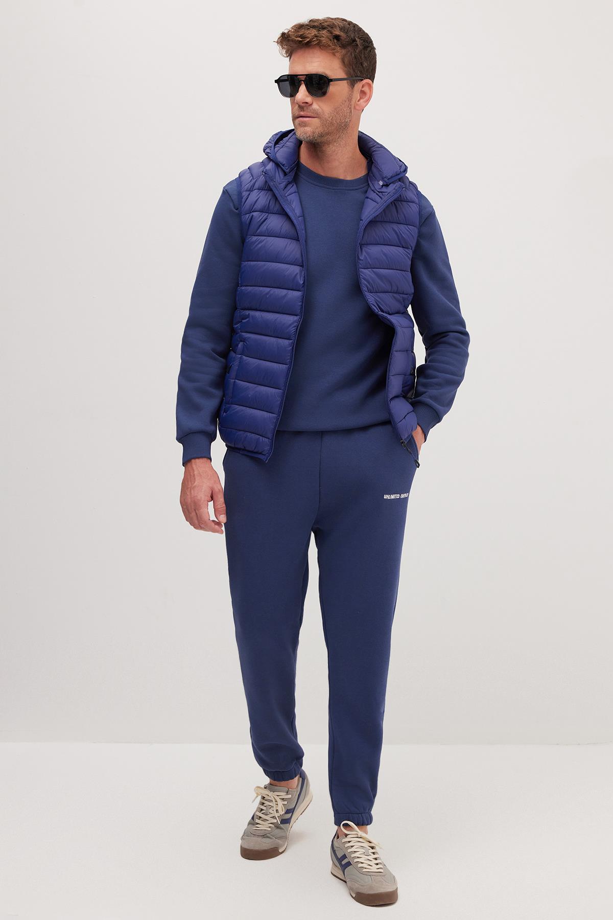 Erkek Relax Fit Rahat Kesim Sıfır Kol Kapüşonlu Çift Cepli Fermuarlı Mavi Şişme Yelek