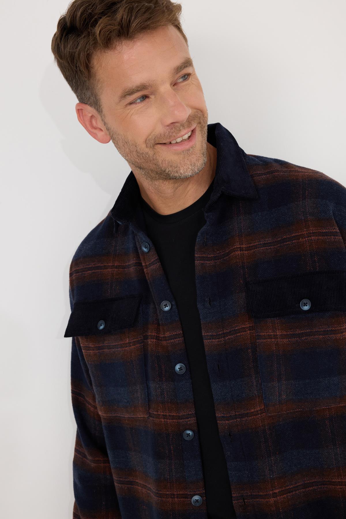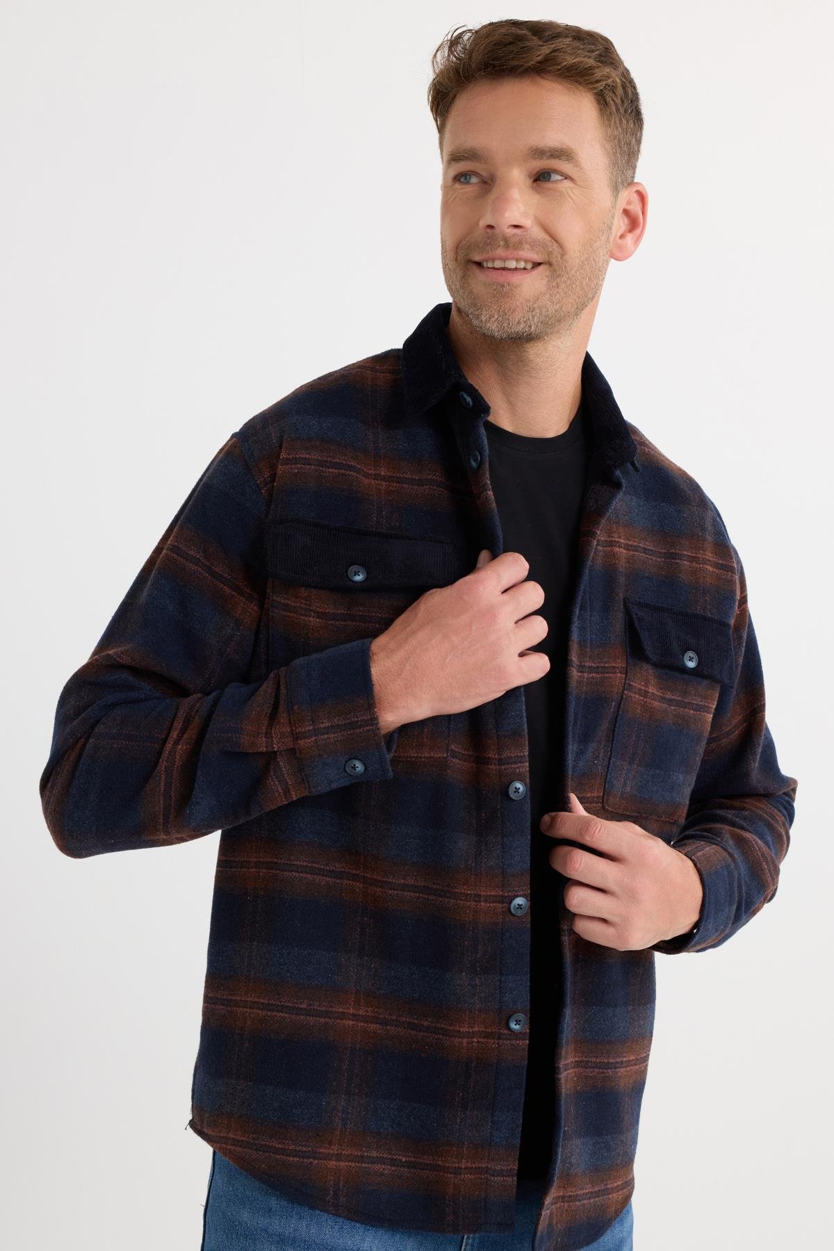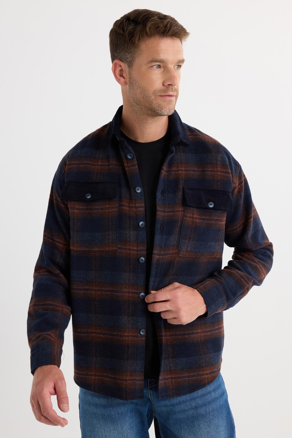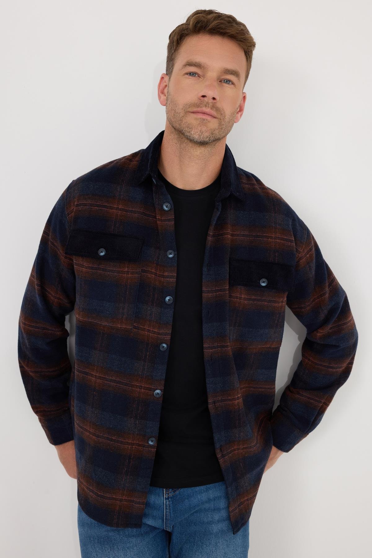 Erkek Relax Fit Rahat Kesim Spor Yaka Kareli Çift Cep Kapaklı Kışlık Gömlek