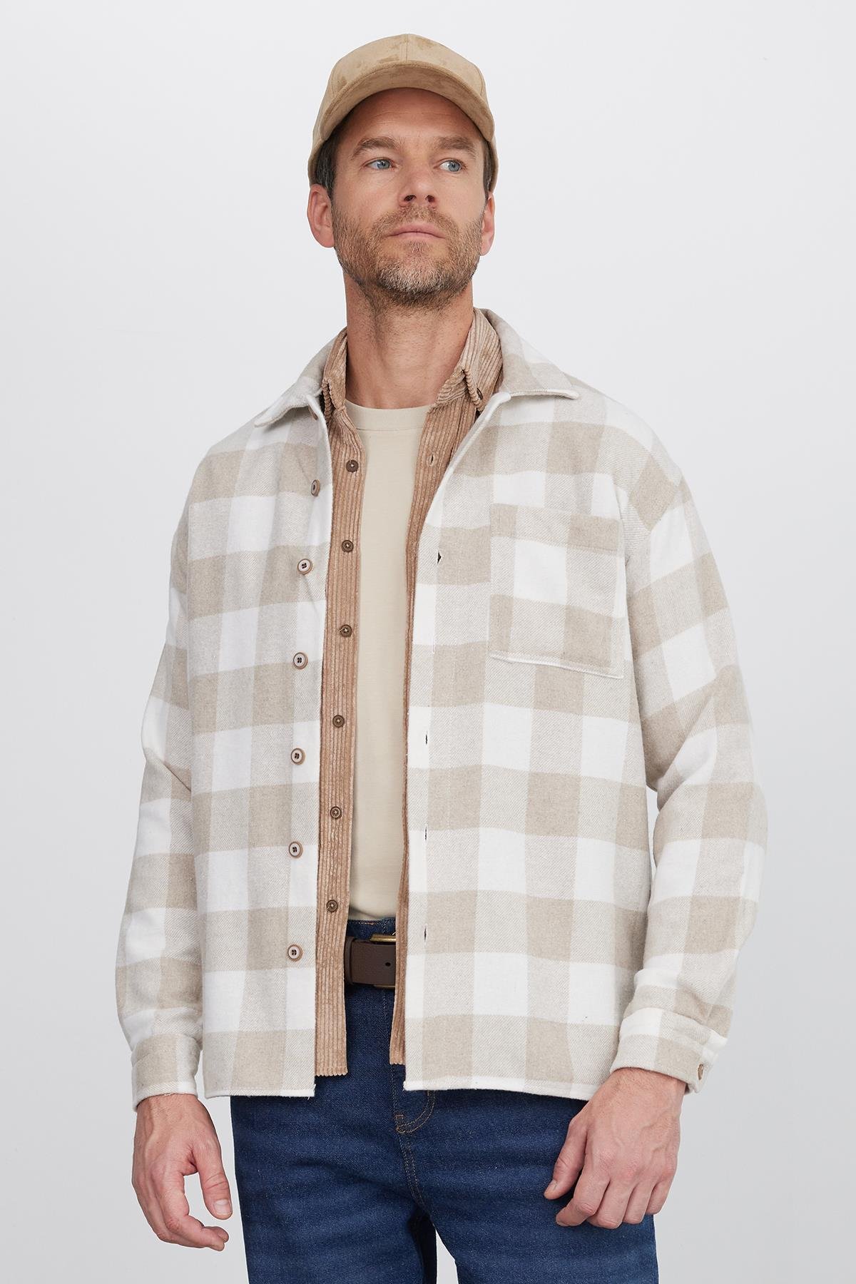 Erkek Relax Fit Rahat Kesim Uzun Kollu Cepli Dama Desen Kareli Apaş Yaka Kışlık Oduncu Gömlek (RF250079-2441)