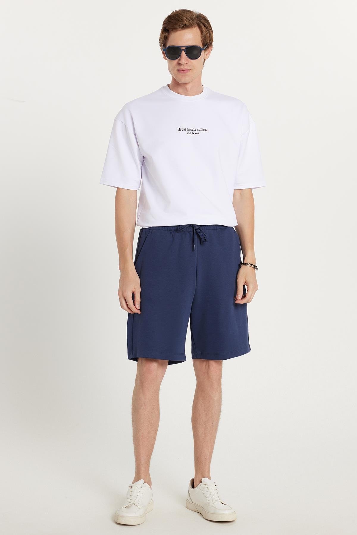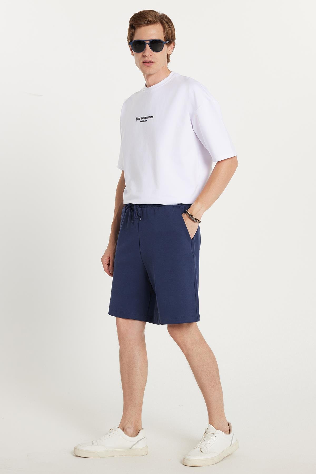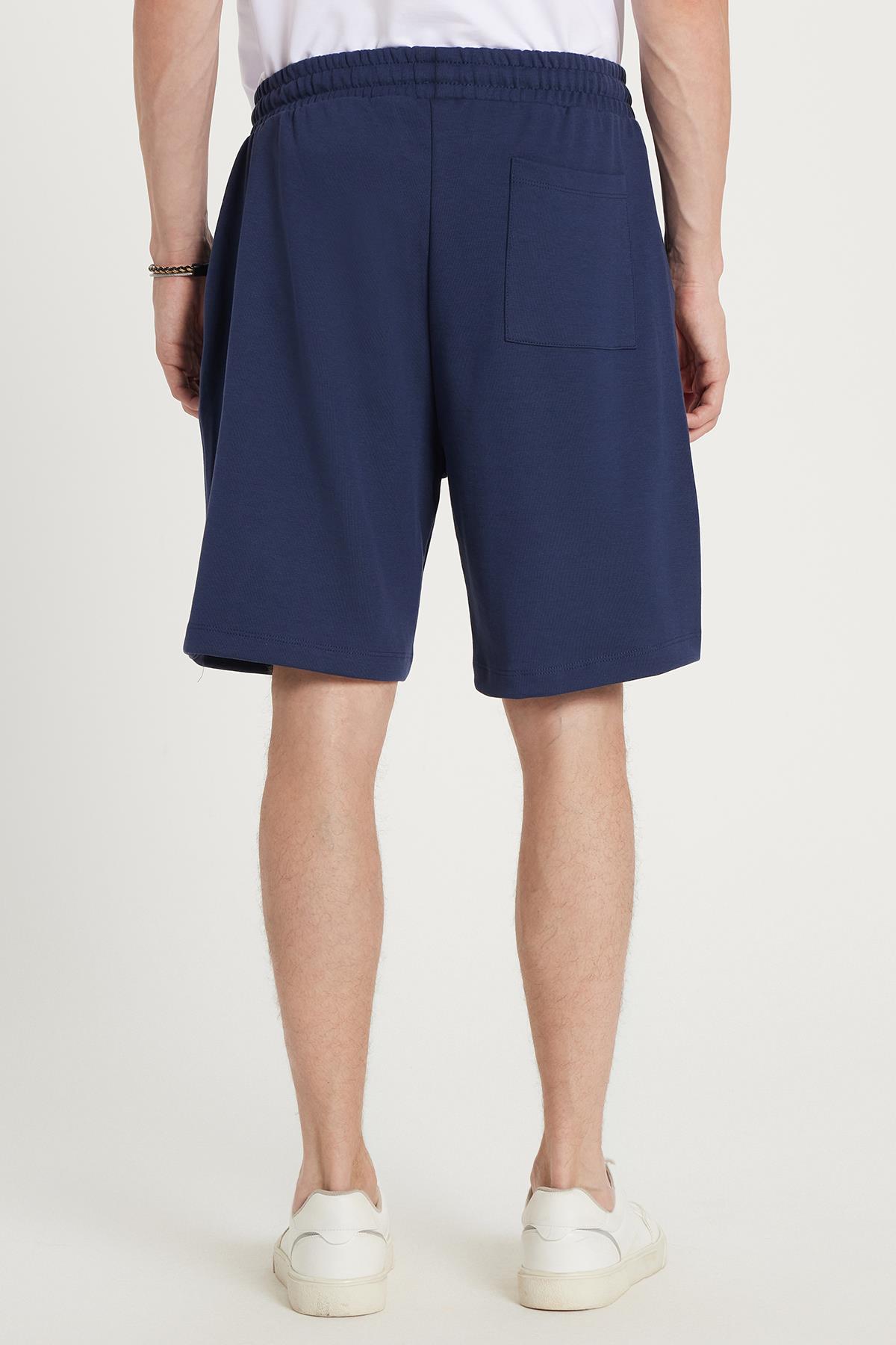 Erkek Relax Fit Rahat Kesim Yandan Cepli Lacivert Bermuda Şort