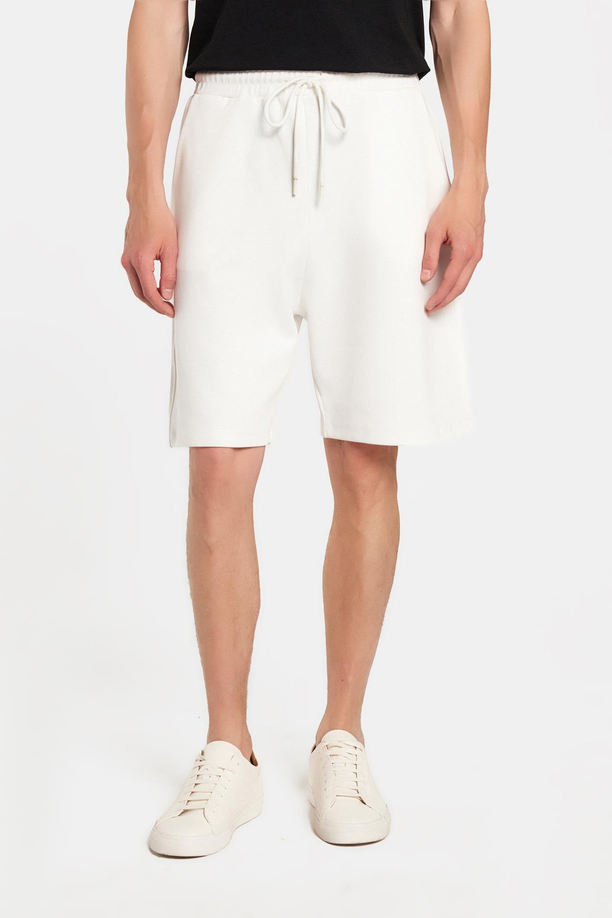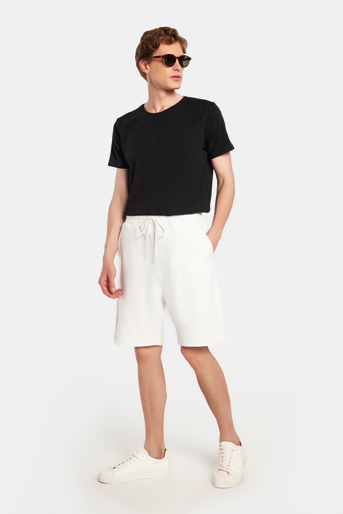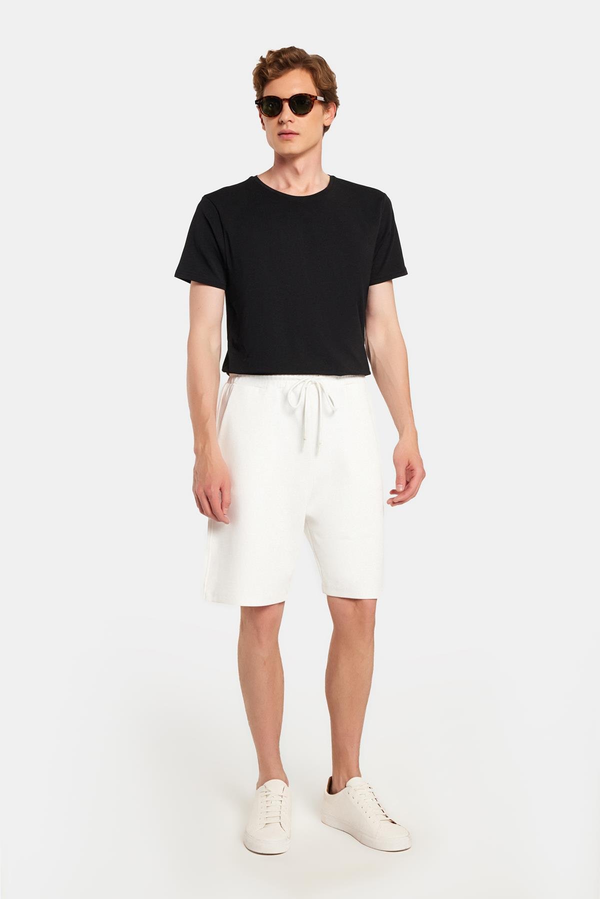 Erkek Relax Fit Rahat Kesim Yandan Cepli Beyaz Bermuda Şort (SRT25005-01)