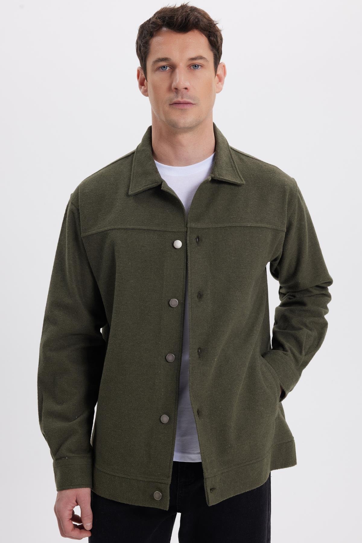 Erkek Relax Fit Rahat Kesim Yandan Flota Cep Oduncu Haki Kaşe Ceket Mont Gömlek (RF250075-48)