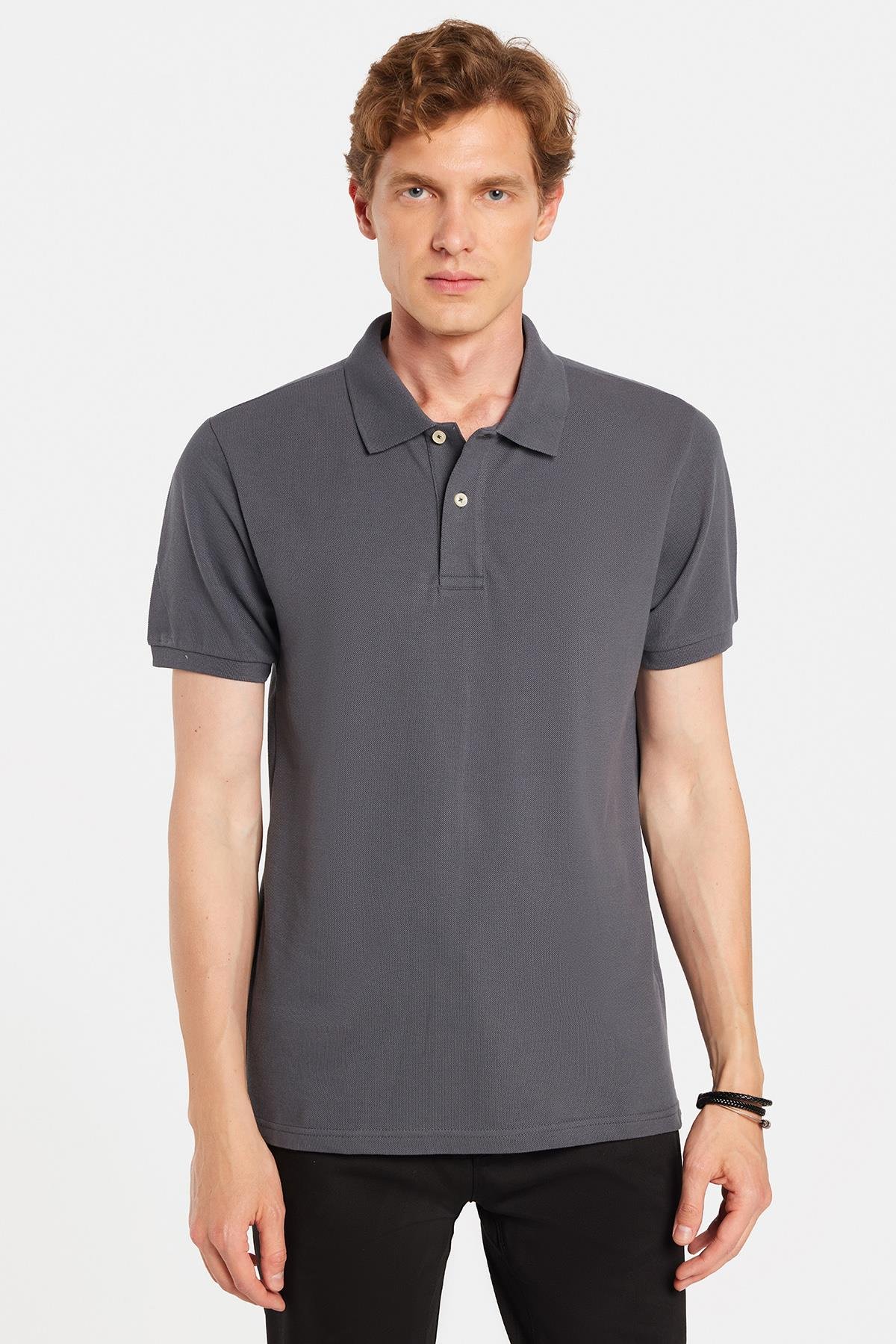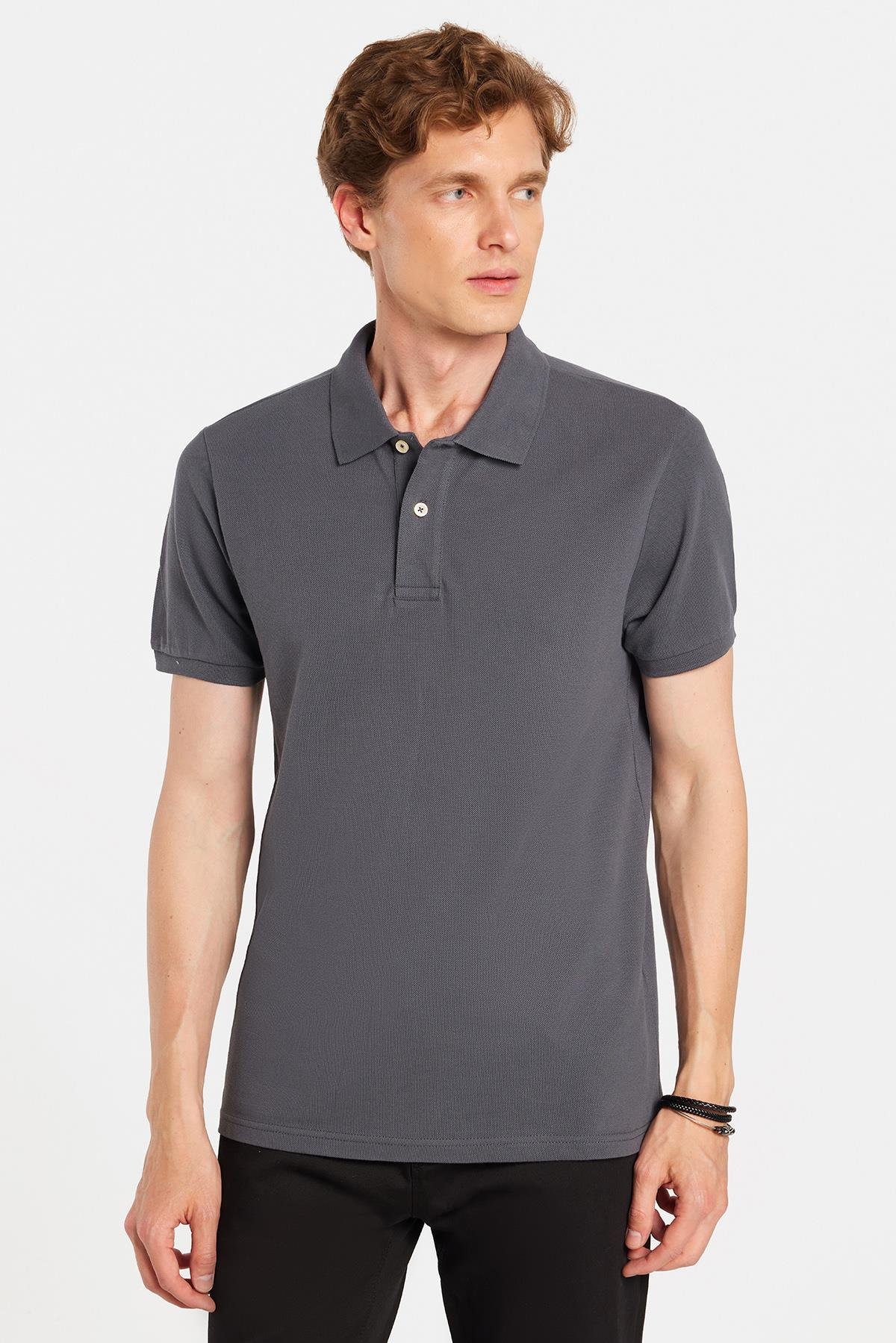 Erkek Slim Fit Dar Kesim %100 Pamuk Antrasit Polo Yaka Tişört (TS250001-IRNGT)