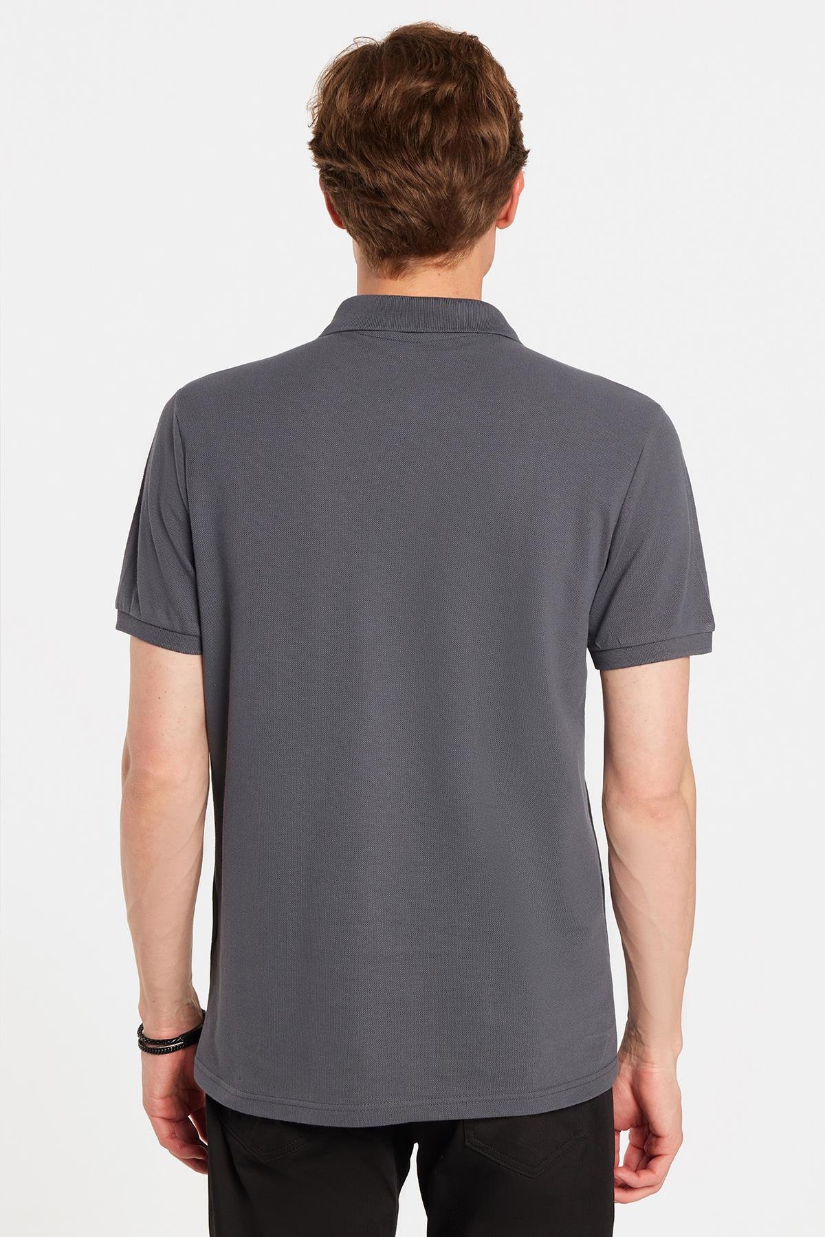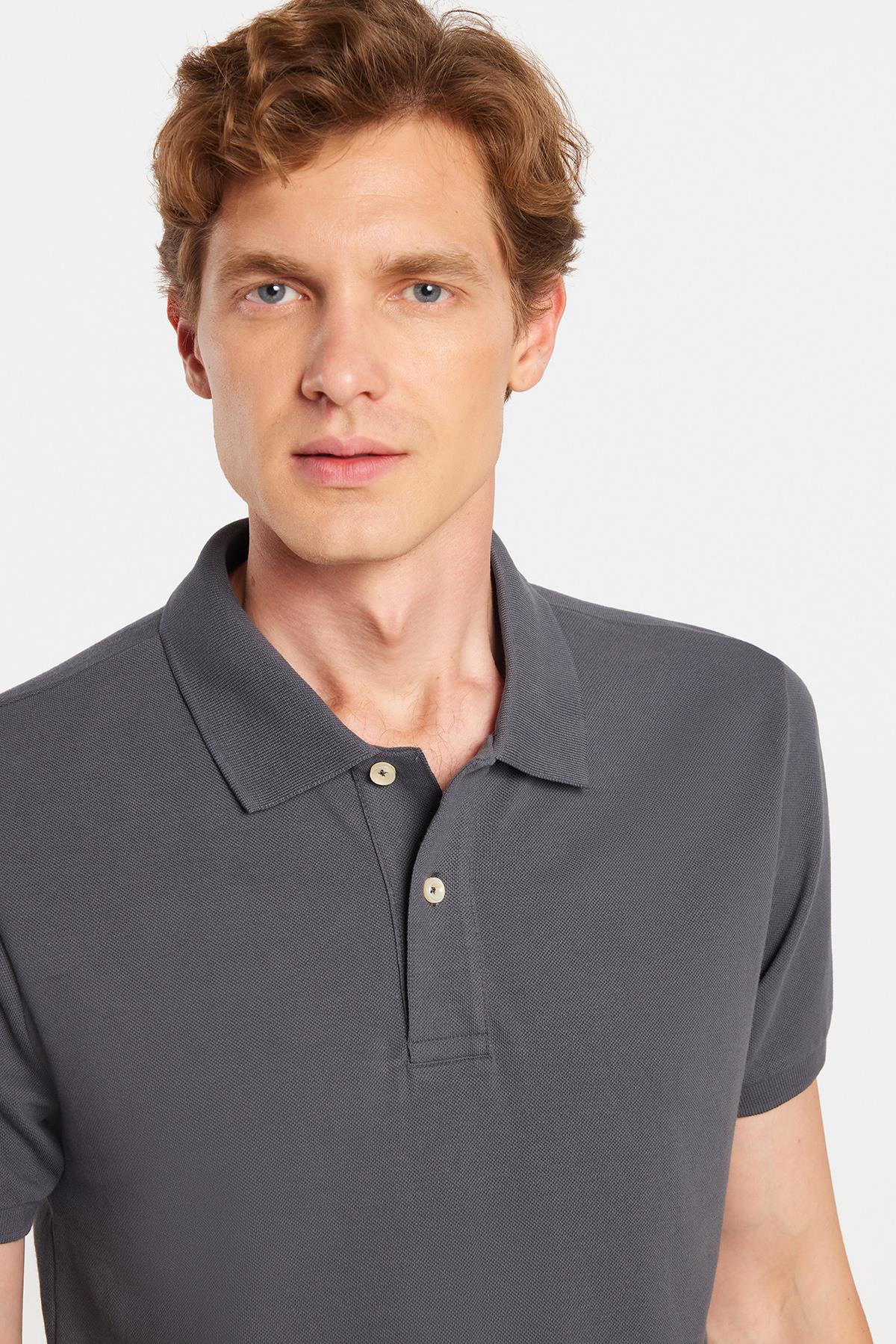 Erkek Slim Fit Dar Kesim %100 Pamuk Antrasit Polo Yaka Tişört