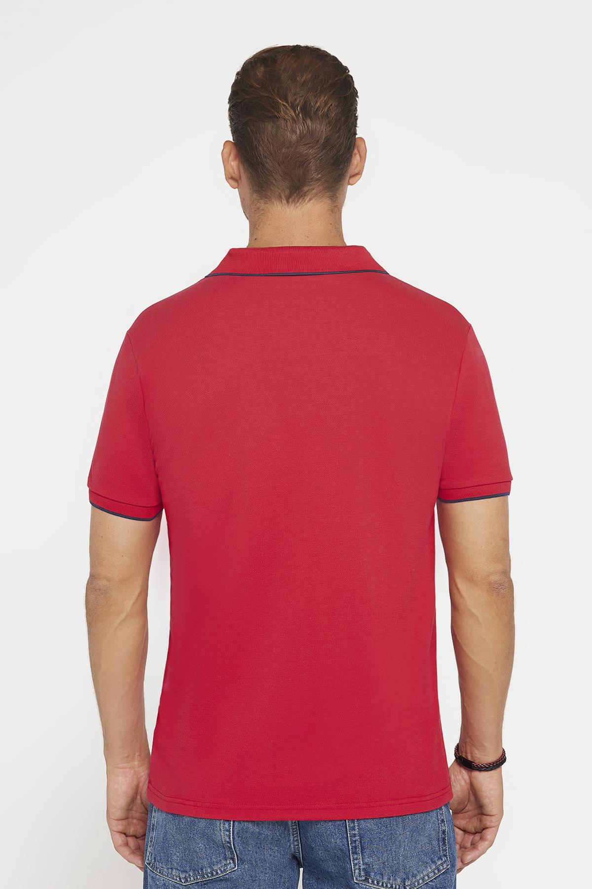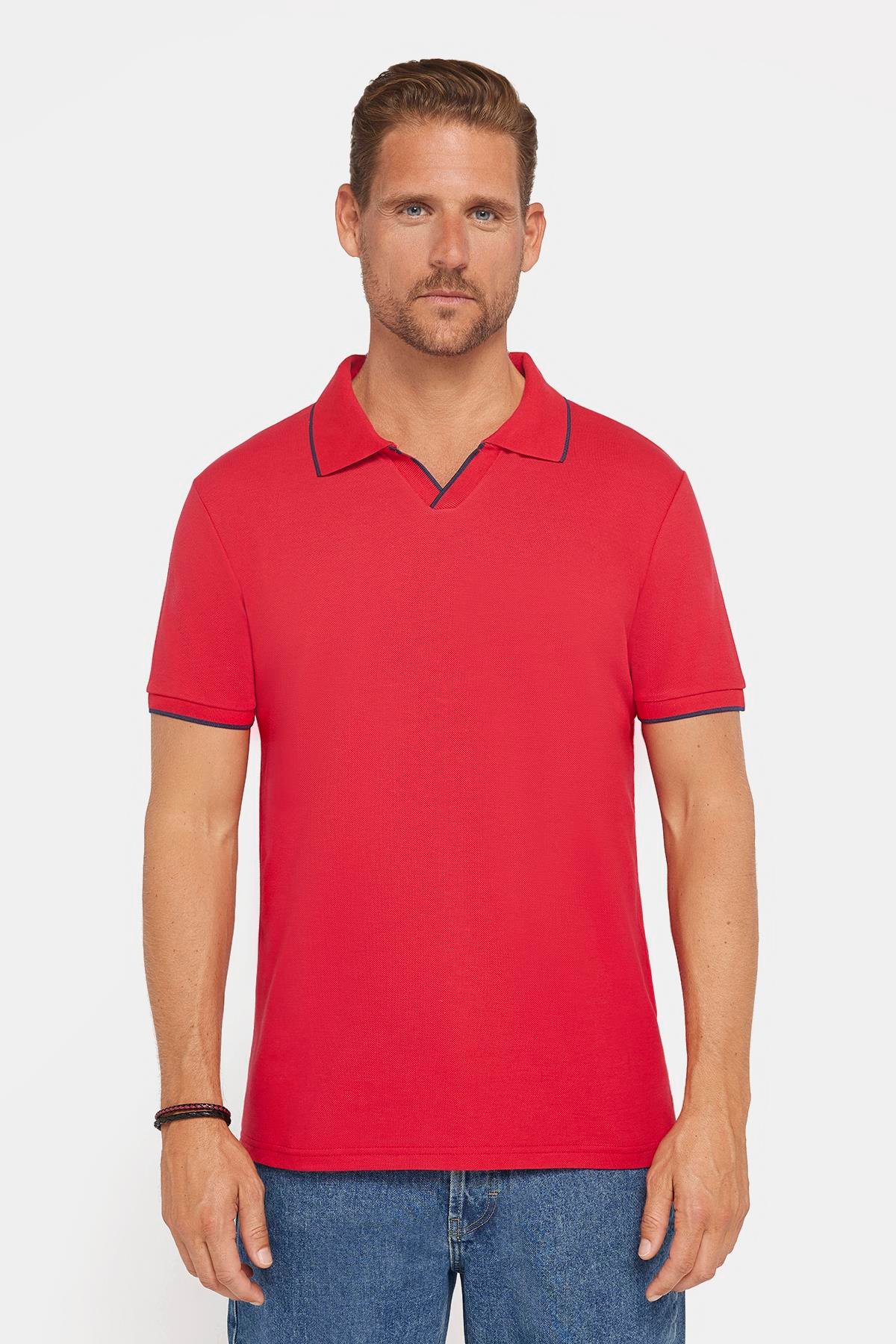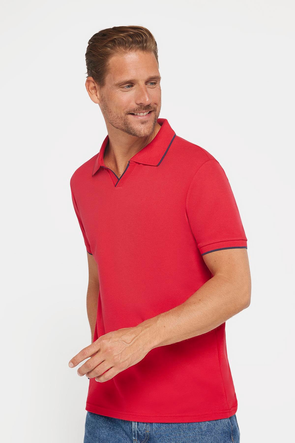 Erkek Slim Fit Dar Kesim %100 Pamuk Düz Pike Düğmesiz Kırmızı Polo Yaka Tişört (TS230021-RD2)
