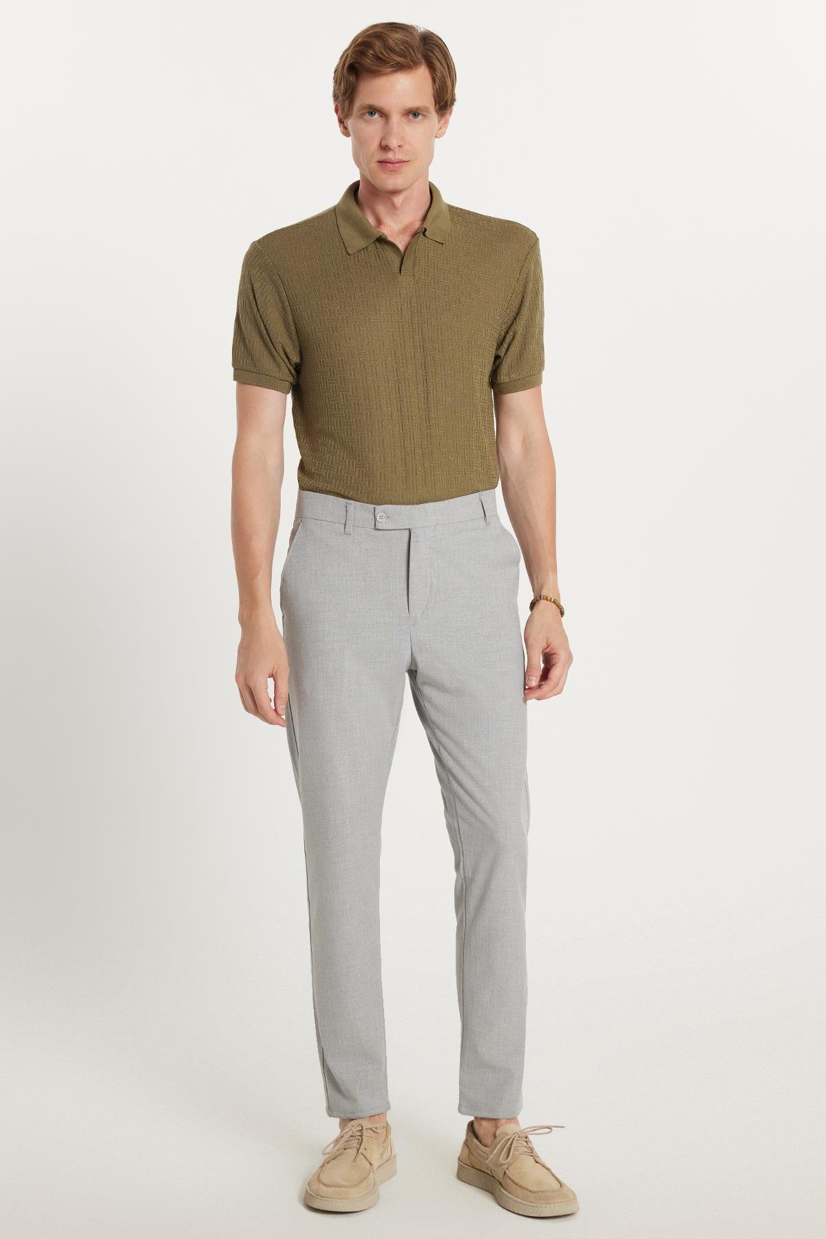 Erkek Slim Fit Dar Kesim Chino Yandan Cepli Pamuklu Gri Pantolon (PN250028-11)