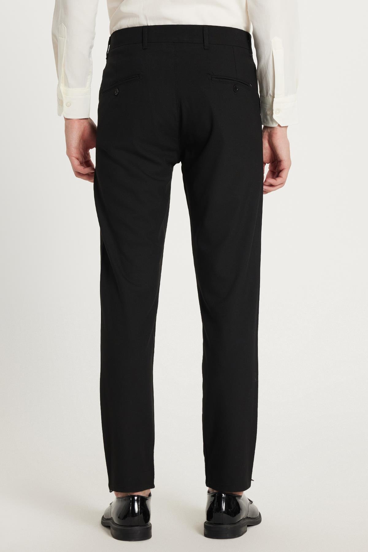 Erkek Slim Fit Dar Kesim Chino Yandan Cepli Pamuklu Siyah Pantolon