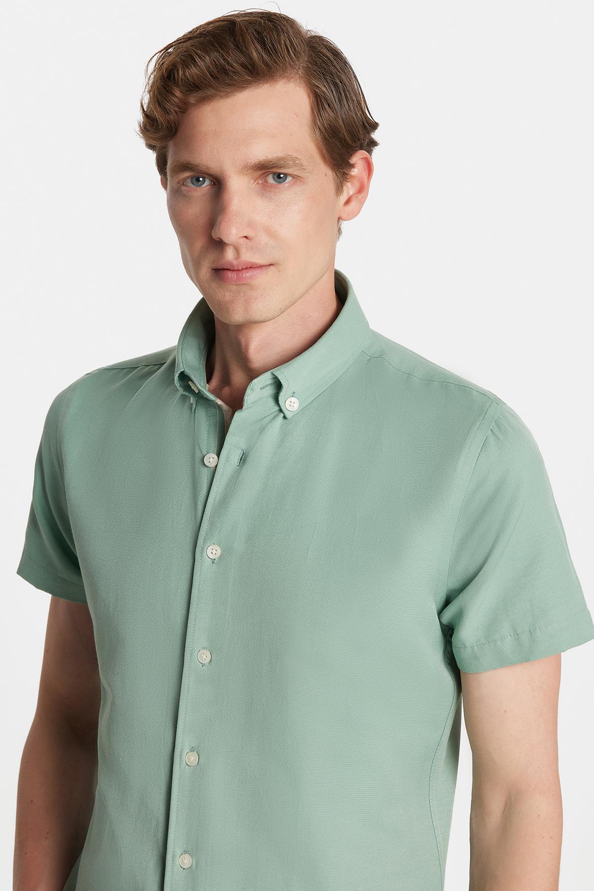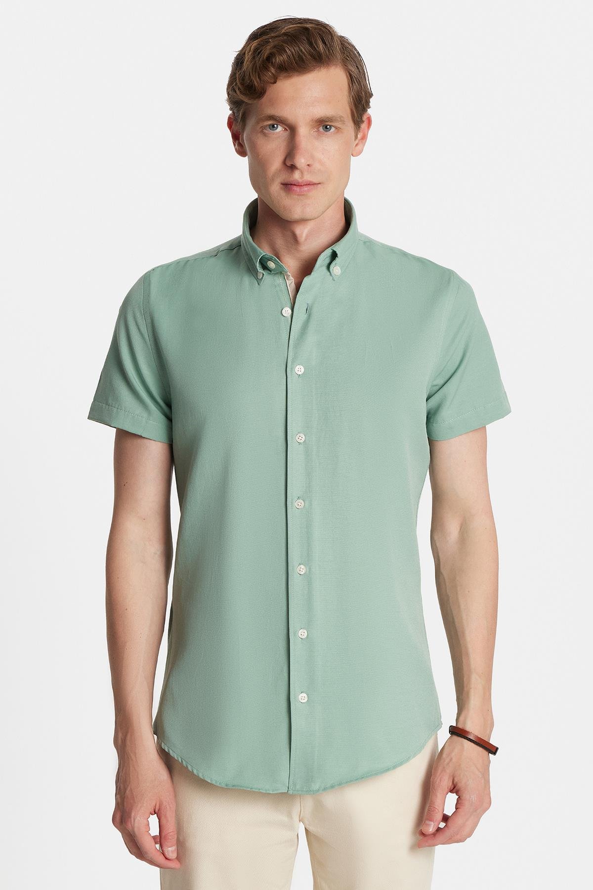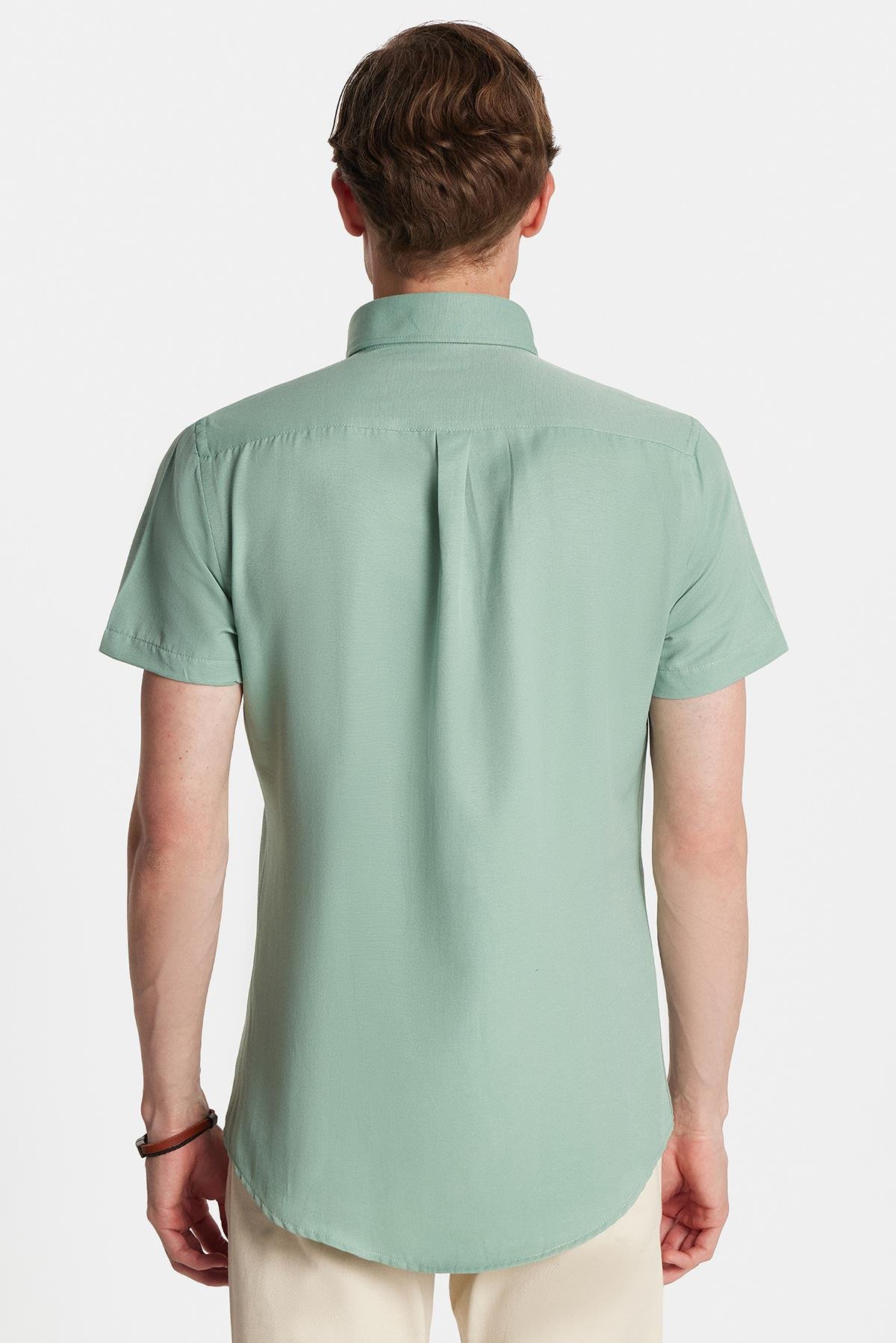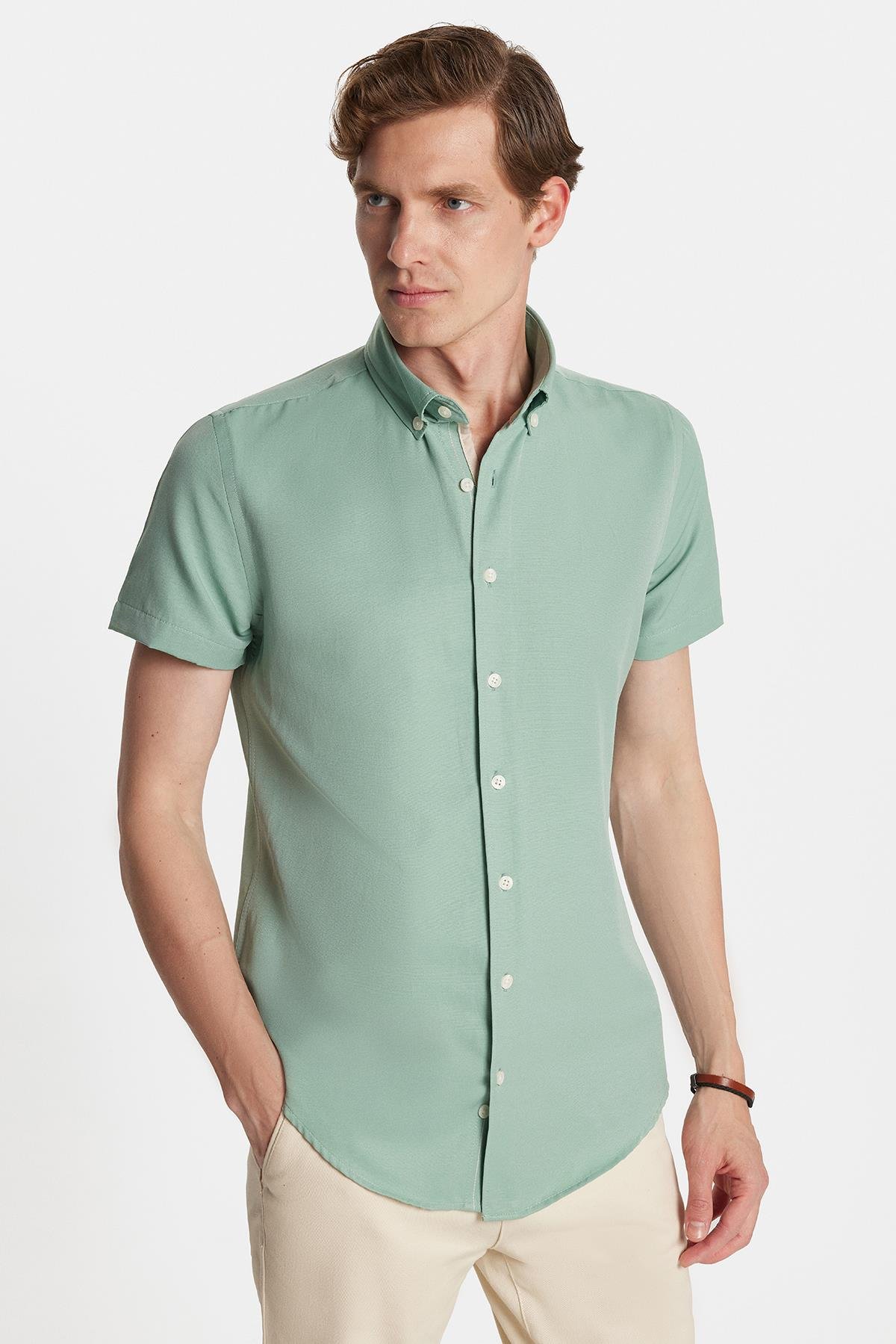 Erkek Slim Fit Dar Kesim Kısa Kollu Spor Yaka Oxford Doku Pamuklu Yeşil Gömlek (DR250011-773)