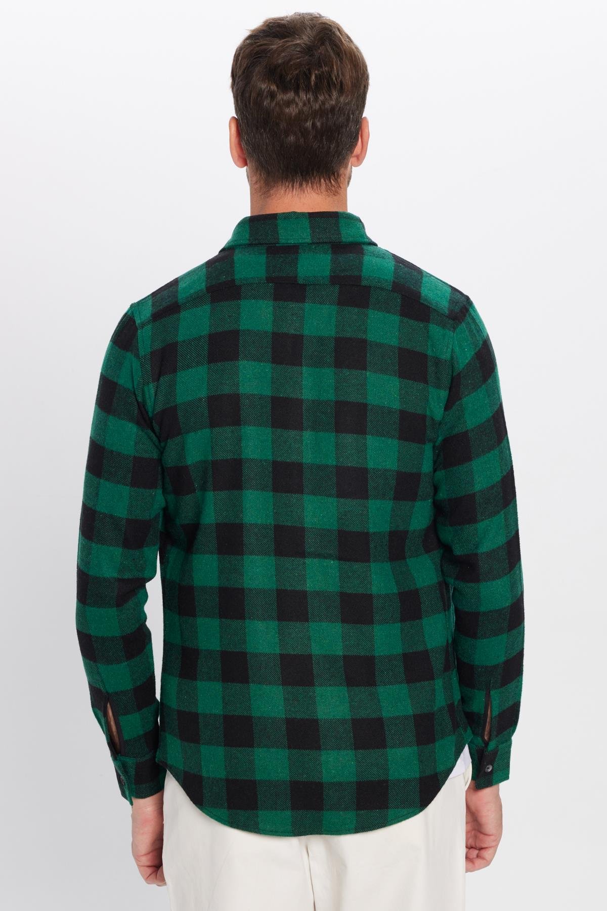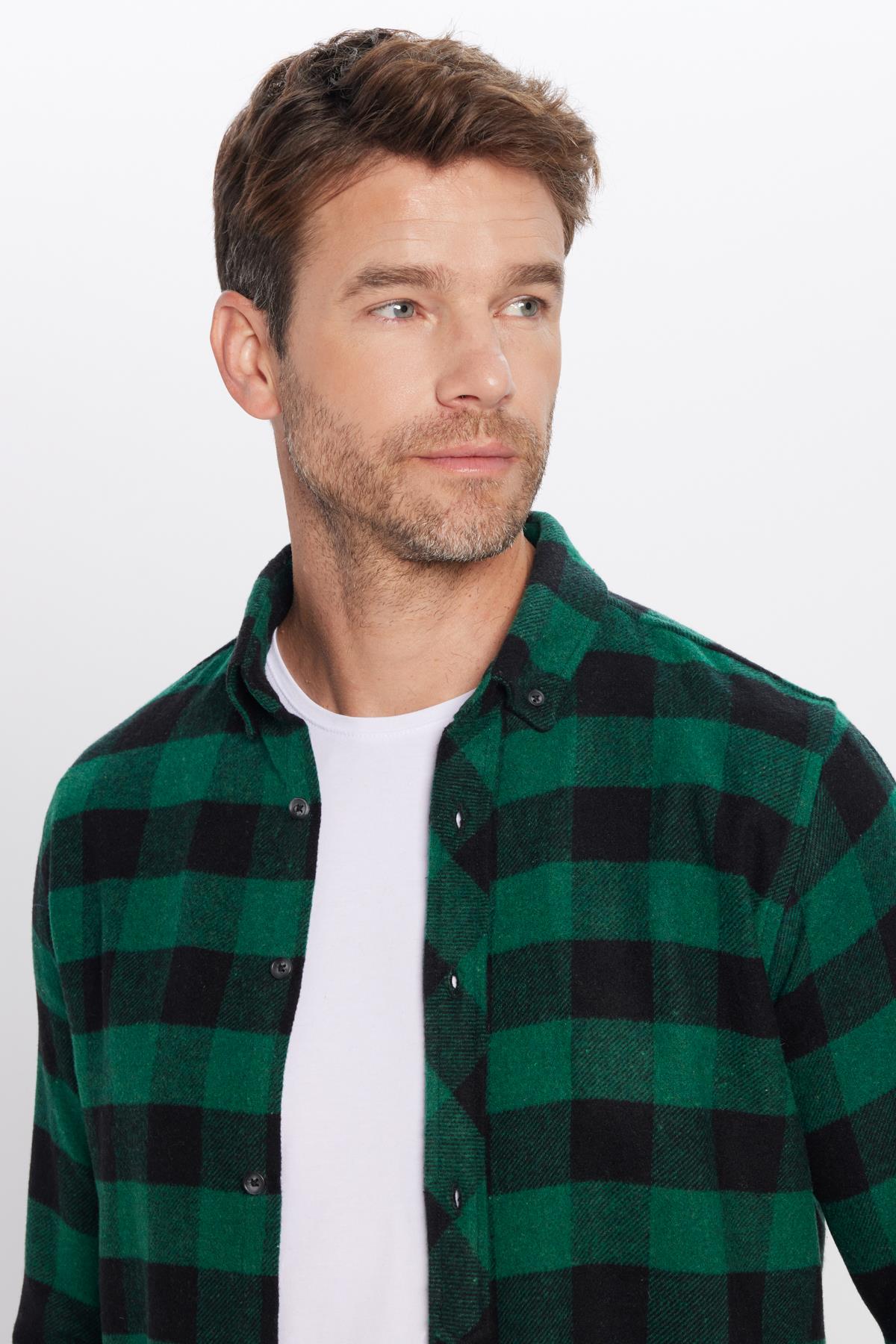 Erkek Slim Fit Dar Kesim Oduncu Düğmeli Yaka Kareli Kışlık Gömlek (DR250005-7323)