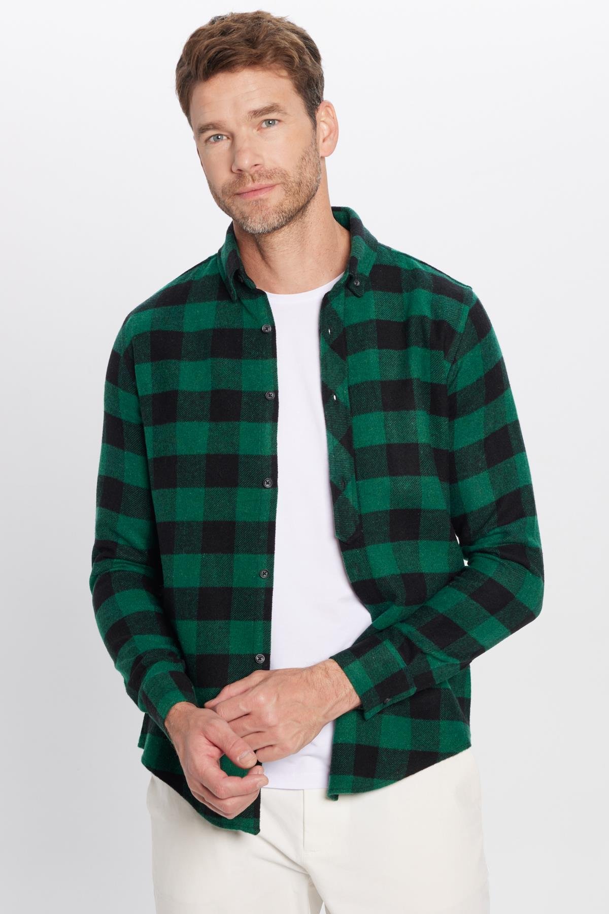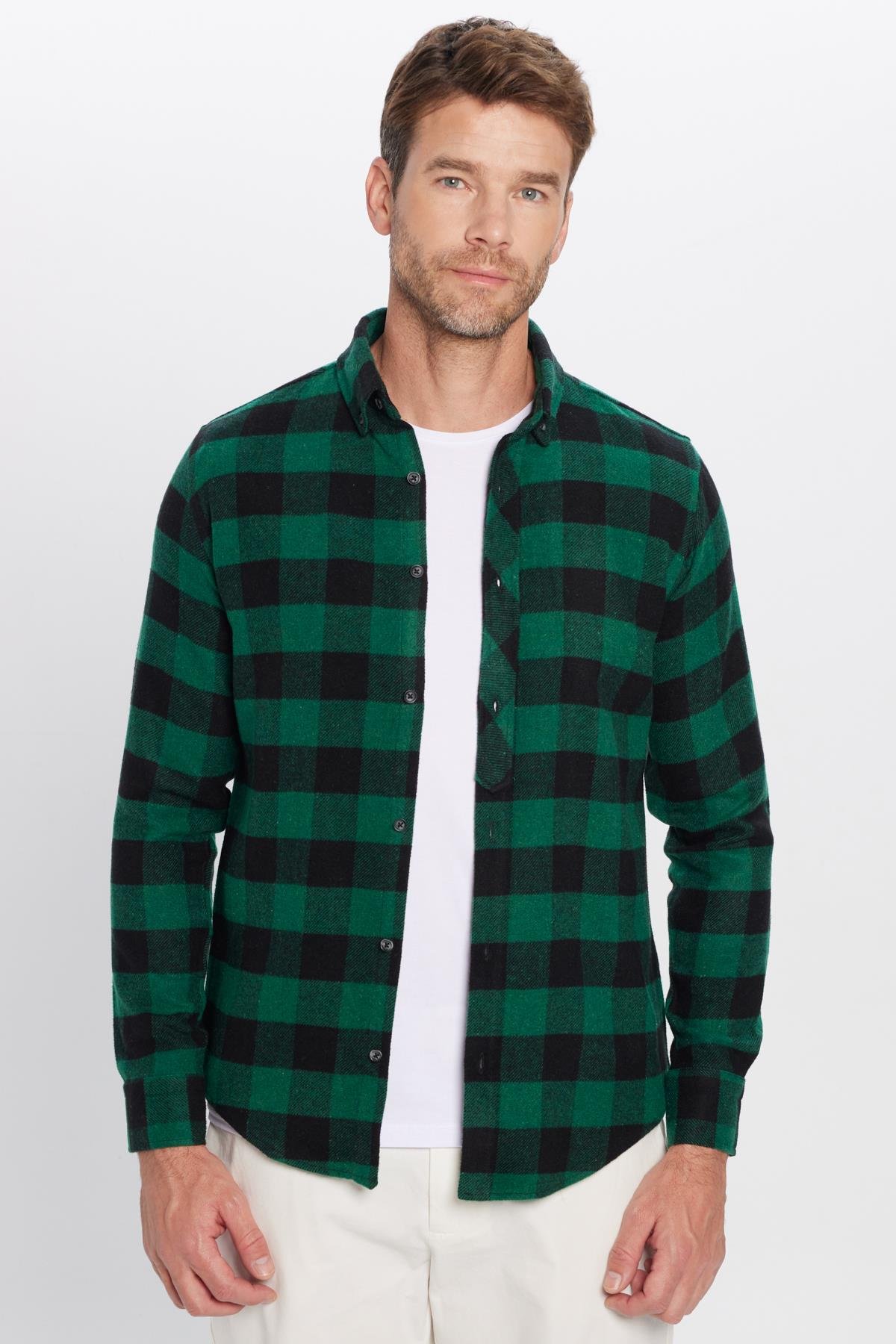 Erkek Slim Fit Dar Kesim Oduncu Düğmeli Yaka Kareli Kışlık Gömlek
