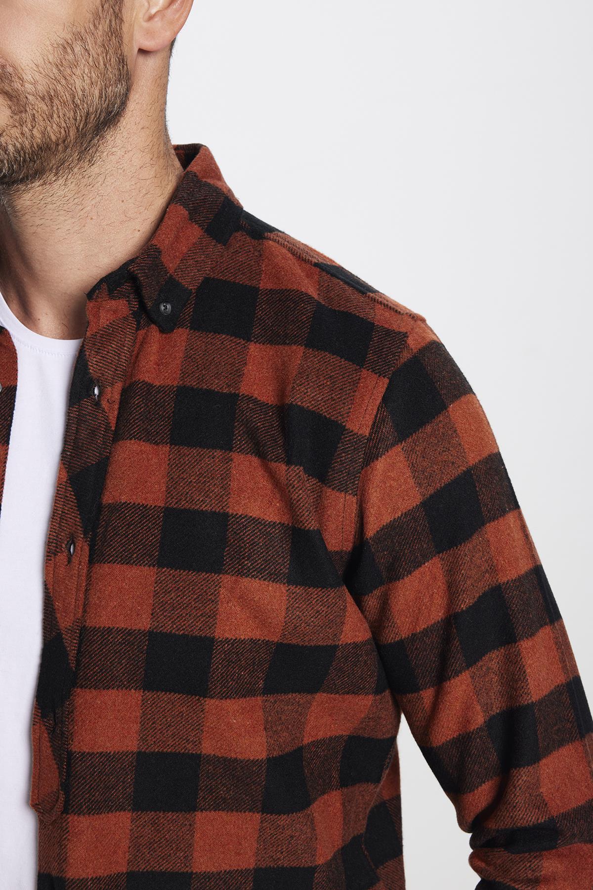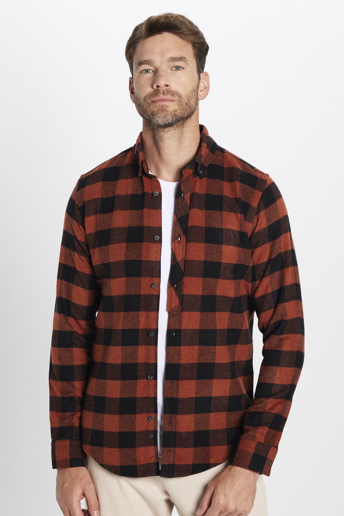 Erkek Slim Fit Dar Kesim Oduncu Düğmeli Yaka Kareli Kışlık Gömlek (DR250005-7325)