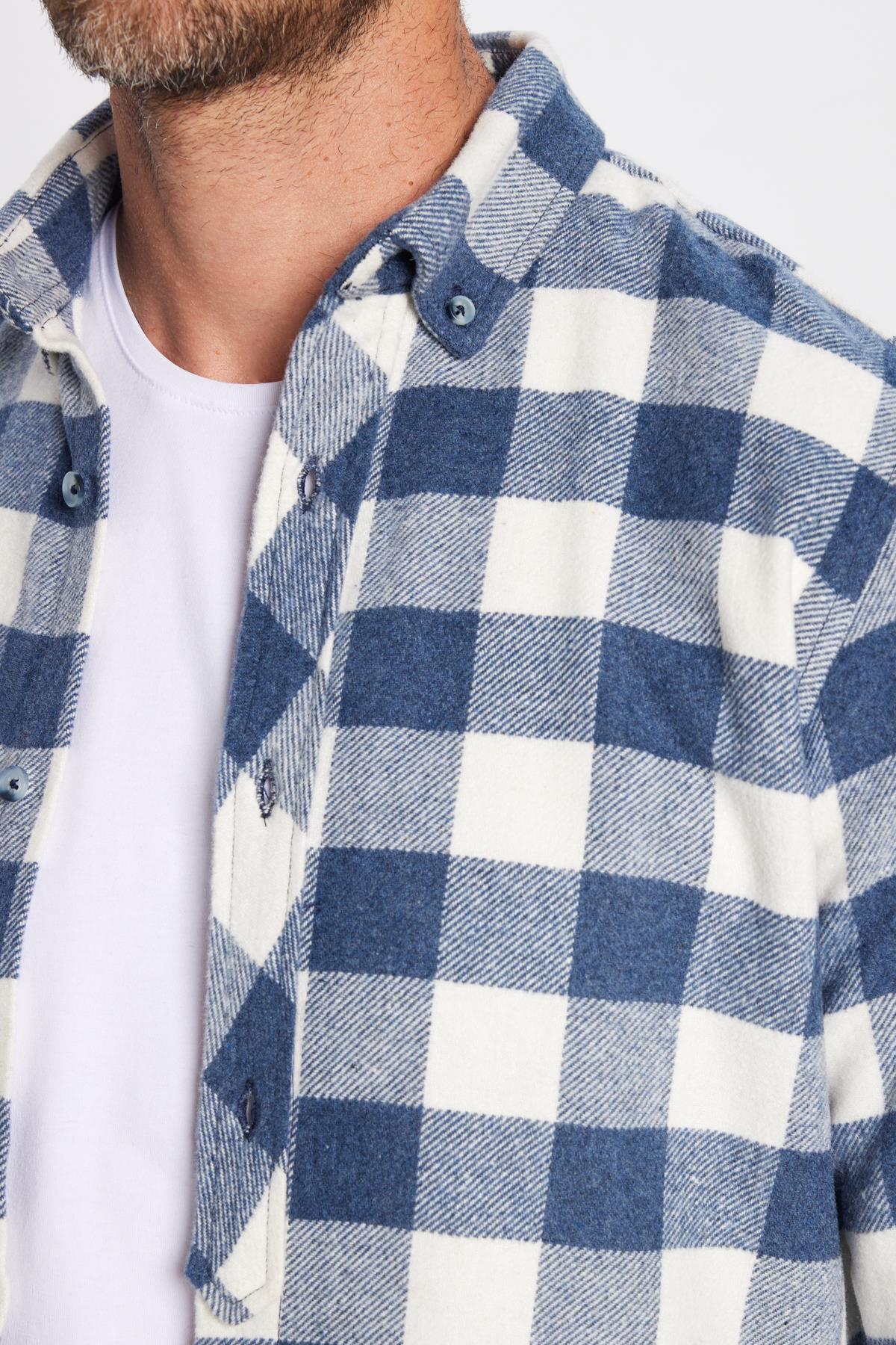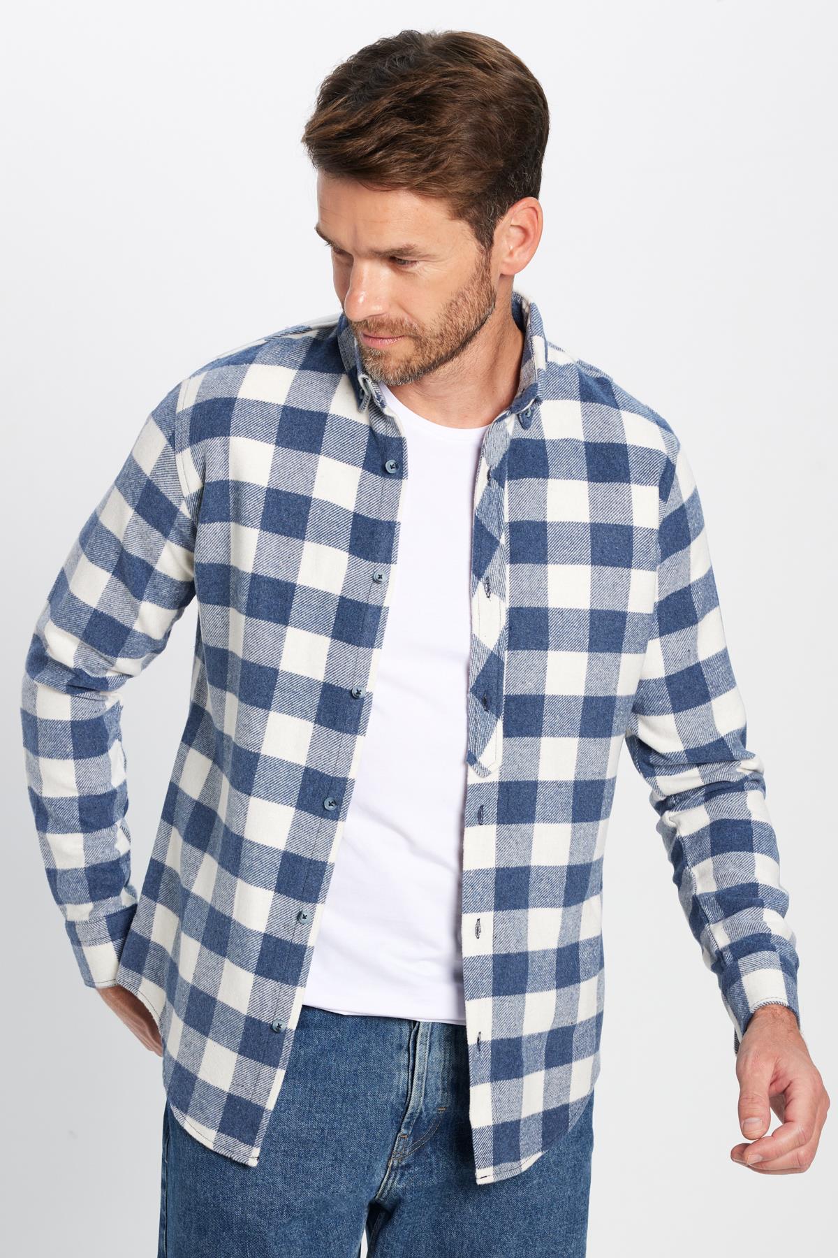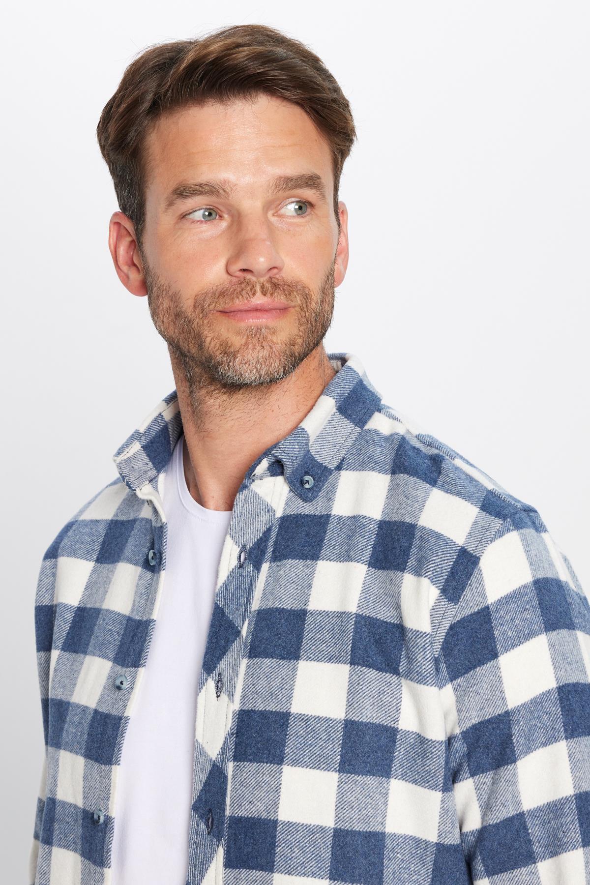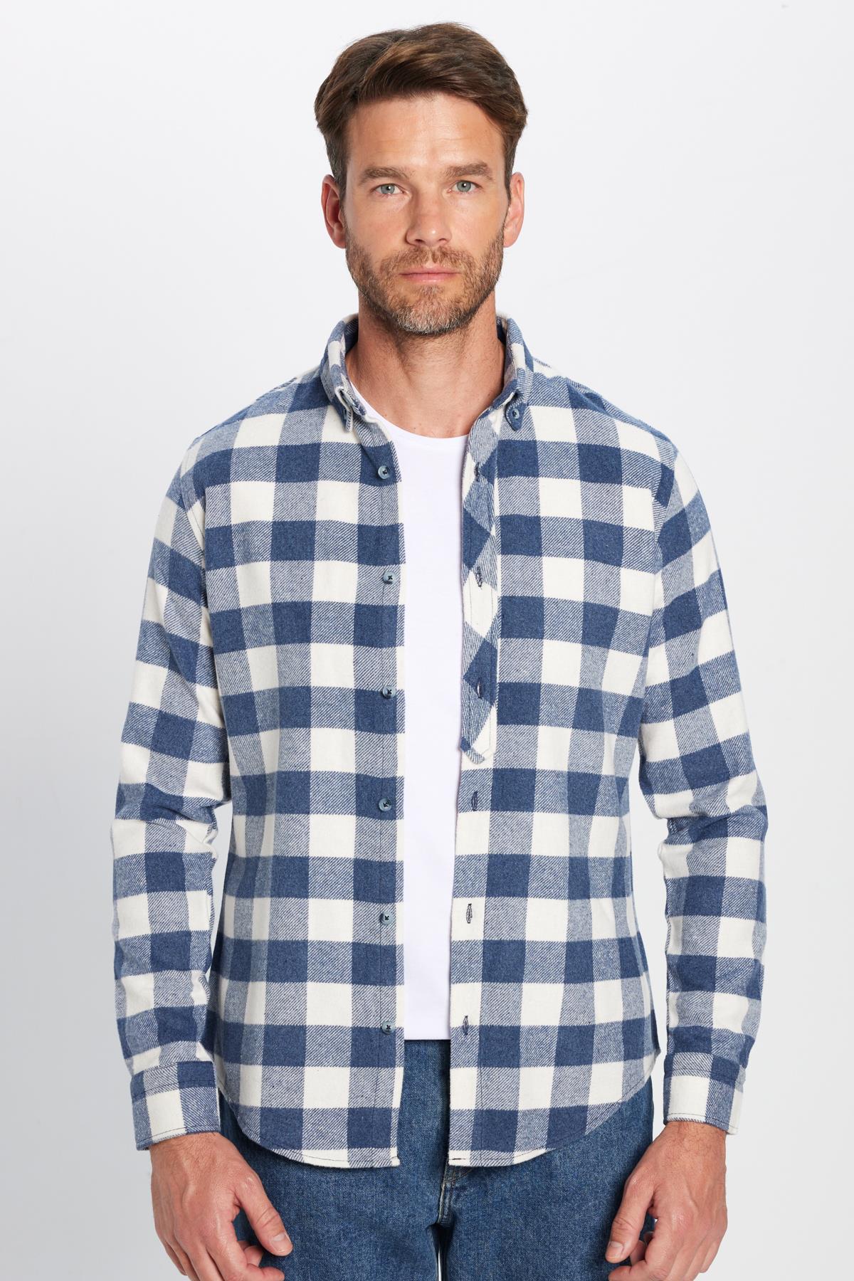 Erkek Slim Fit Dar Kesim Oduncu Düğmeli Yaka Kareli Kışlık Gömlek (DR250005-7329)