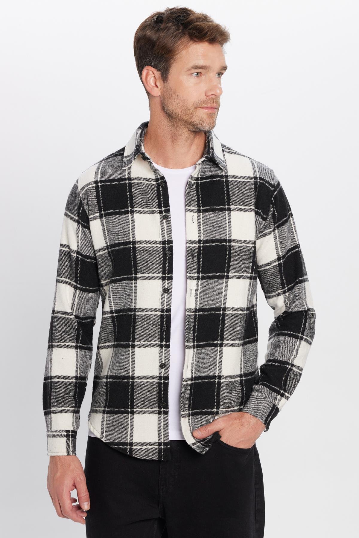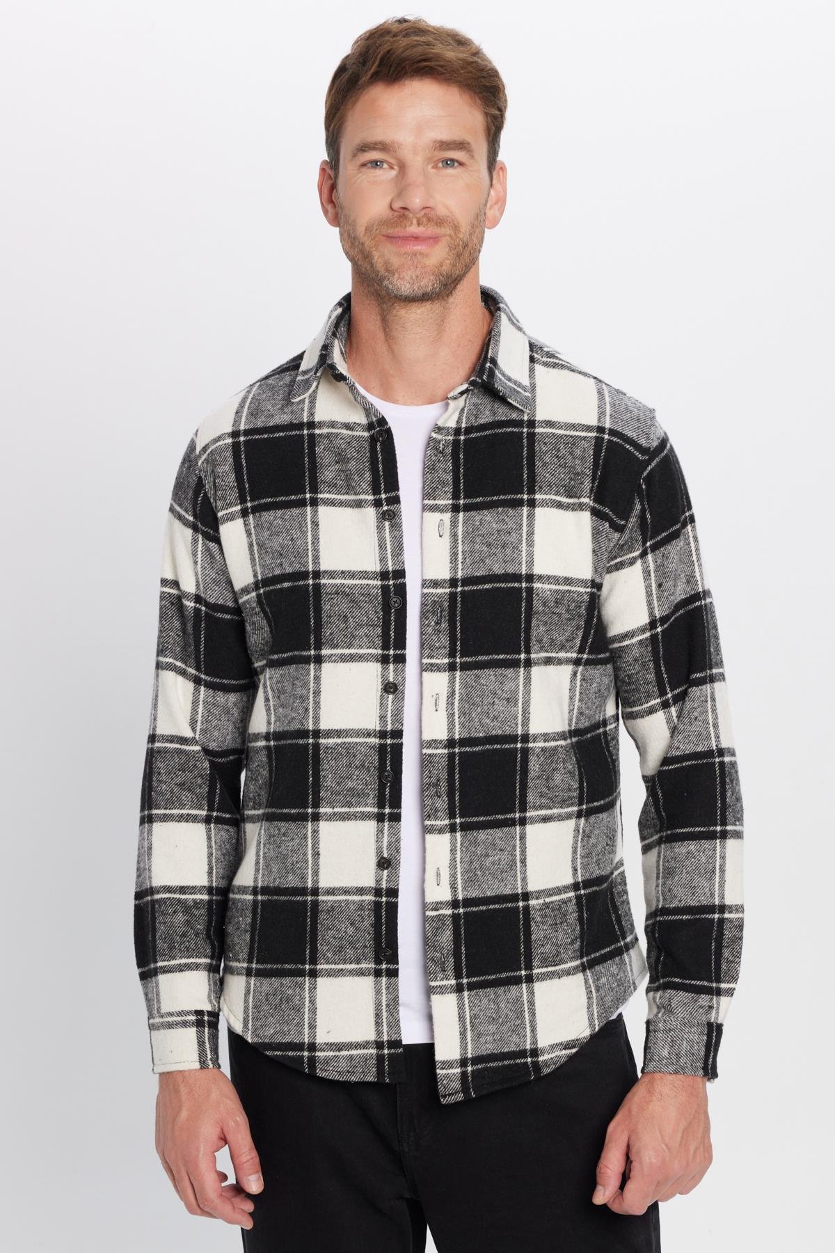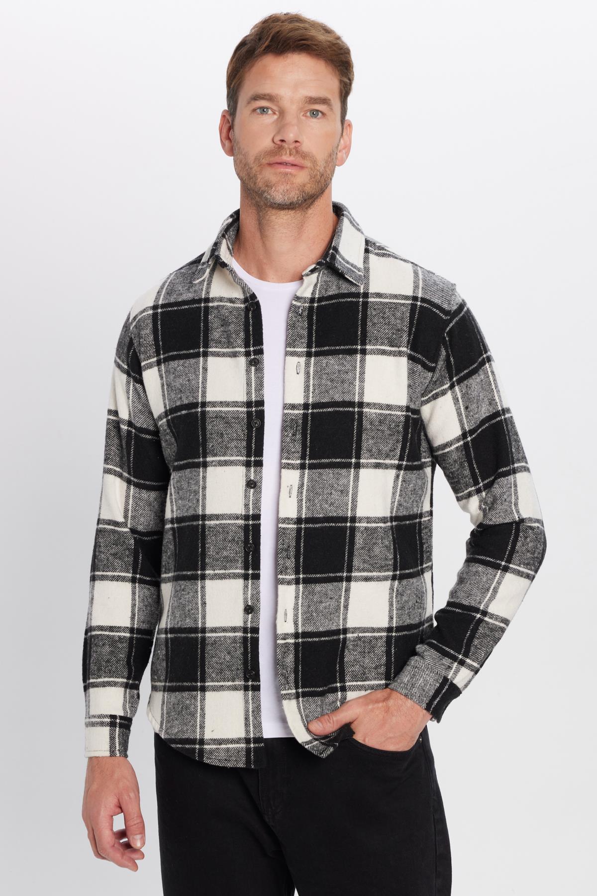 Erkek Slim Fit Dar Kesim Oduncu Kareli Kışlık Gömlek (DR250002-3041)