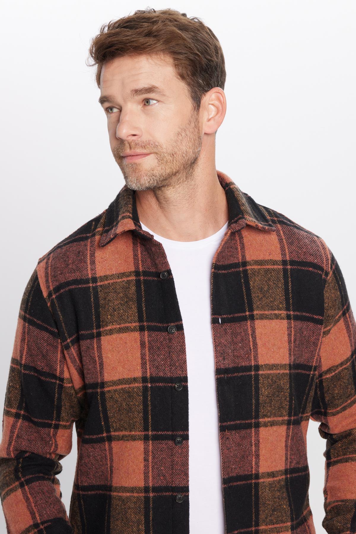 Erkek Slim Fit Dar Kesim Oduncu Kareli Kışlık Gömlek (DR250002-3042)