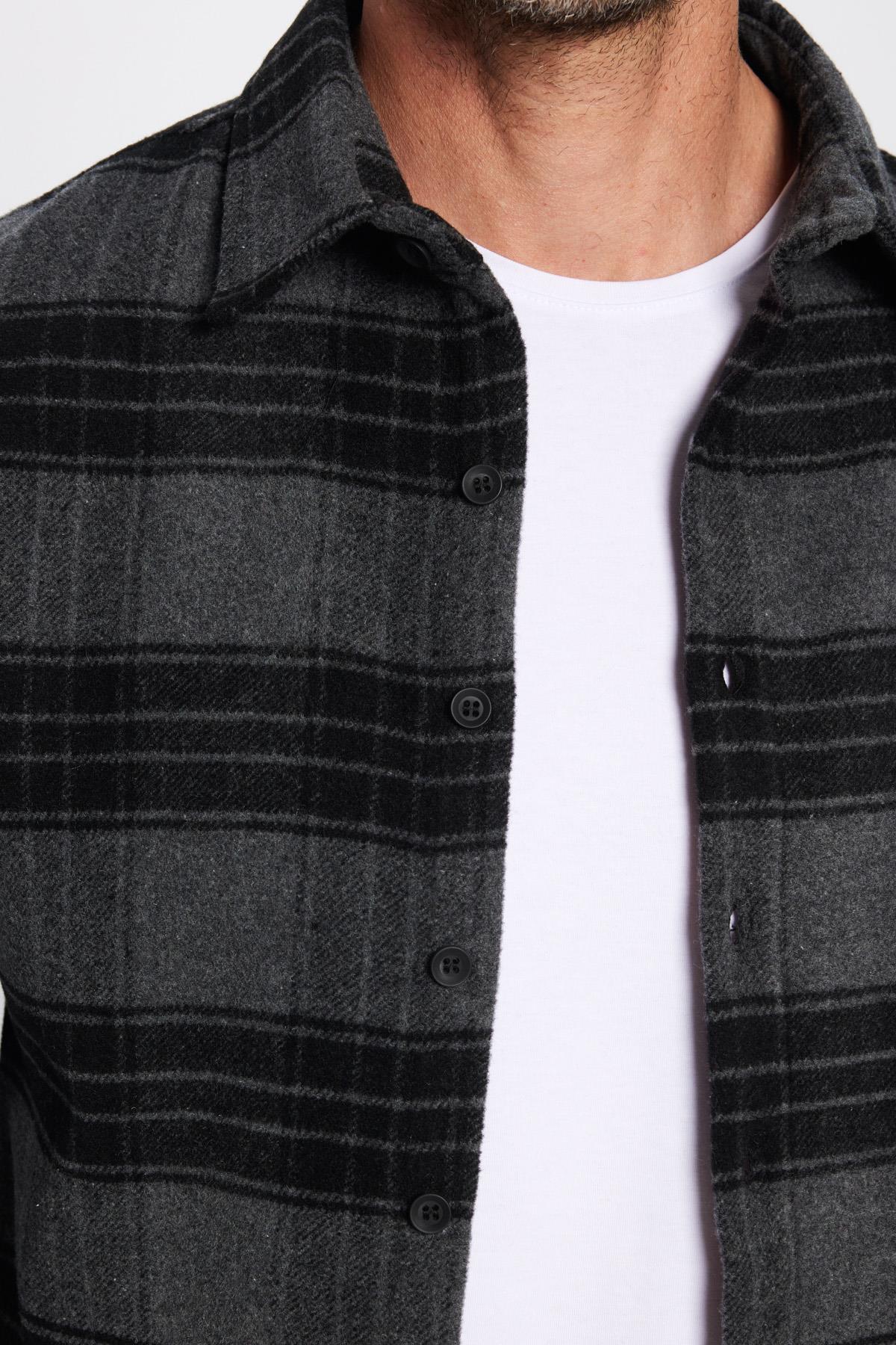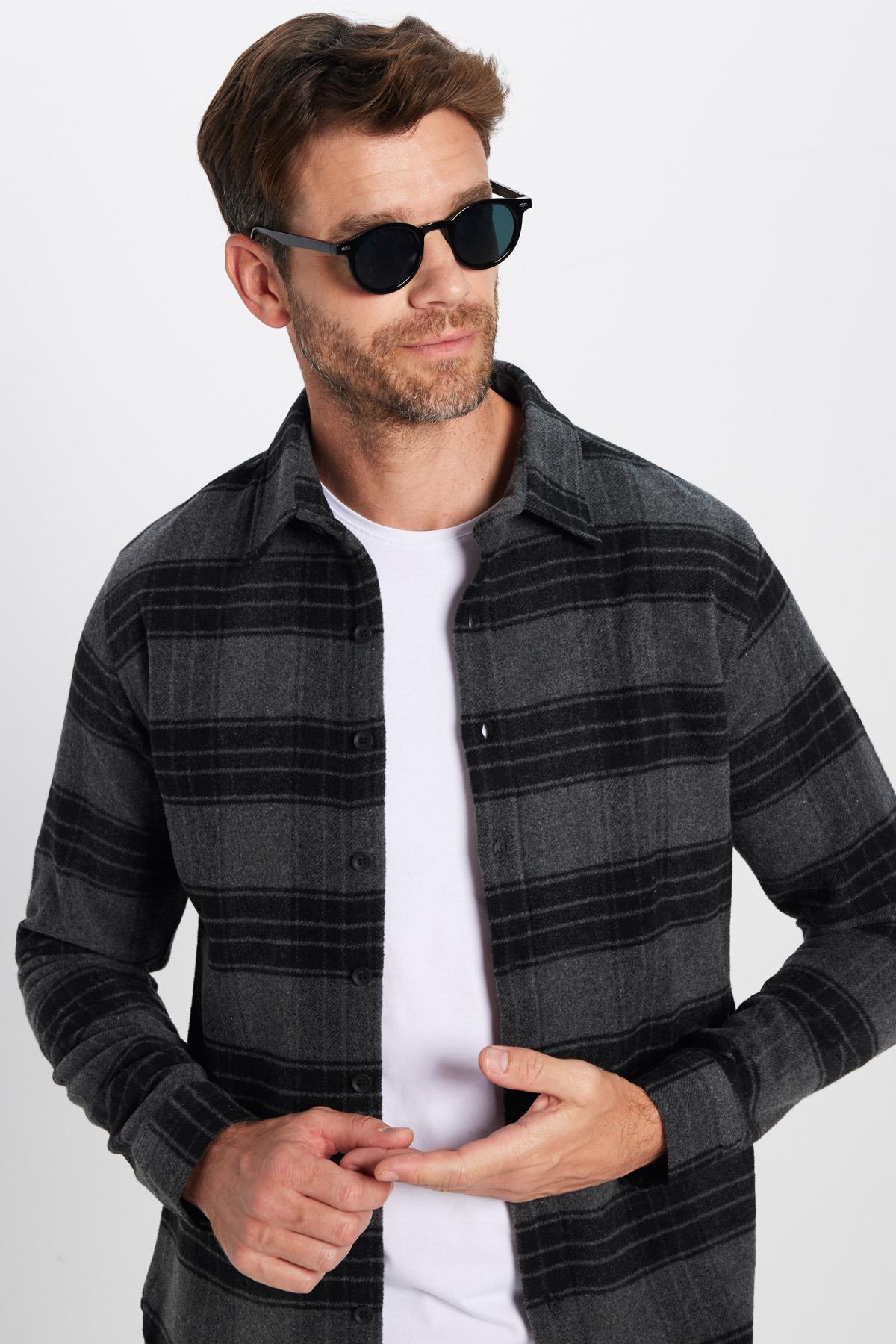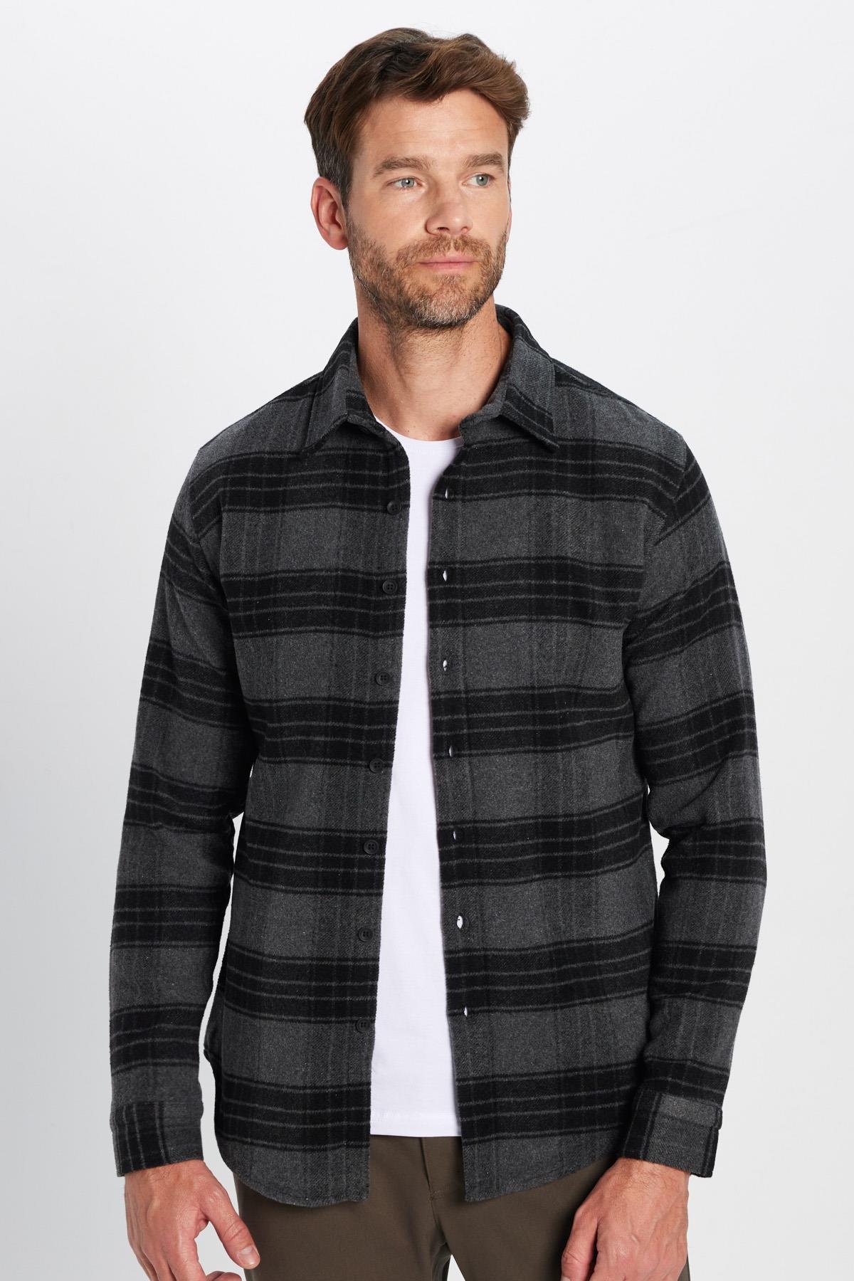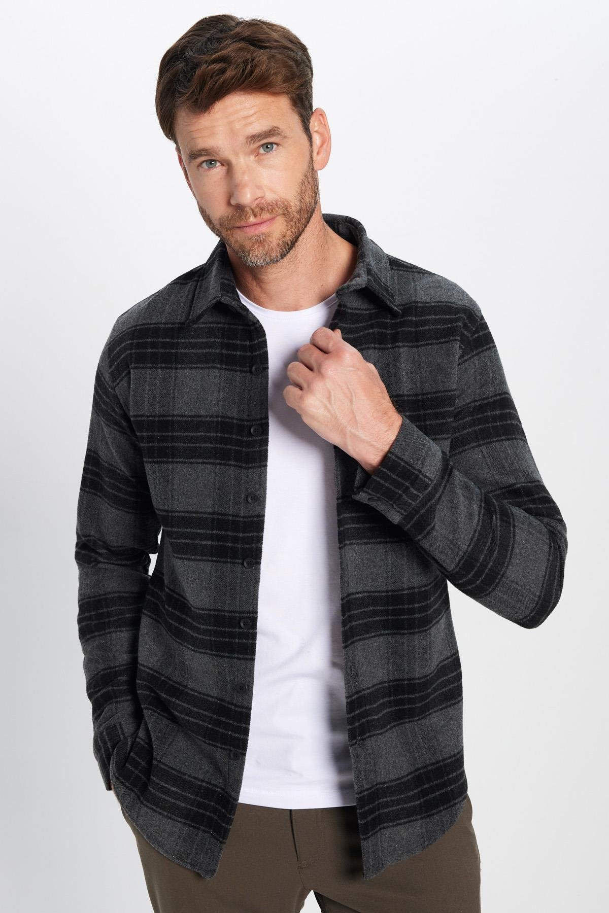 Erkek Slim Fit Dar Kesim Oduncu Kareli Kışlık Gömlek (DR250002-6123)