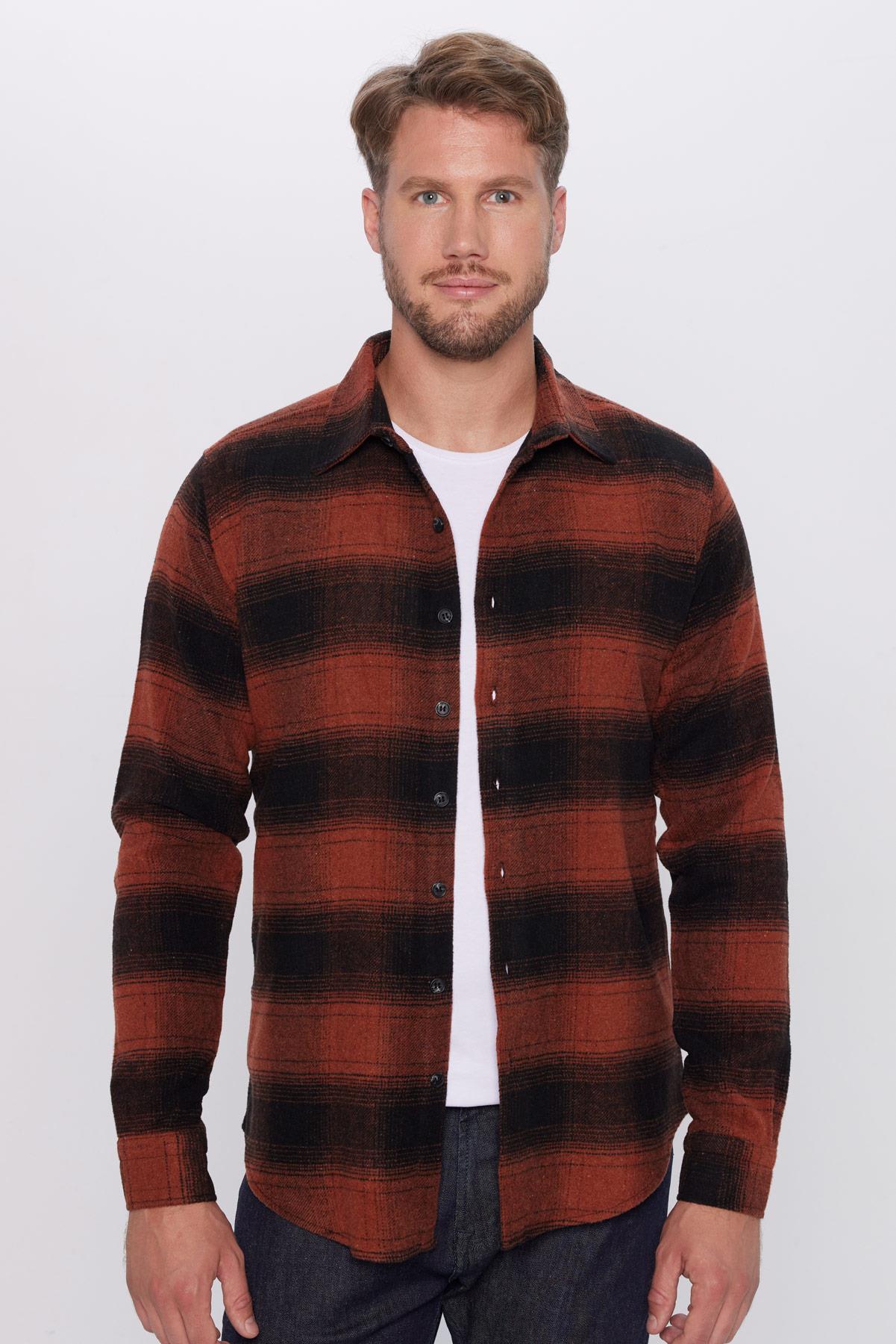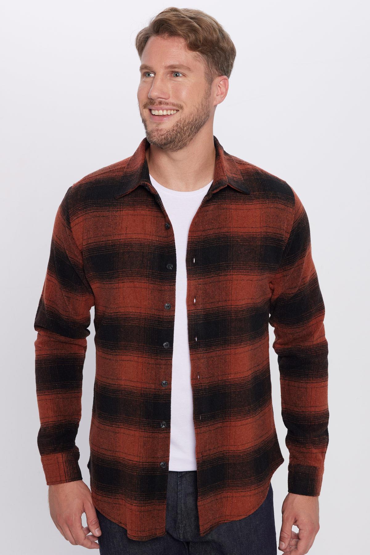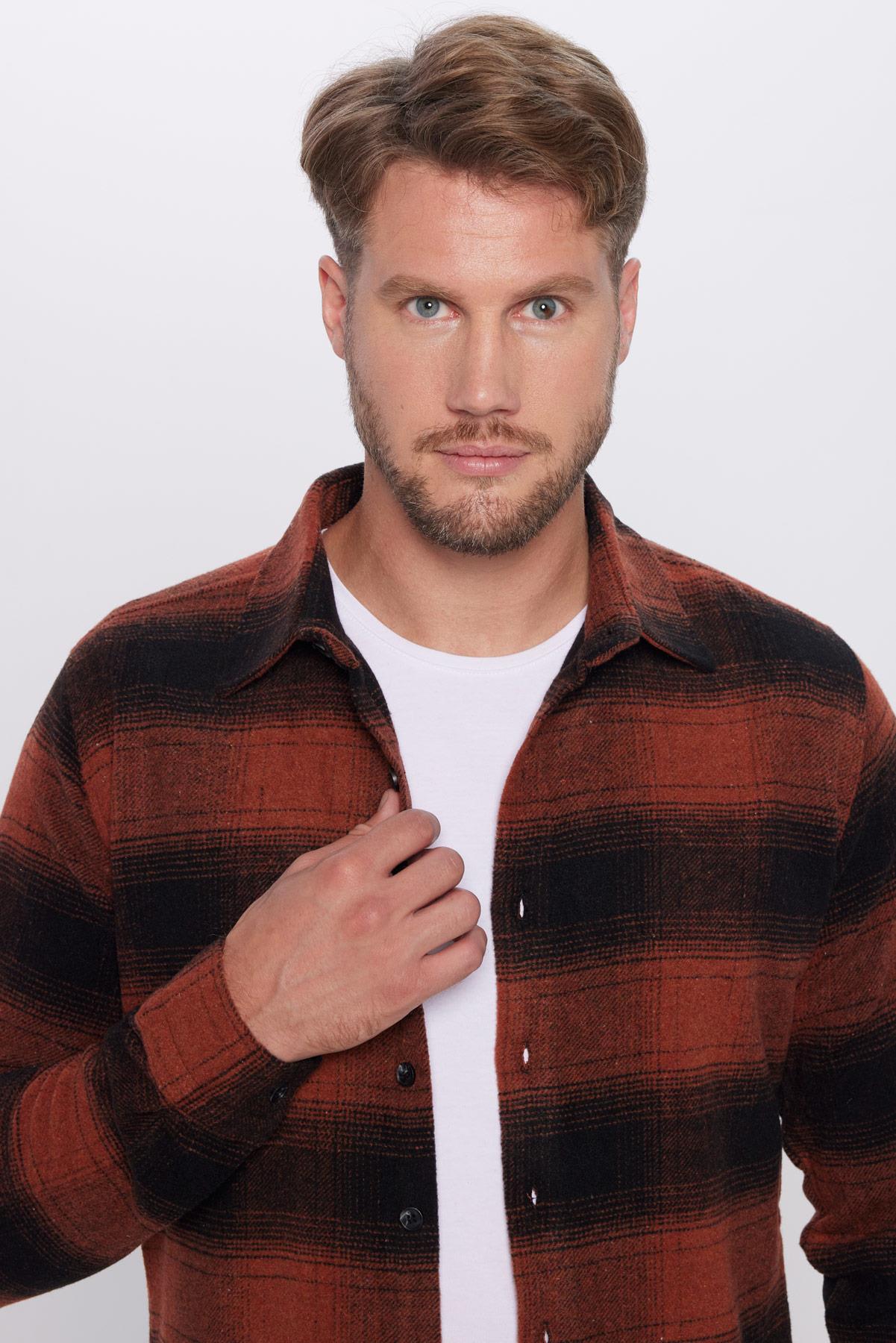 Erkek Slim Fit Dar Kesim Oduncu Kareli Kışlık Gömlek (DR250002-1251)