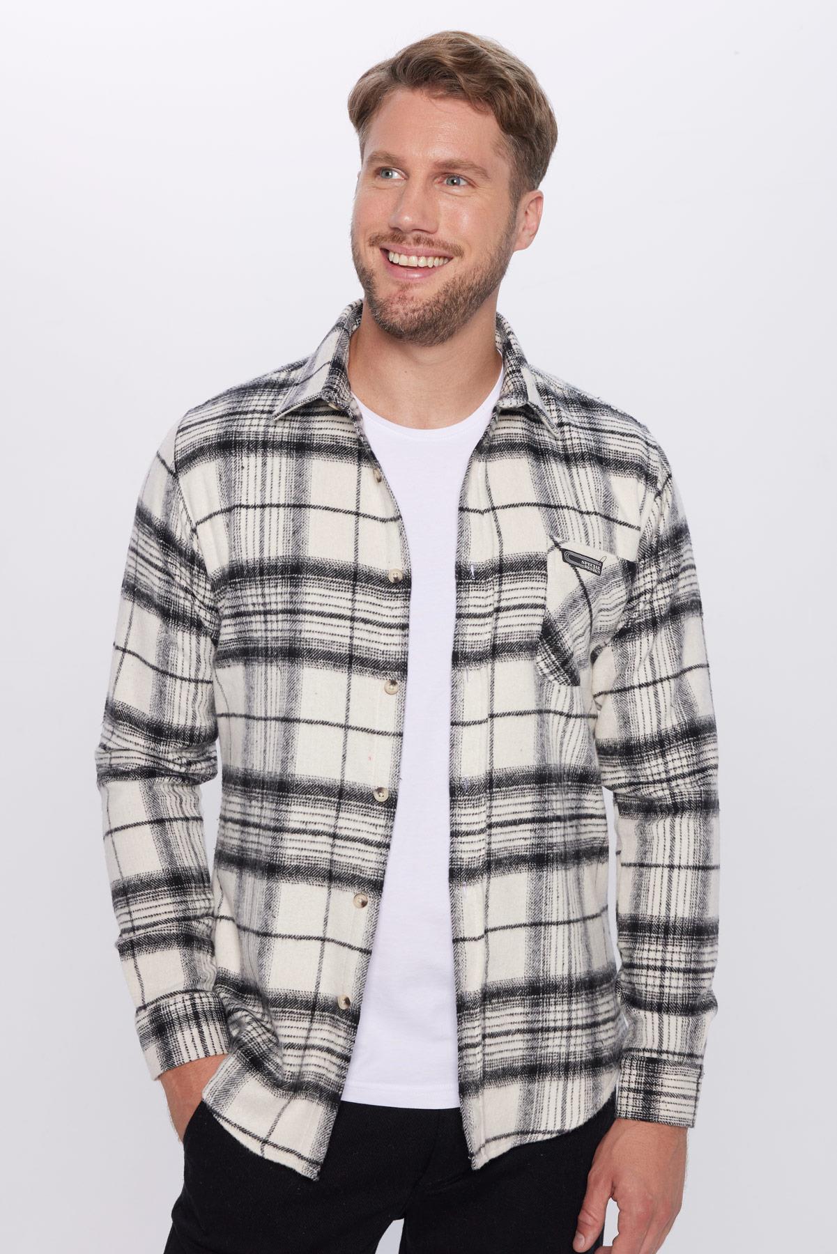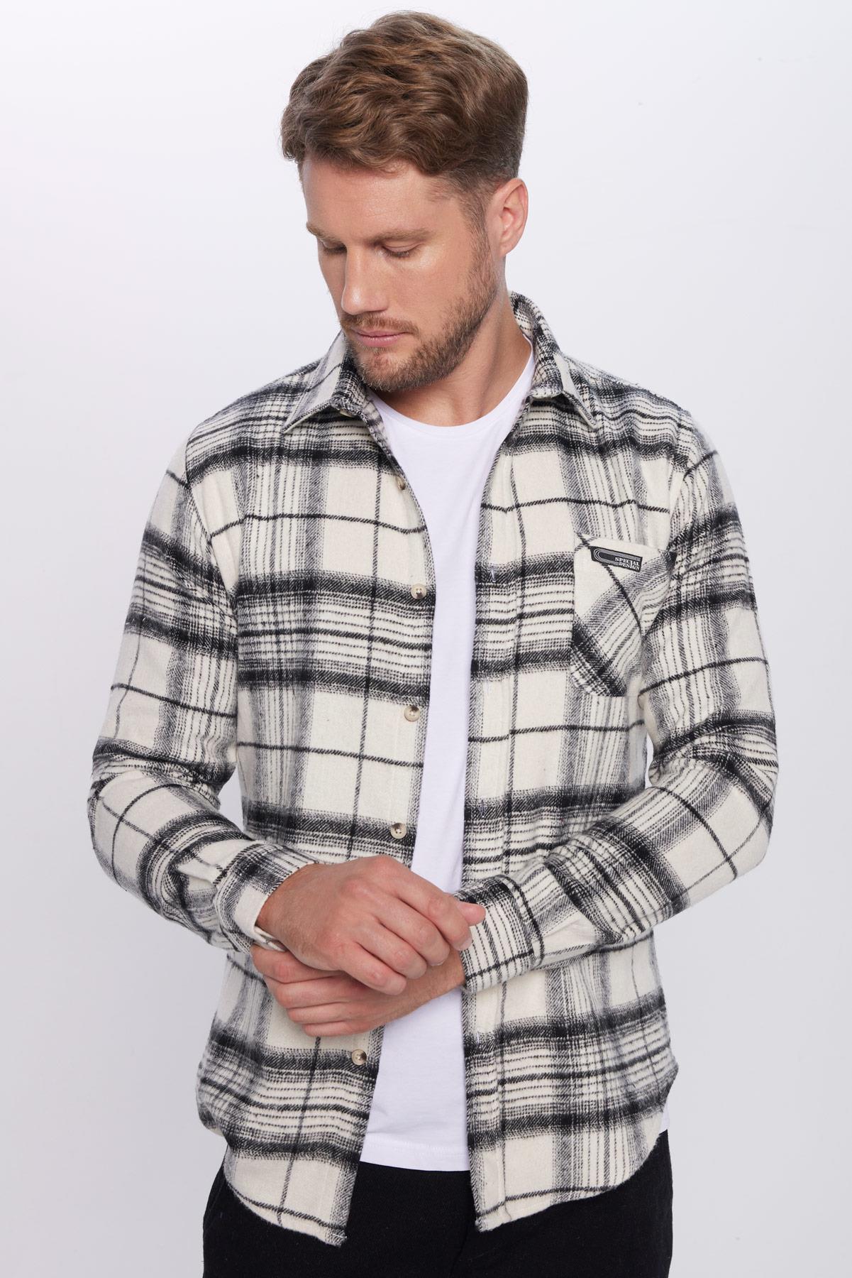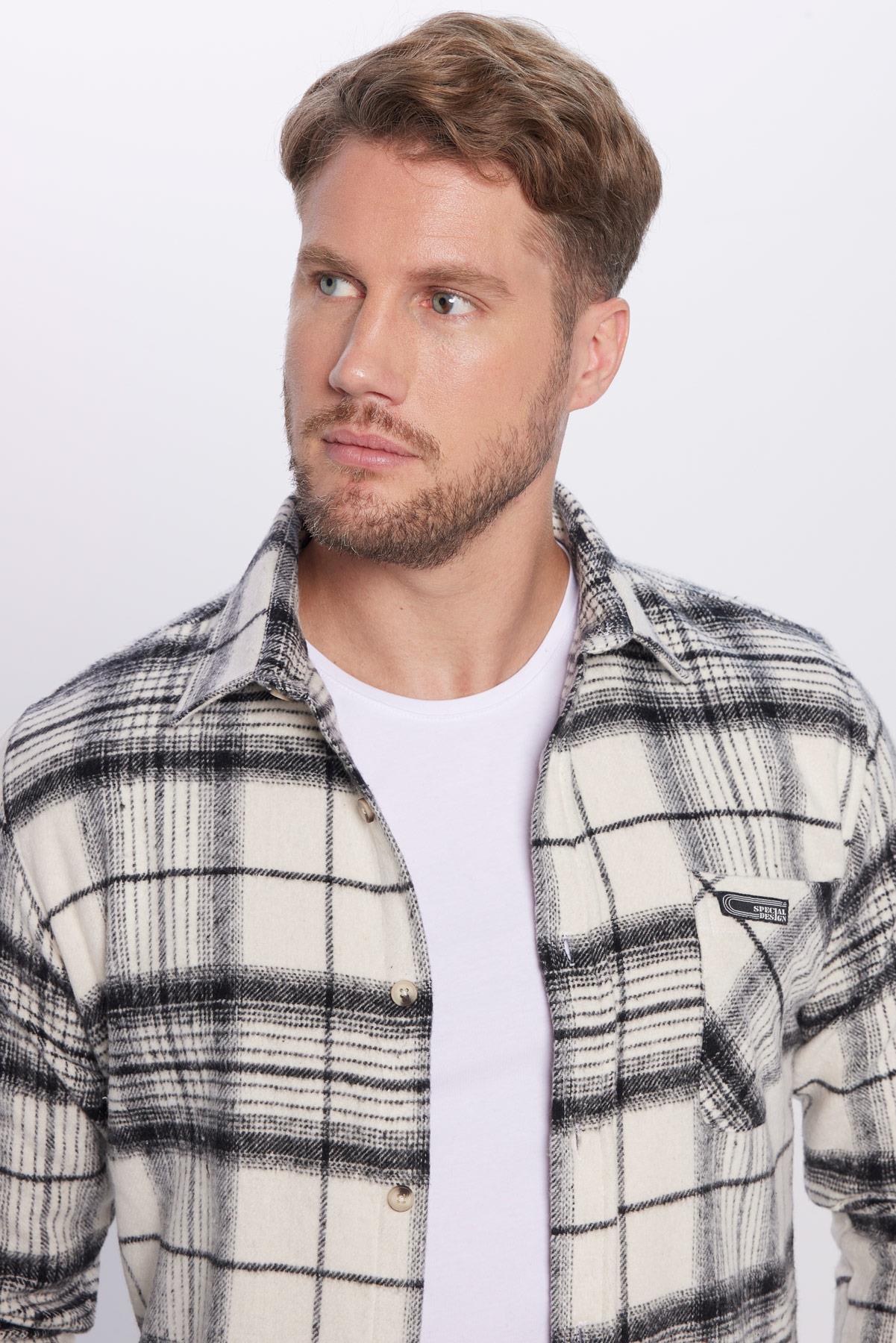 Erkek Slim Fit Dar Kesim Oduncu Kareli Tek Cepli Kışlık Gömlek (DR250001-8765)