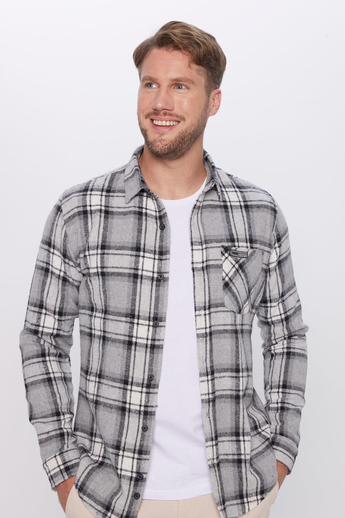 Erkek Slim Fit Dar Kesim Oduncu Tek Cep Kareli Kışlık Gömlek (DR250001-5253)