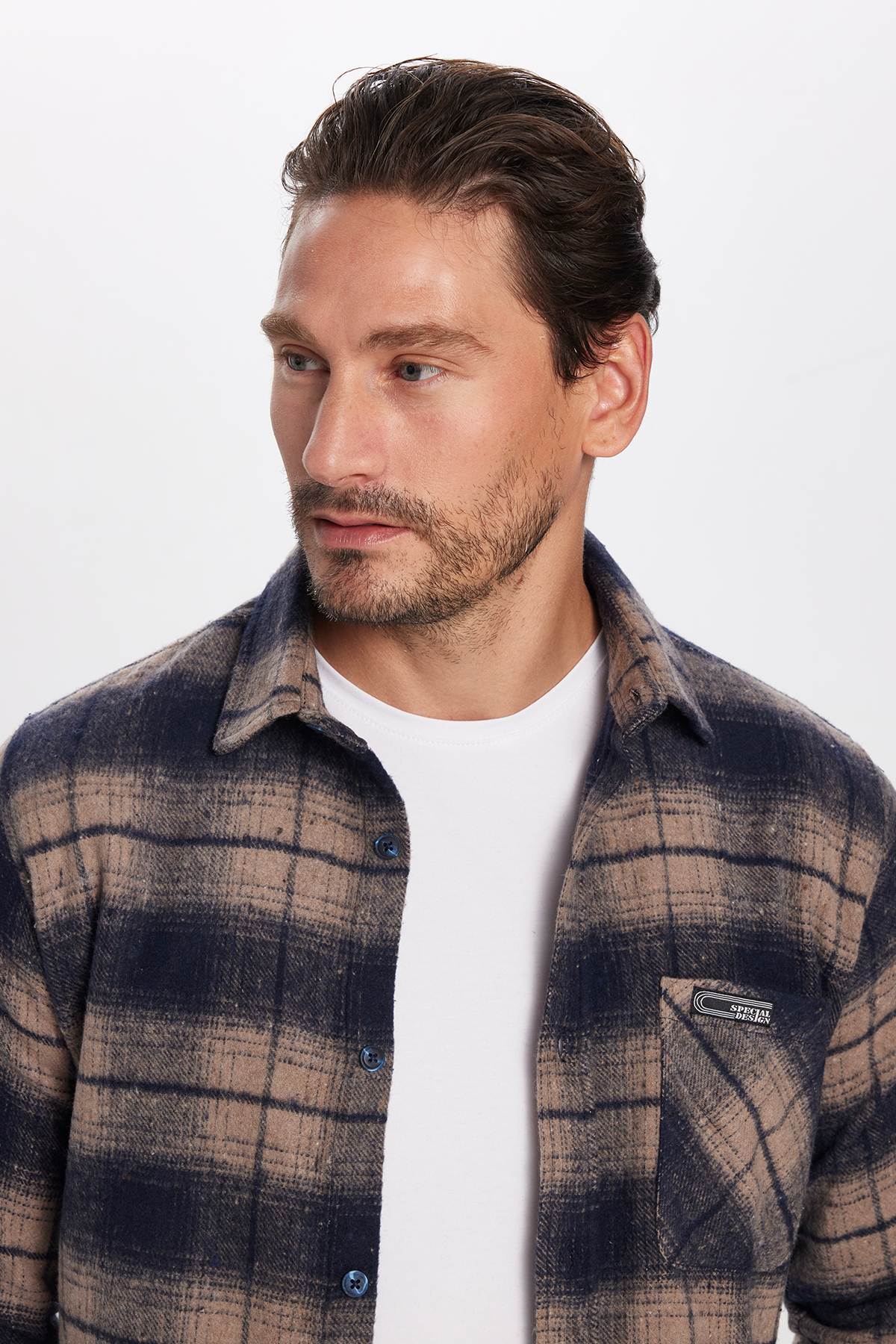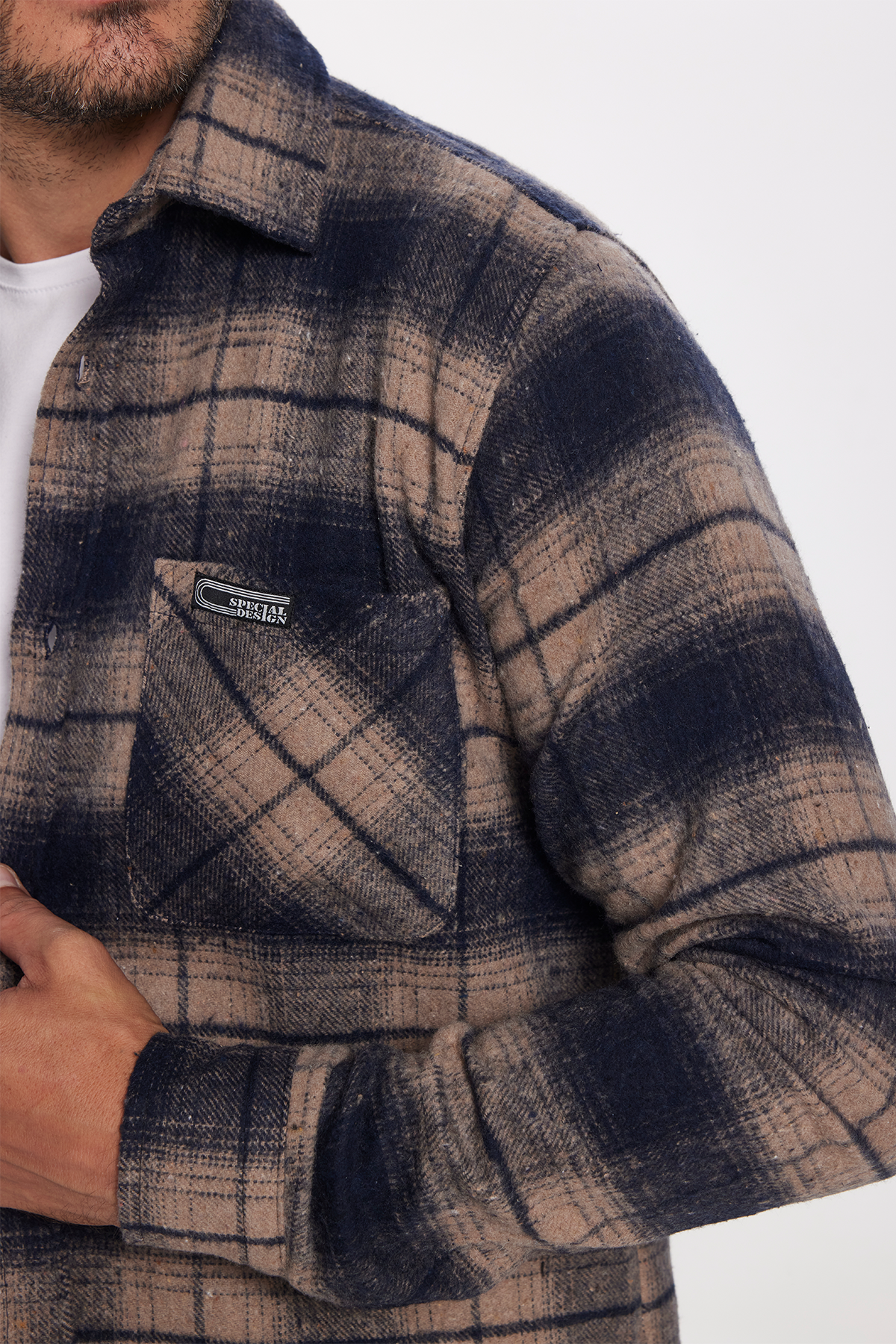 Erkek Slim Fit Dar Kesim Oduncu Tek Cep Kareli Kışlık Gömlek (DR250001-9813)