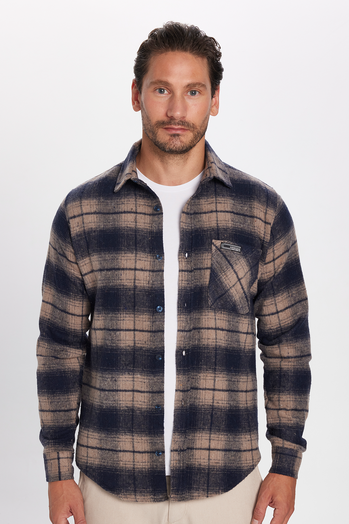 Erkek Slim Fit Dar Kesim Oduncu Tek Cep Kareli Kışlık Gömlek