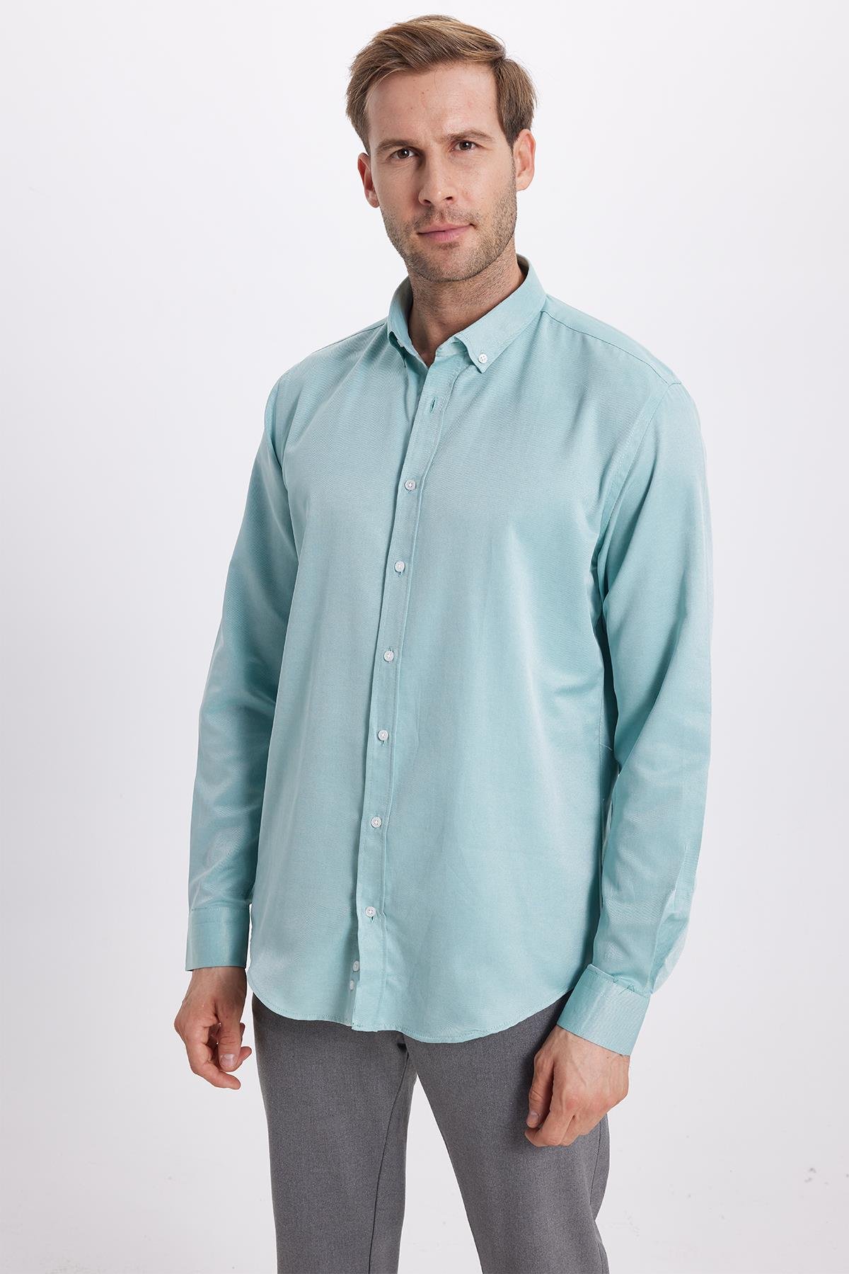 Erkek Slim Fit Dar Kesim Pamuklu Kolay Ütü Yeşil Düğmeli Yaka Gömlek (DR200095-453)