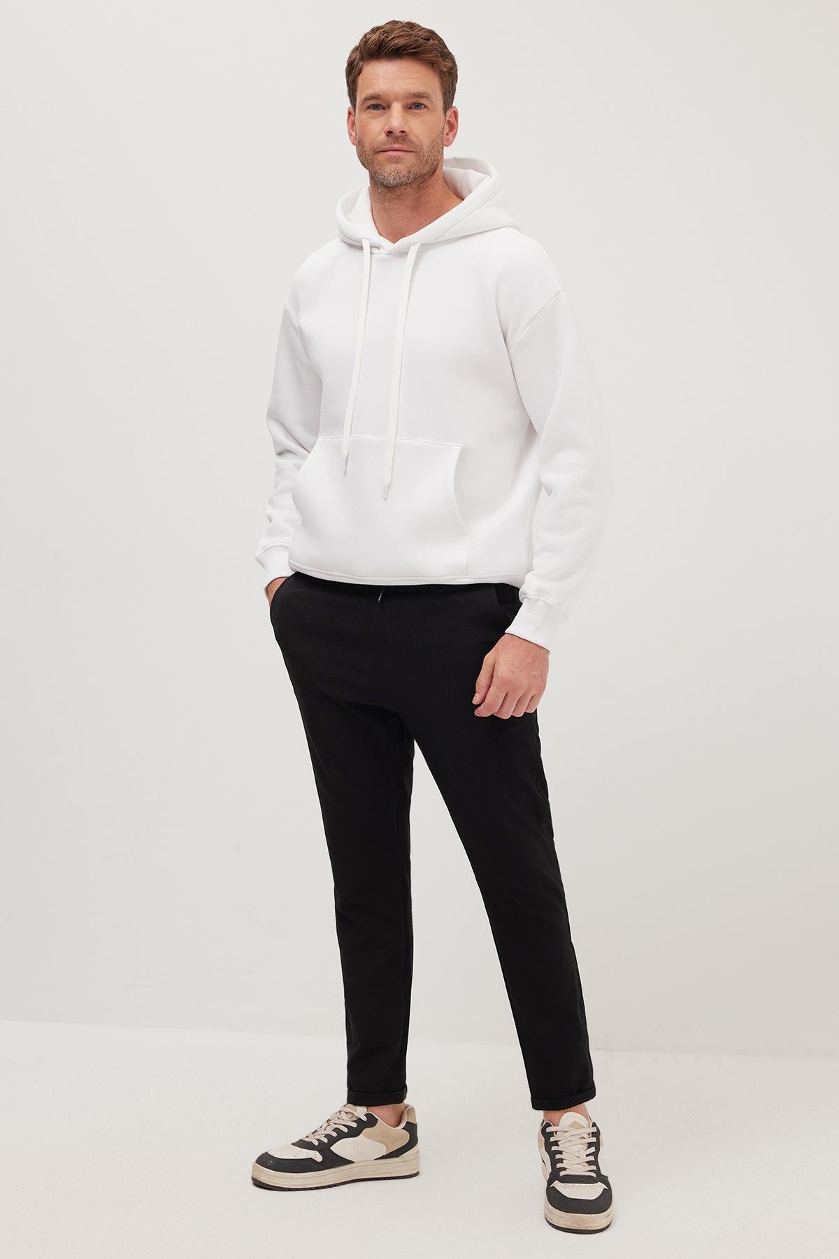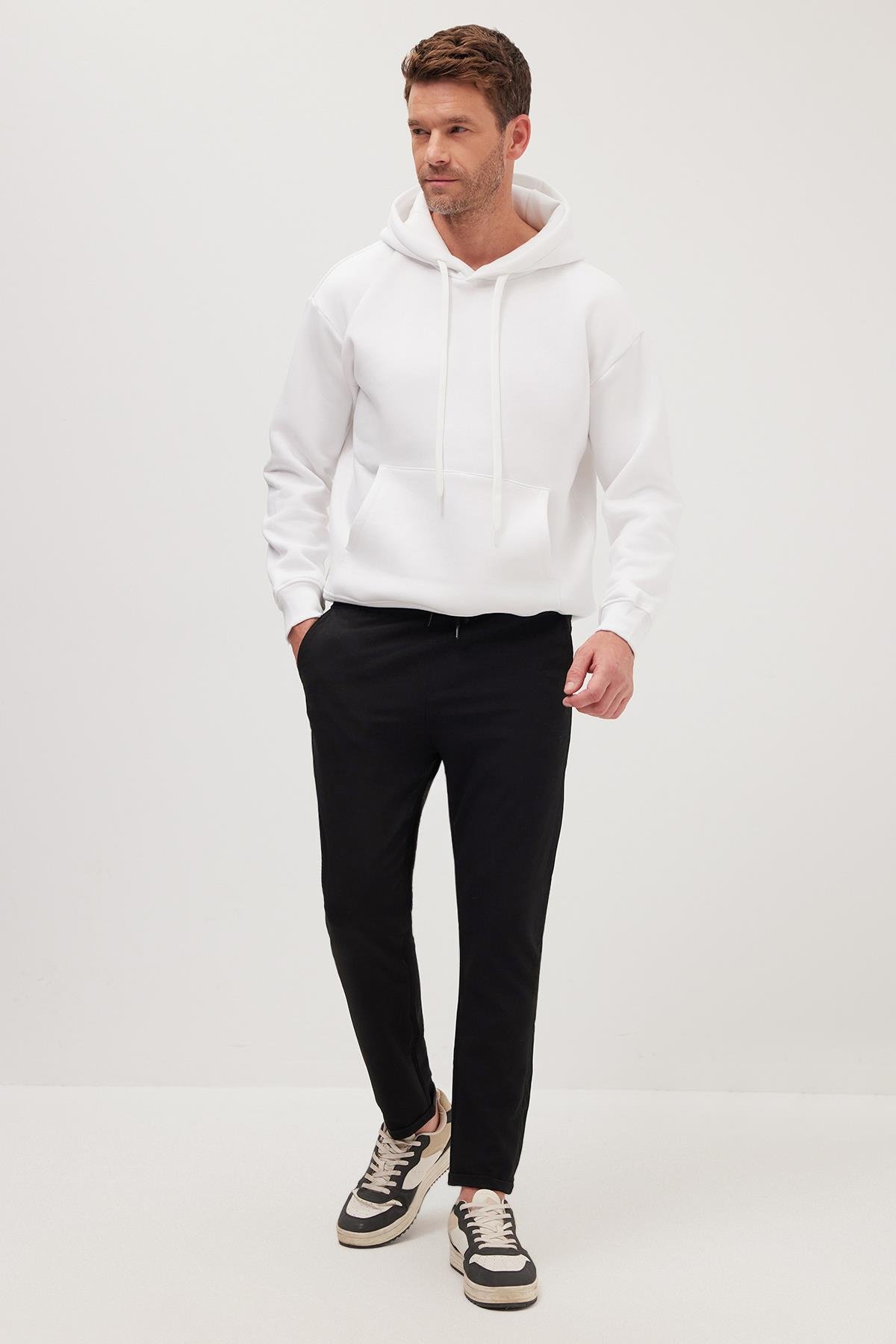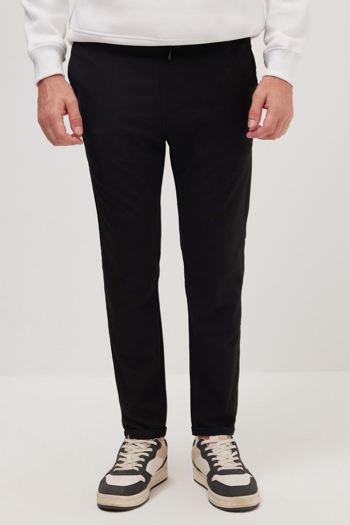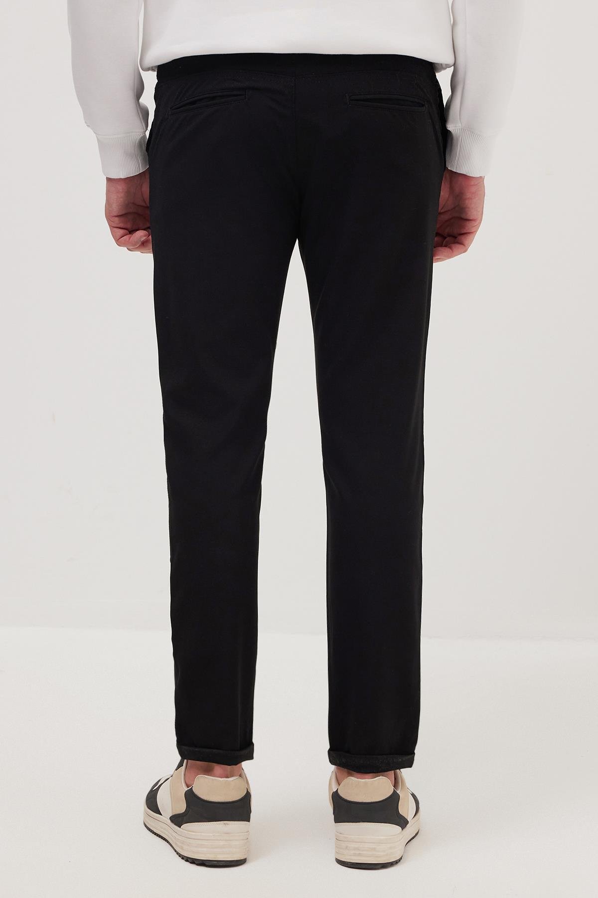 Erkek Slim Fit Dar Kesim Pamuklu Lastikli Beli Bağcıklı Siyah Pantolon (PN250029-02)