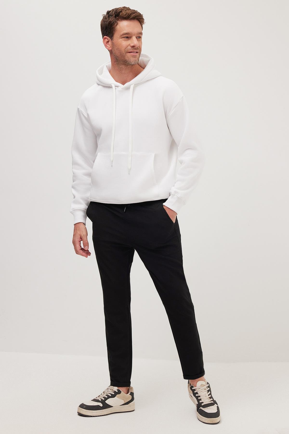 Erkek Slim Fit Dar Kesim Pamuklu Lastikli Beli Bağcıklı Siyah Pantolon
