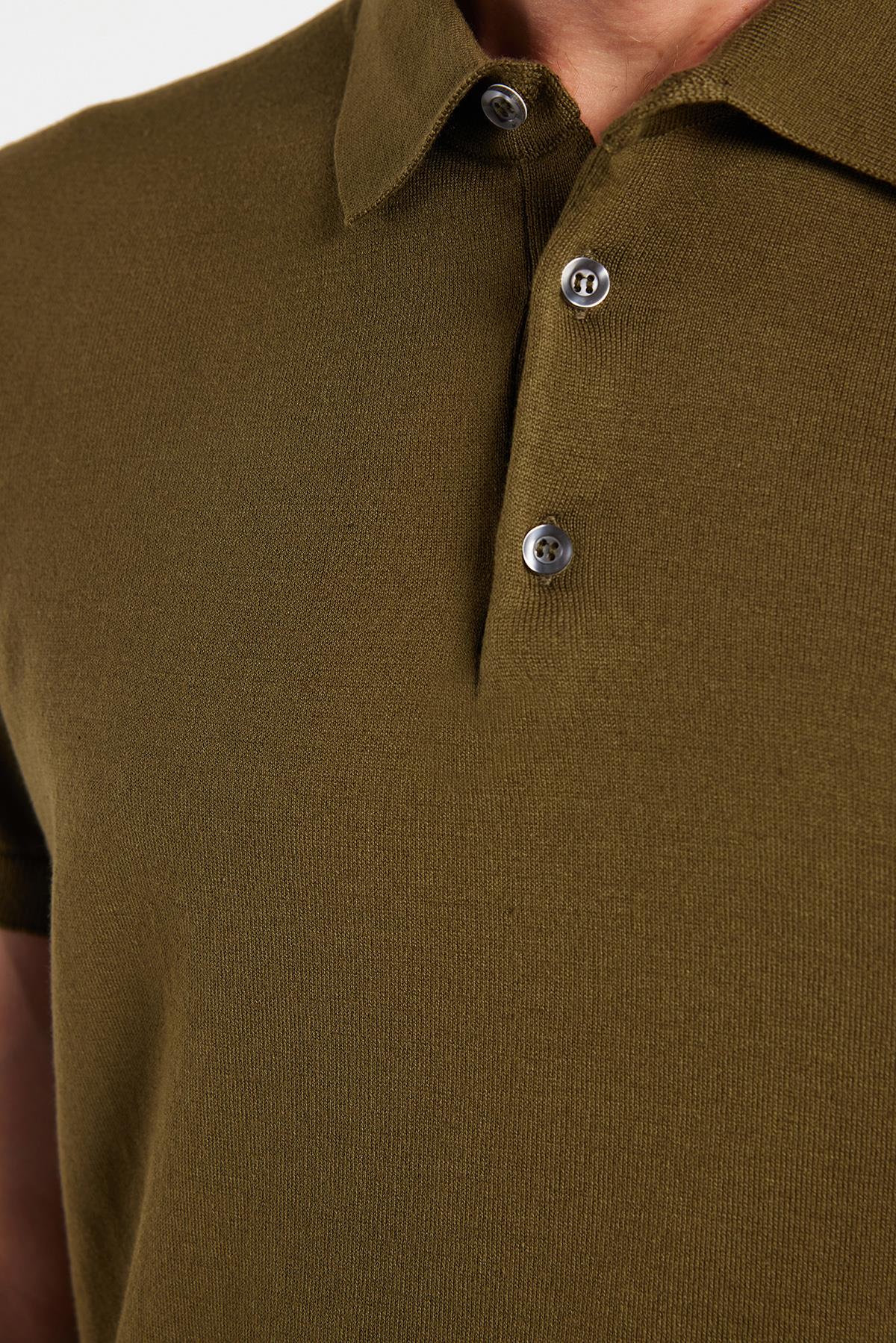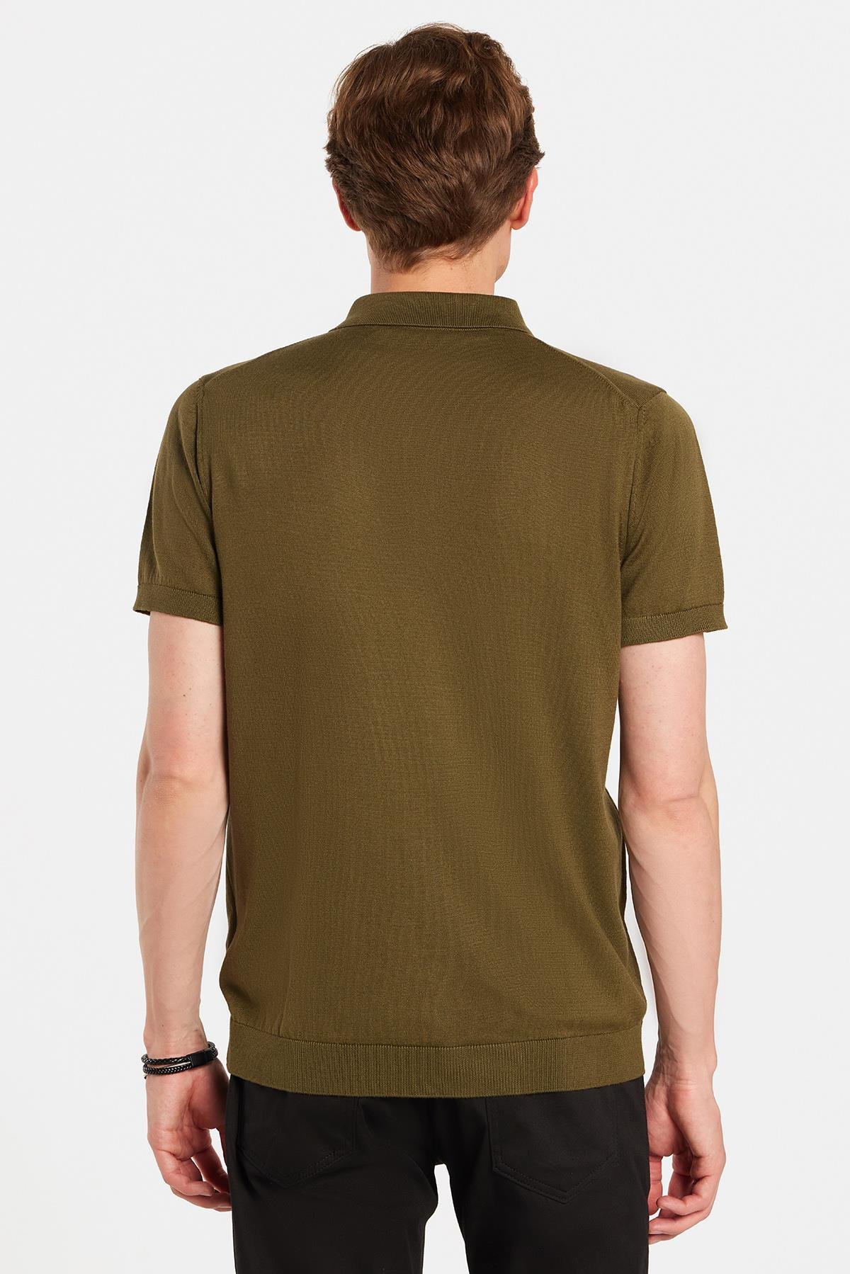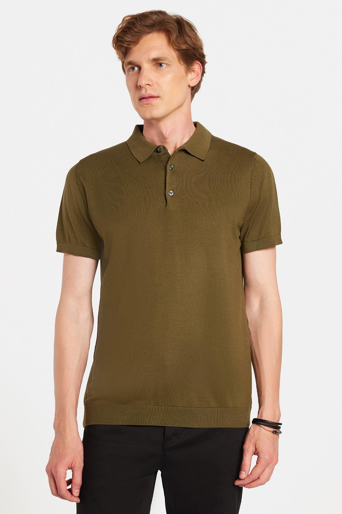 Erkek Slim Fit Dar Kesim Pamuklu Örme Triko Haki Polo Yaka Tişört (TS230012-ACK)