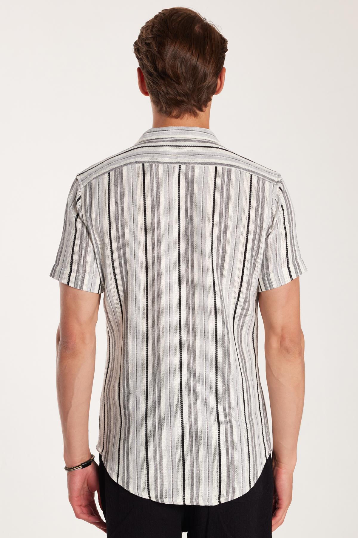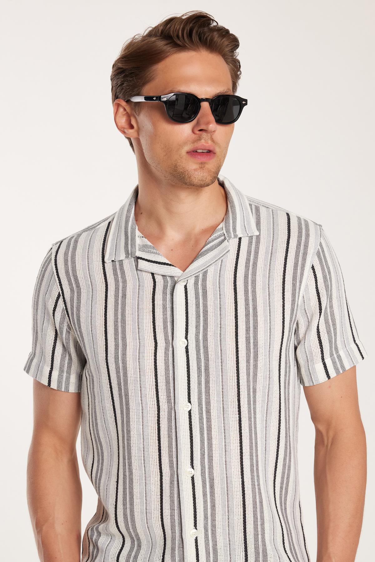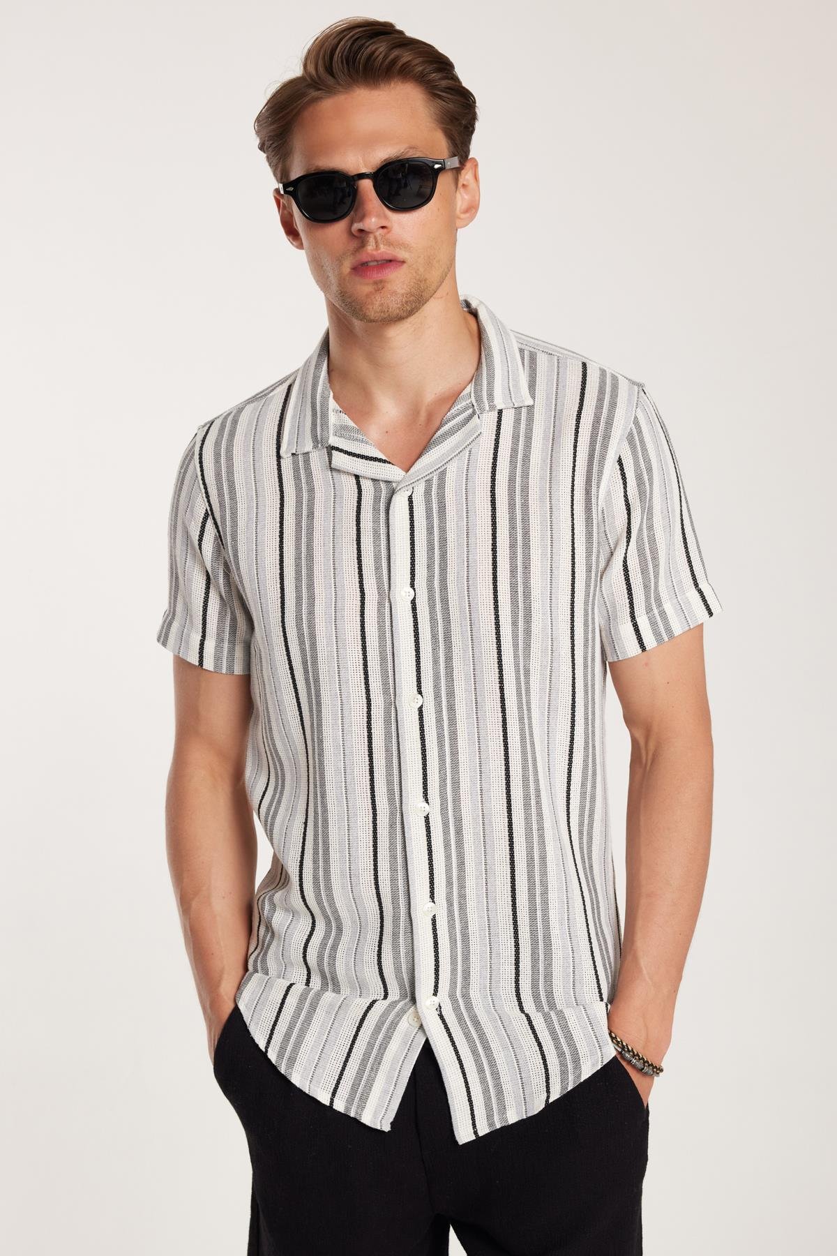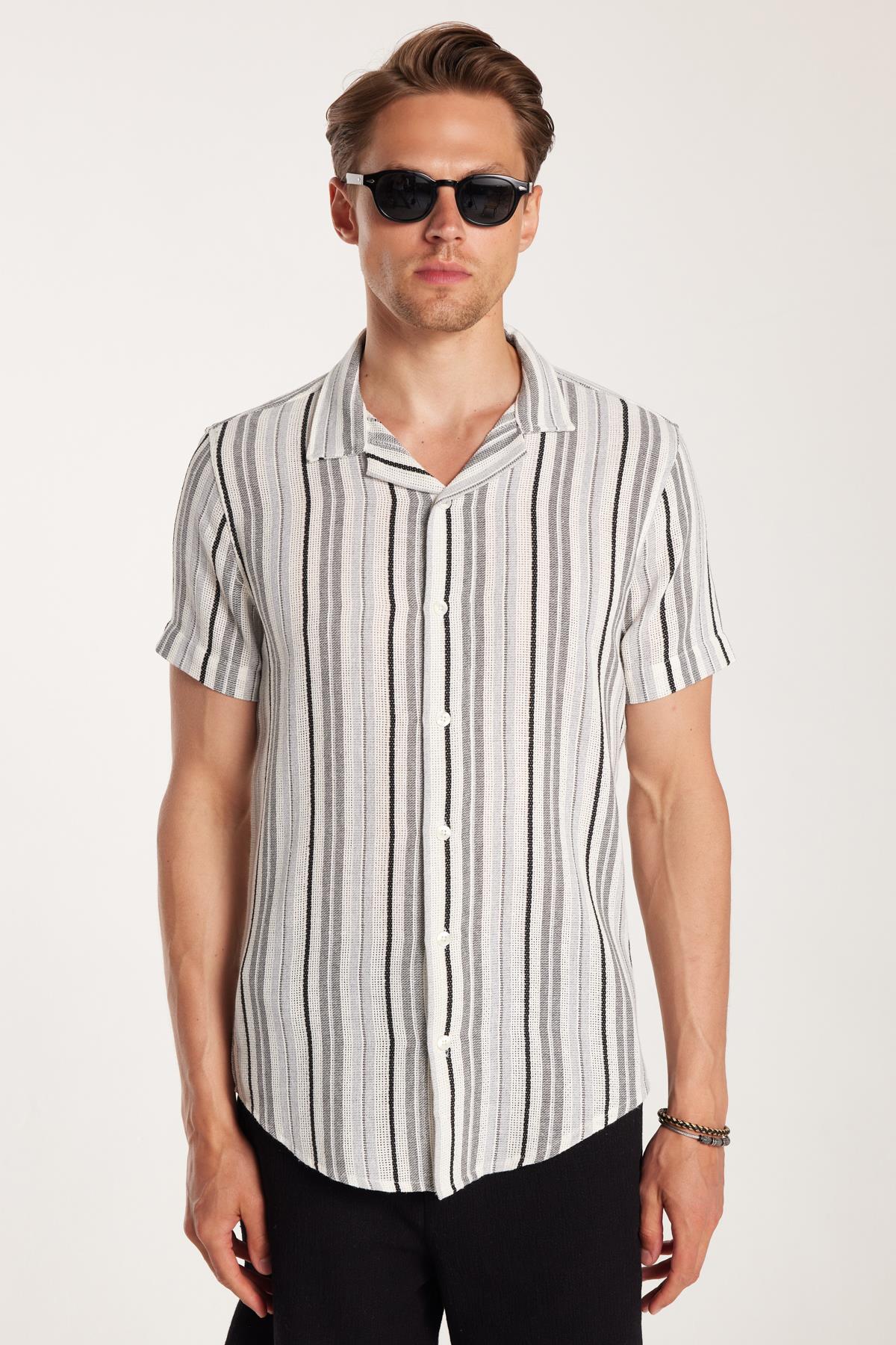 Erkek Slim Fit Dar Kesim Pamuklu Rahat Kullanım Çizgili Kısa Kollu Apaş Yaka Gömlek (DR250013-7012)