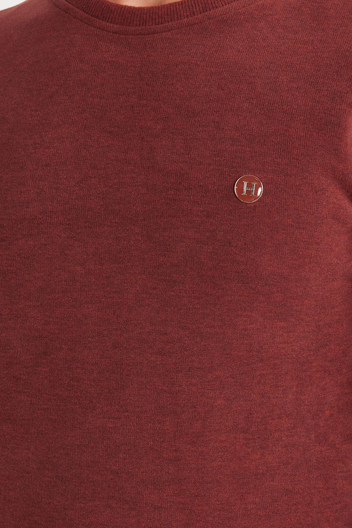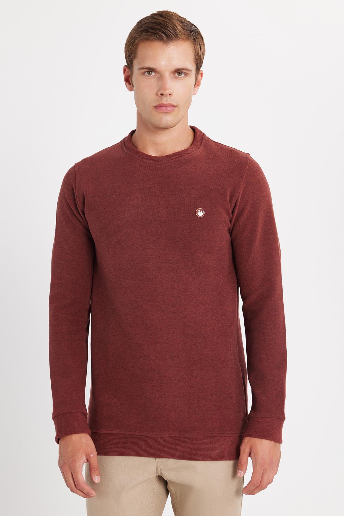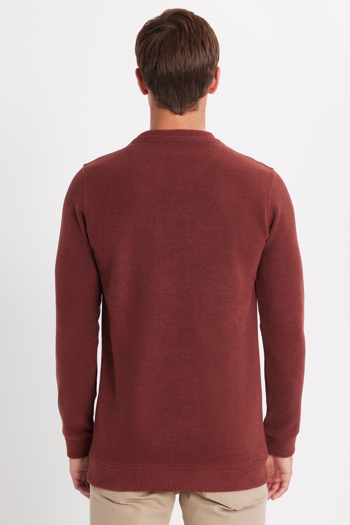 Erkek Slim Fit Dar Kesim Pamuklu Selanik Kumaş Bisiklet Yaka Kiremit Sweatshirt