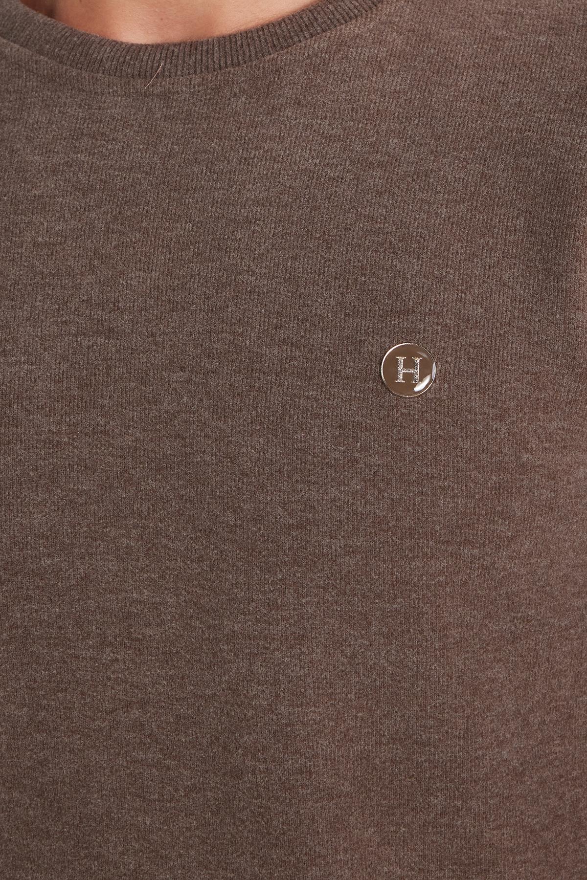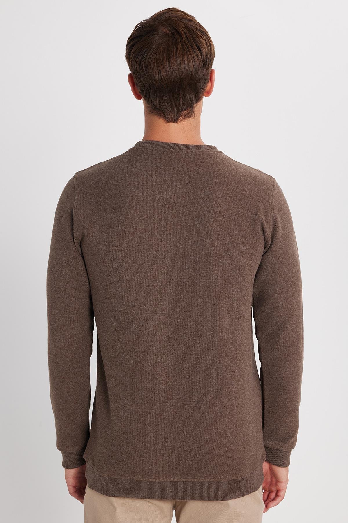 Erkek Slim Fit Dar Kesim Pamuklu Selanik Kumaş Bisiklet Yaka Kahverengi Sweatshirt