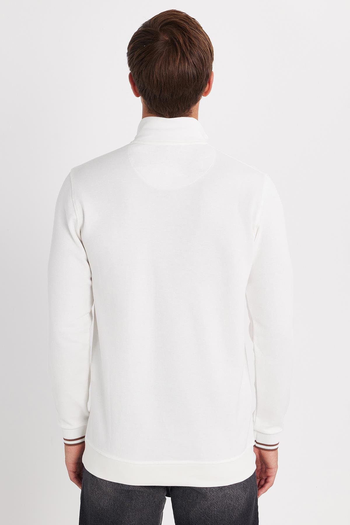 Erkek Slim Fit Dar Kesim Pamuklu Yarım Fermuarlı Dik Yaka Beyaz Sweatshirt (SW250019-01)
