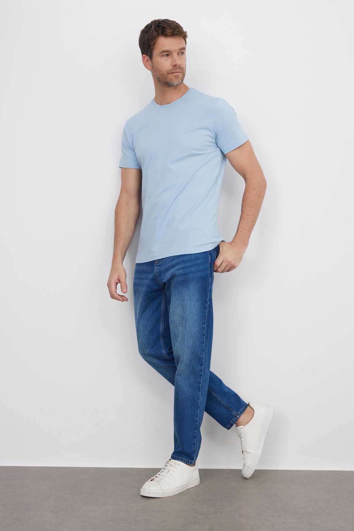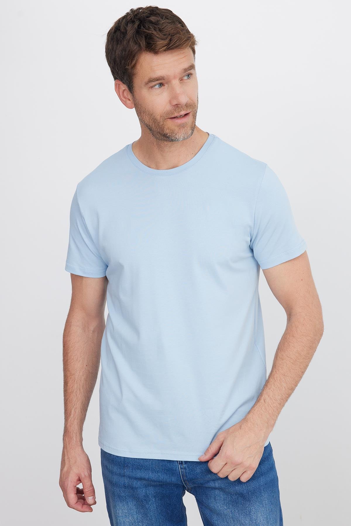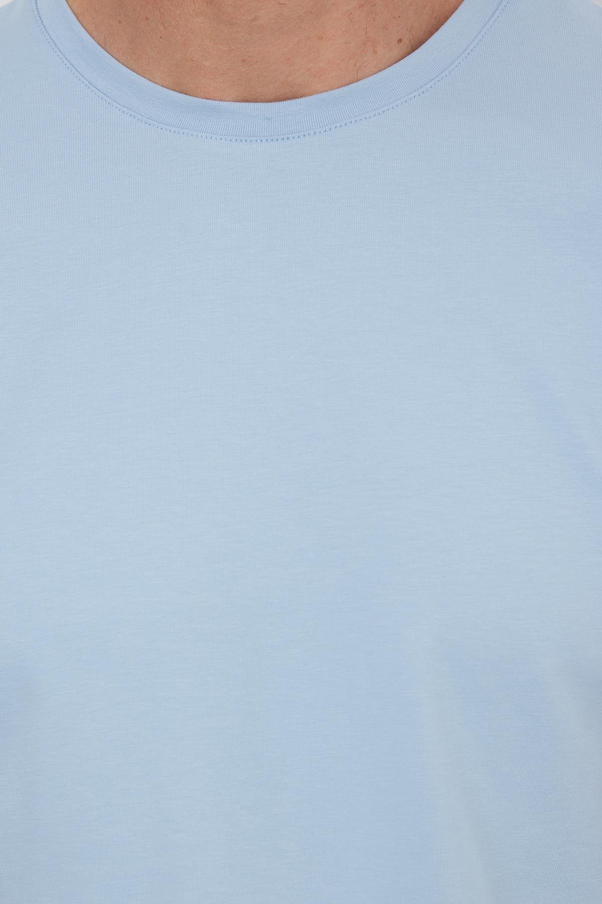 Erkek Slim Fit Dar Kesim Pamuklu Yumuşak Doku Likralı Esnek Kumaş Basic Mavi Bisiklet Yaka Tişört (TS210001-PM1)