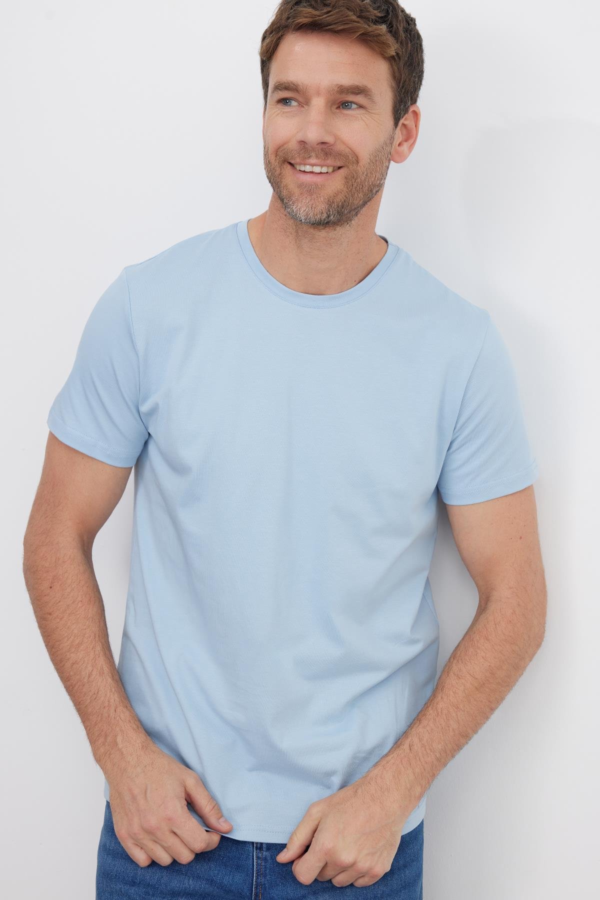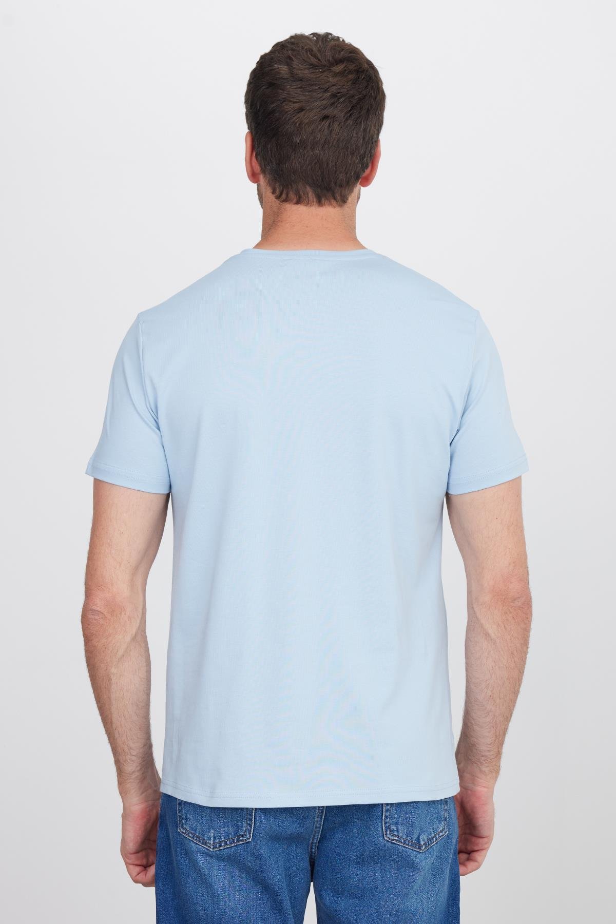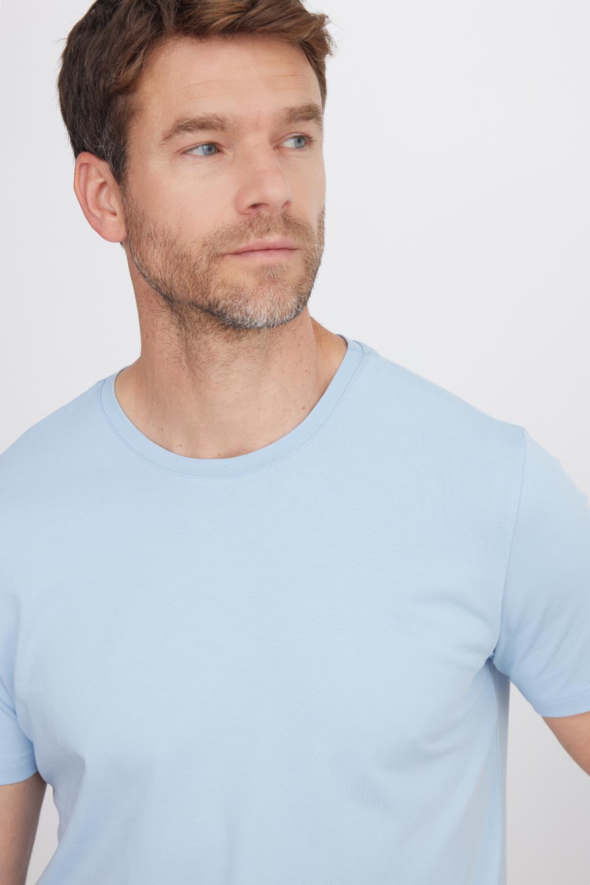 Erkek Slim Fit Dar Kesim Pamuklu Yumuşak Doku Likralı Esnek Kumaş Basic Mavi Bisiklet Yaka Tişört (TS210001-PM1)
