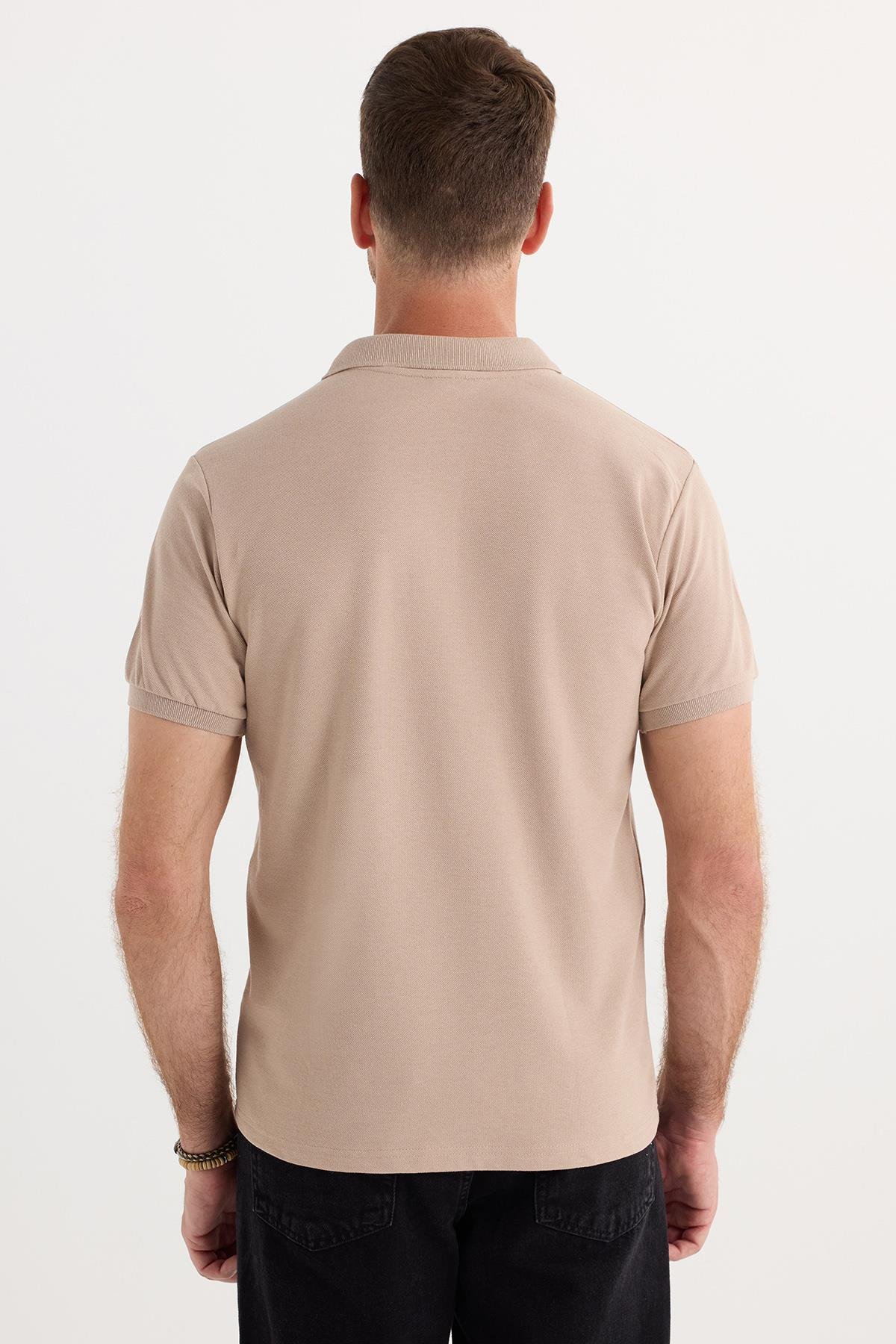 Erkek Slim Fit Dar Kesim Pamuklu Yumuşak Dokulu Serin Tutan Kumaş Düz Pike Bej Polo Yaka Tişört (TS240019-STG)