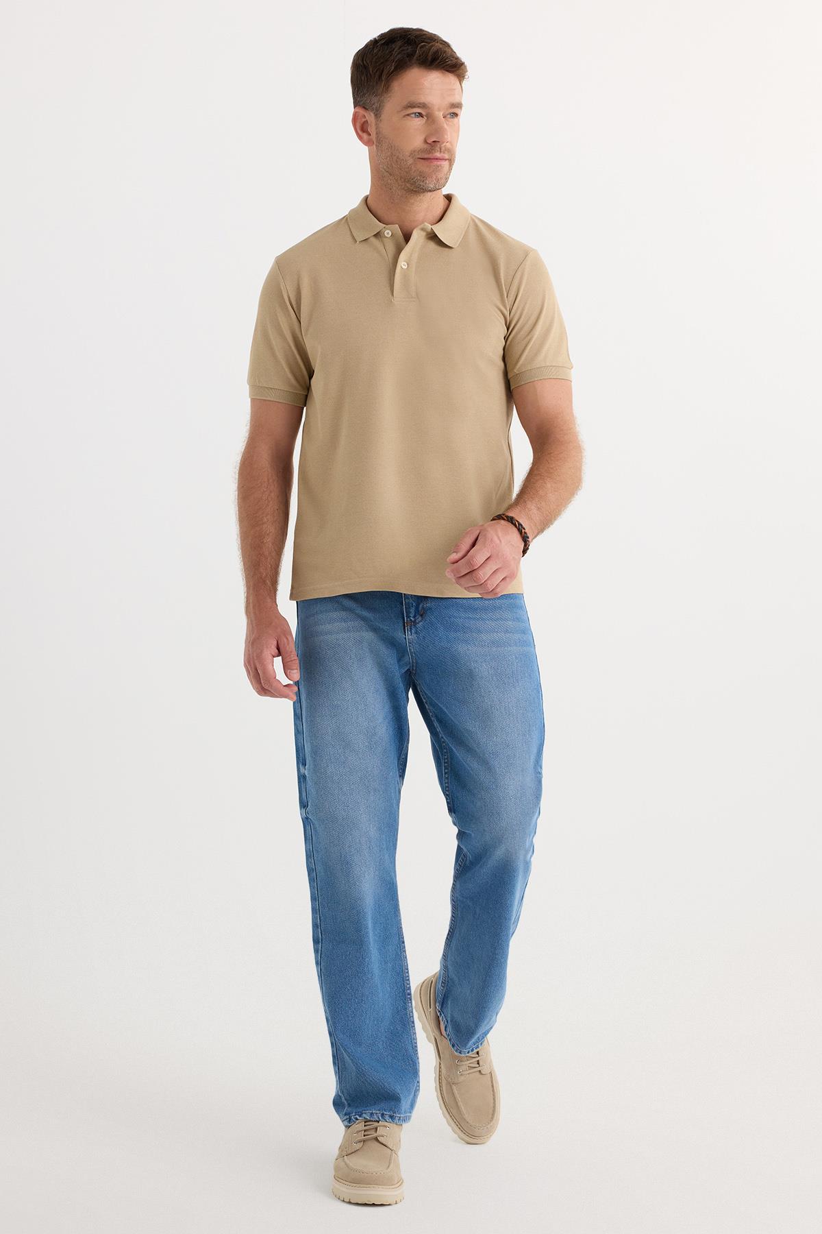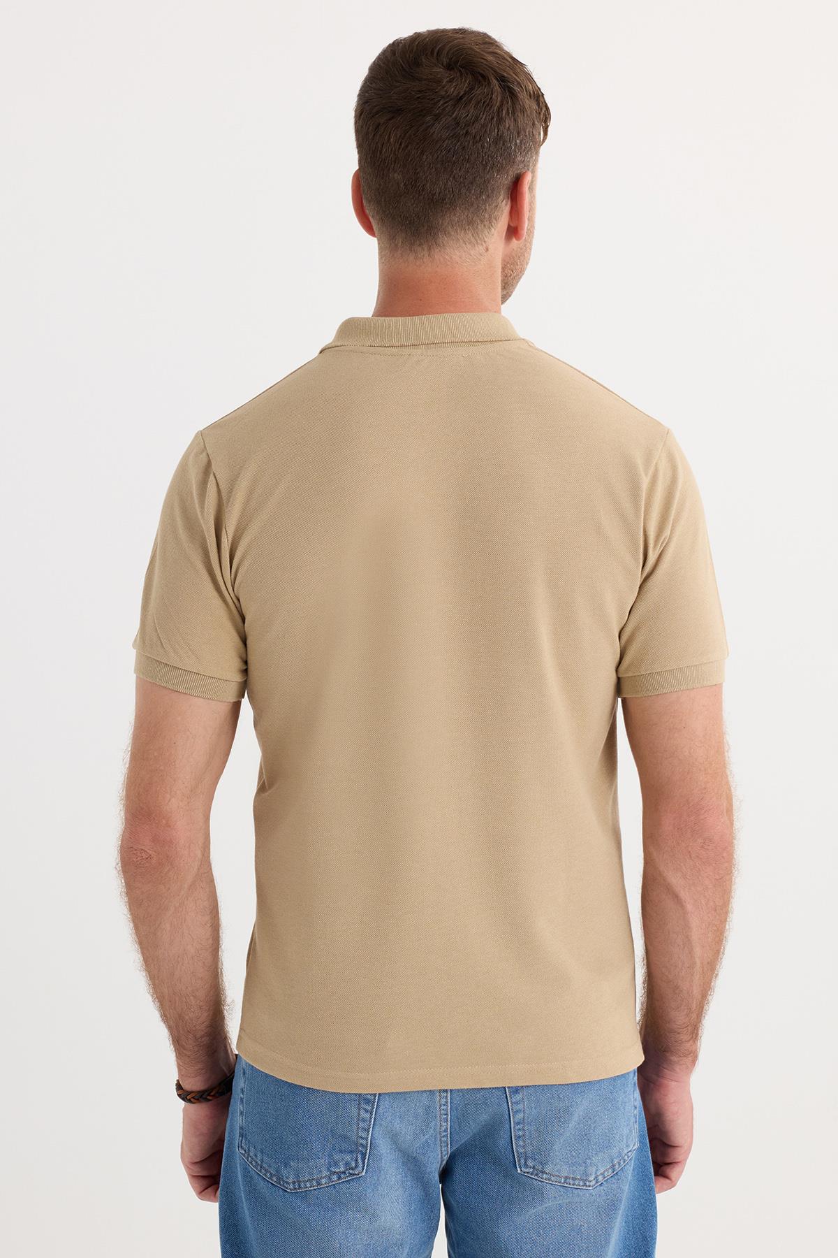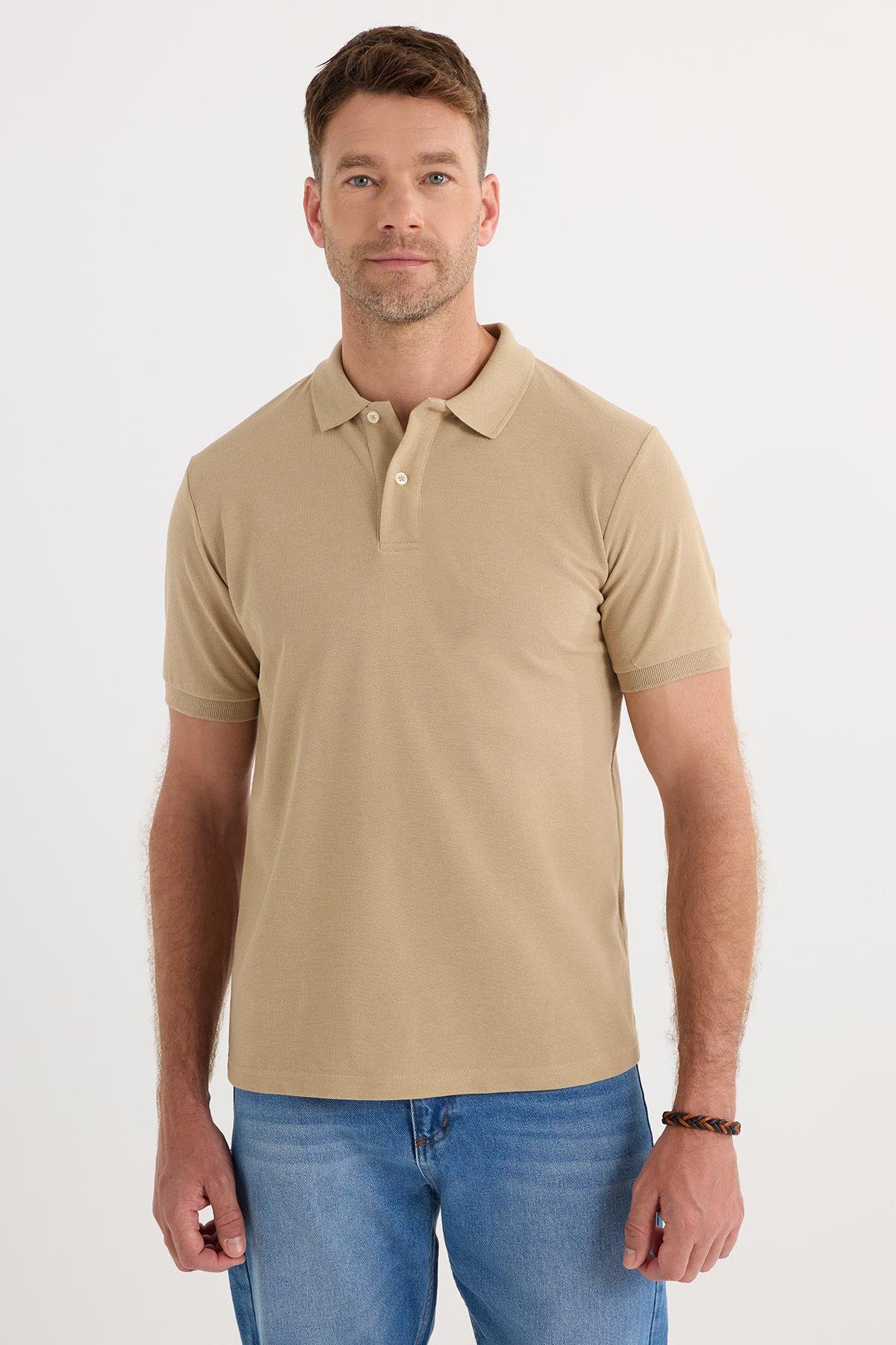 Erkek Slim Fit Dar Kesim Pamuklu Yumuşak Dokulu Serin Tutan Kumaş Düz Pike Bej Polo Yaka Tişört (TS240019-TFT1)