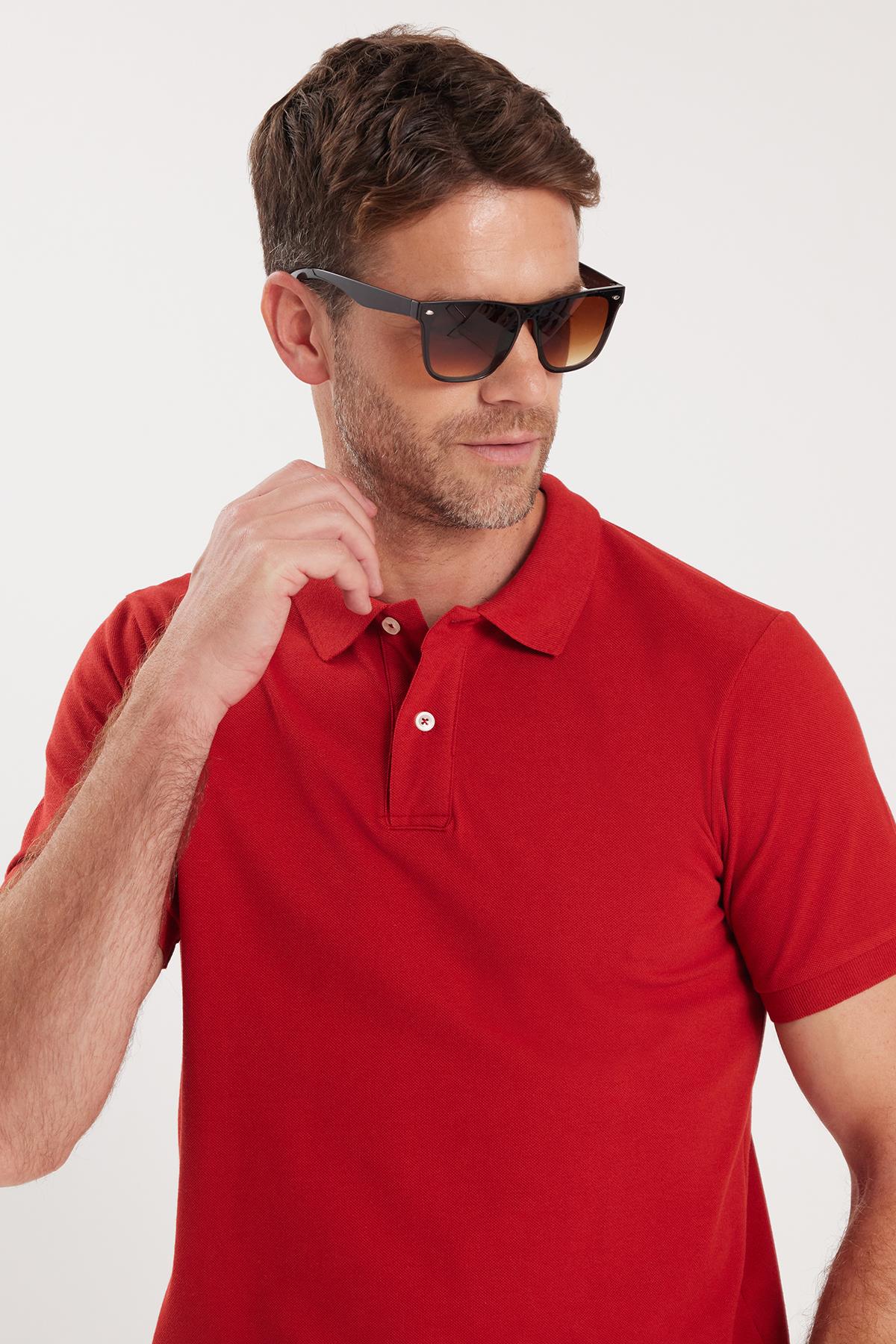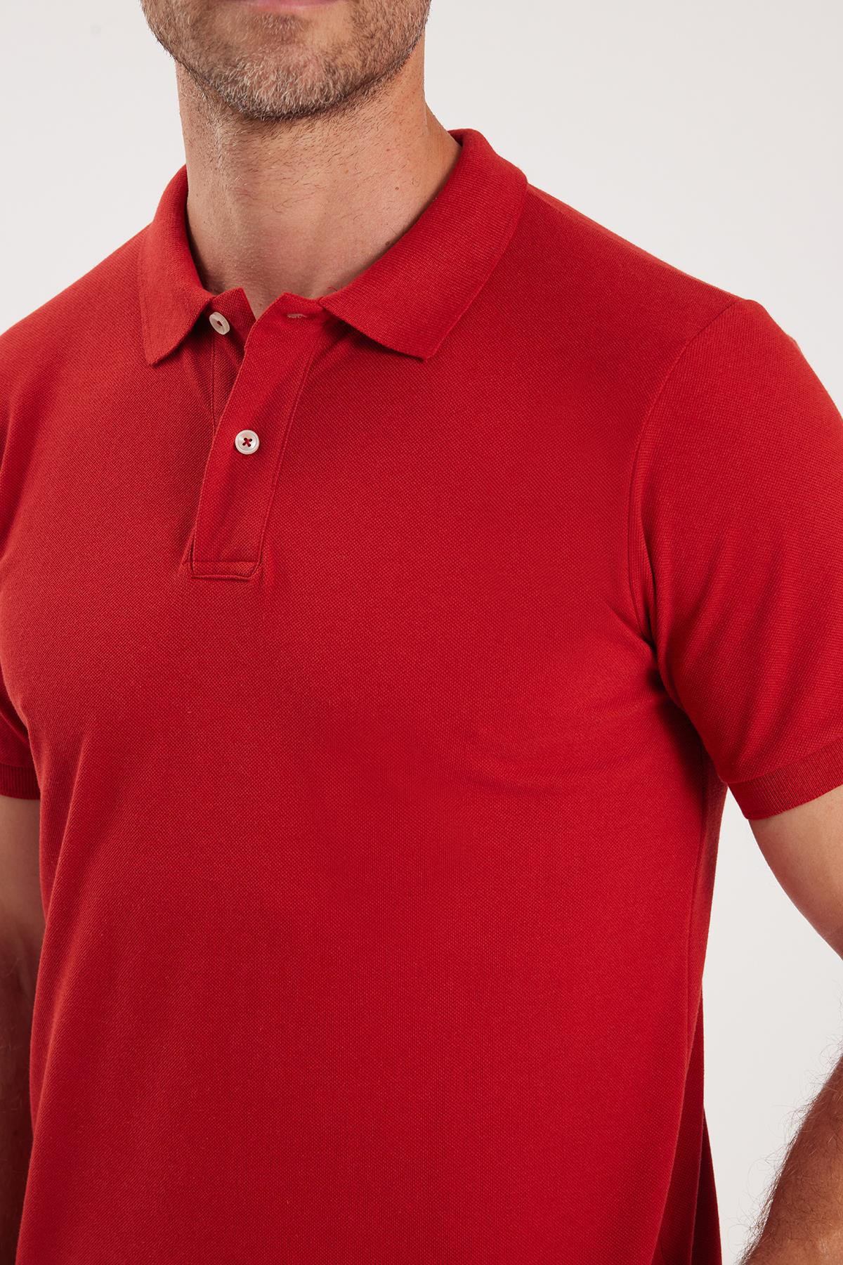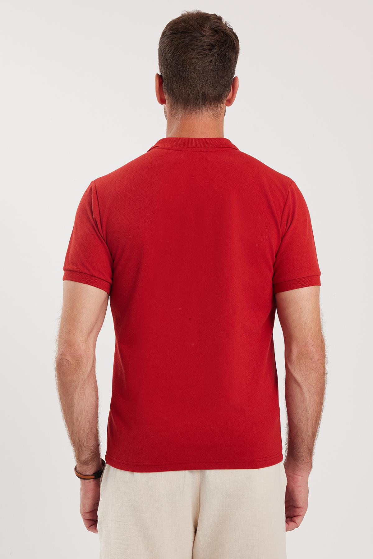 Erkek Slim Fit Dar Kesim Pamuklu Yumuşak Dokulu Serin Tutan Kumaş Düz Pike Bordo Polo Yaka Tişört (TS240019-RD)