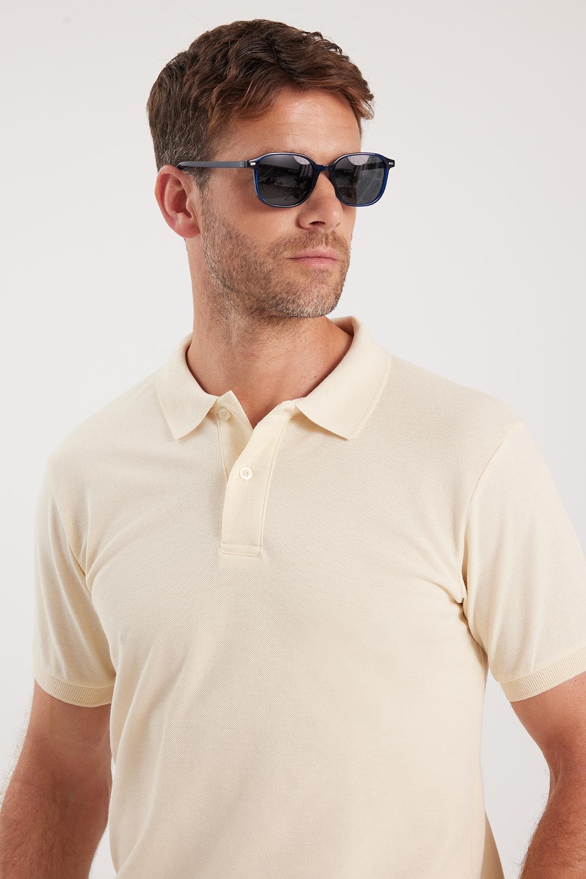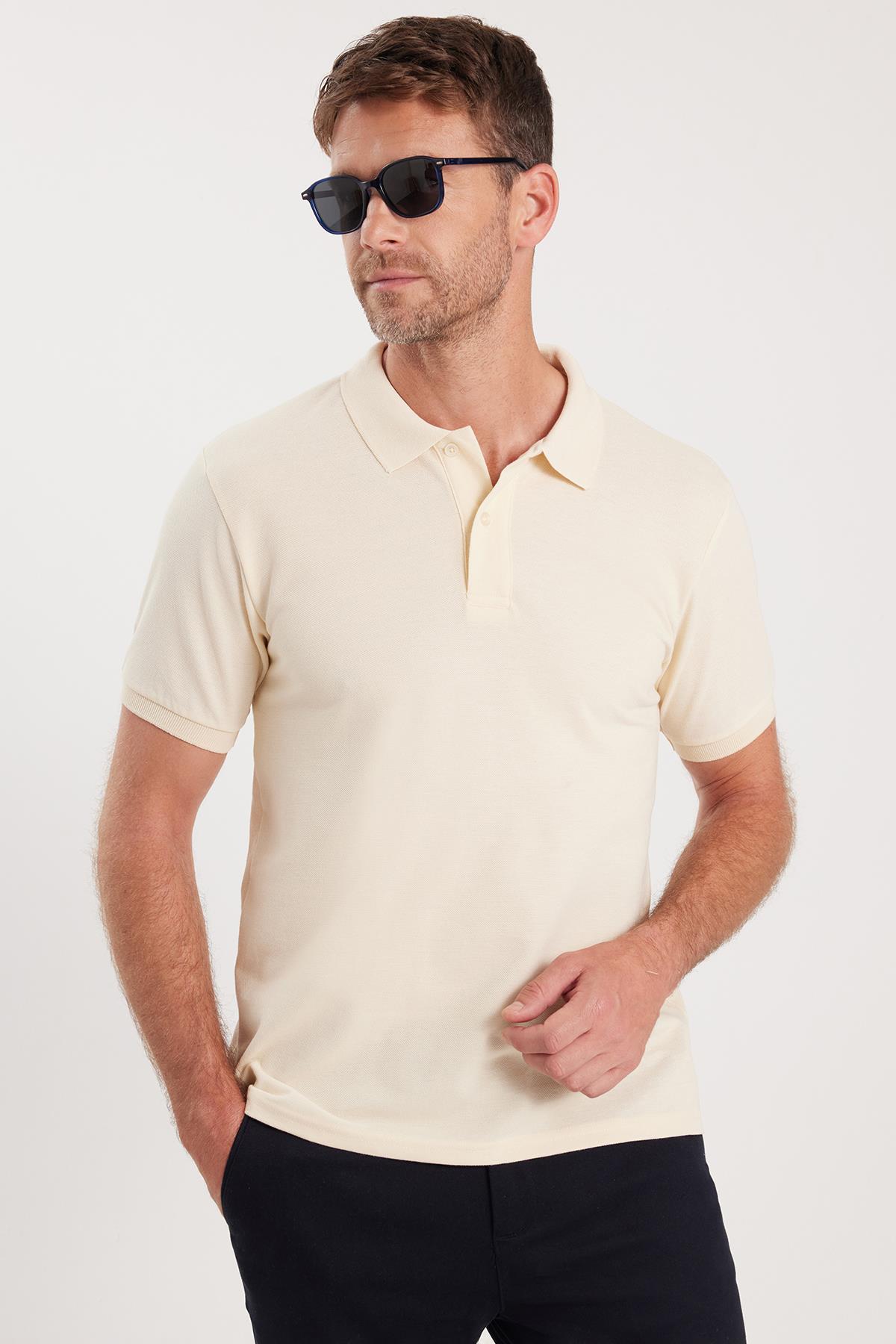Erkek Slim Fit Dar Kesim Pamuklu Yumuşak Dokulu Serin Tutan Kumaş Düz Pike Polo Yaka Tişört (TS240019-WG0)