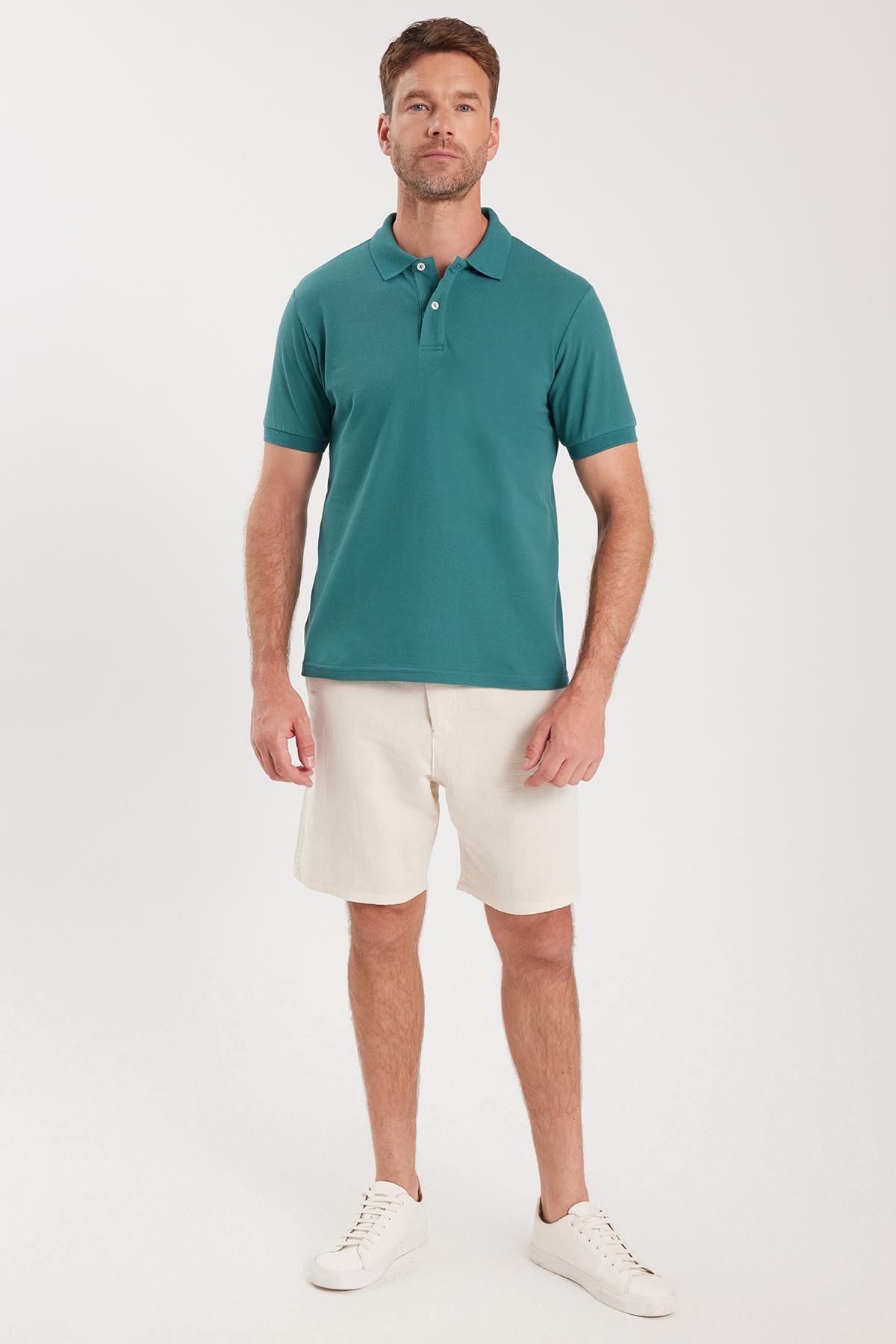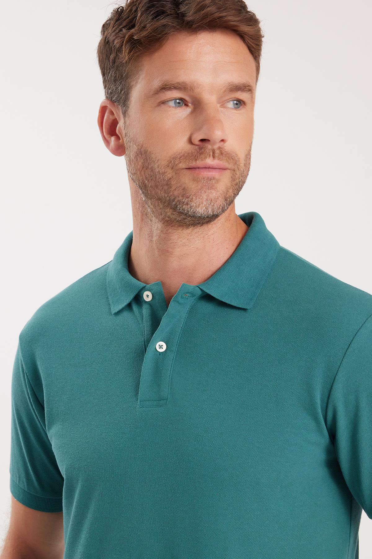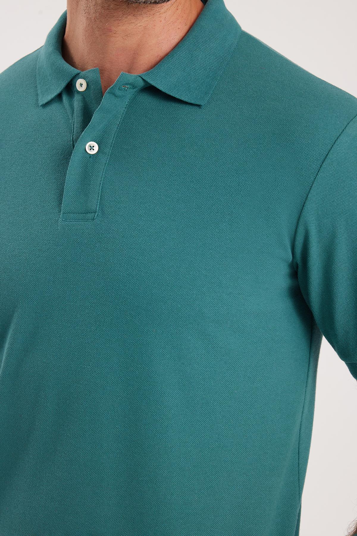 Erkek Slim Fit Dar Kesim Pamuklu Yumuşak Dokulu Serin Tutan Kumaş Düz Pike Yeşil Polo Yaka Tişört (TS240019-BS1)