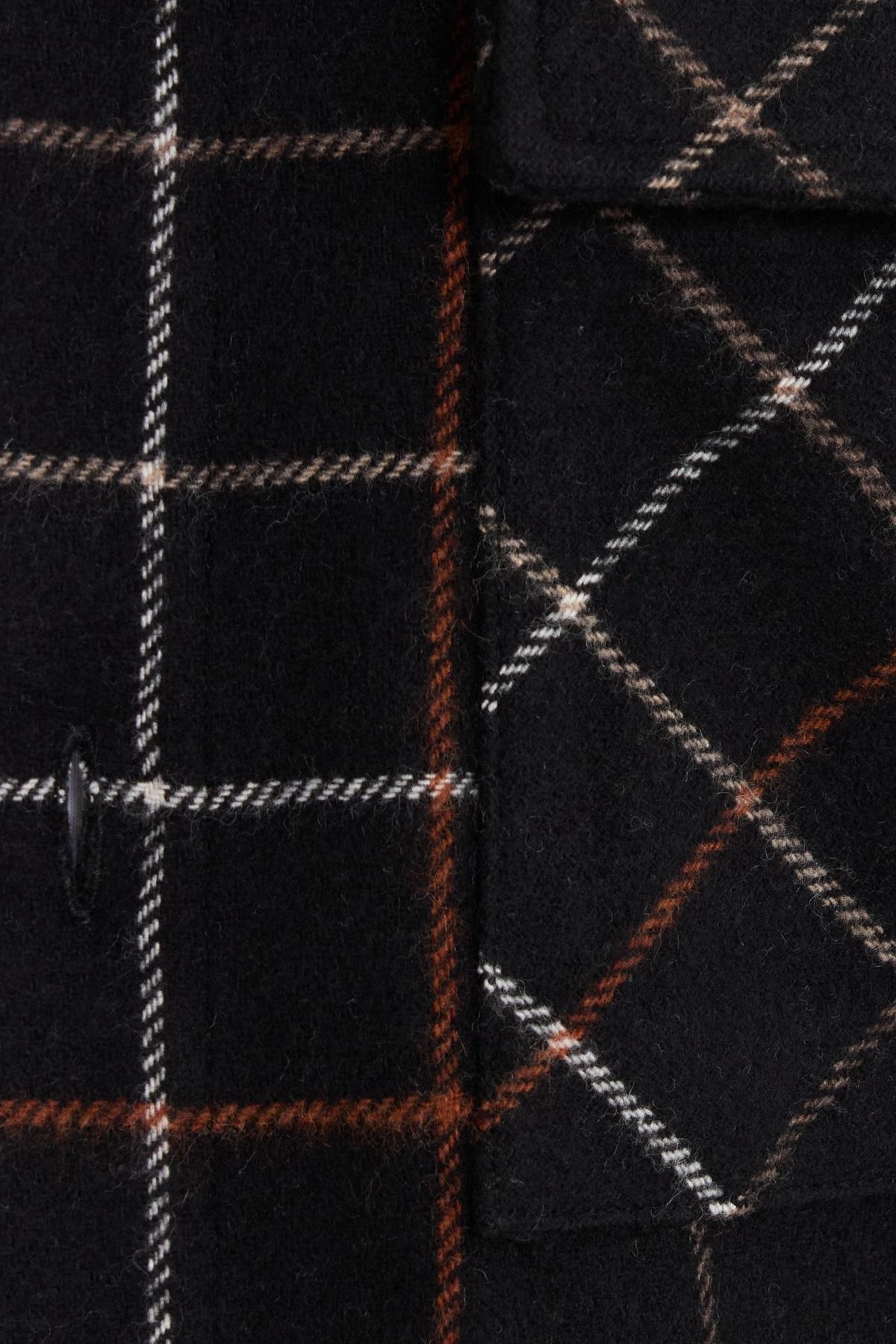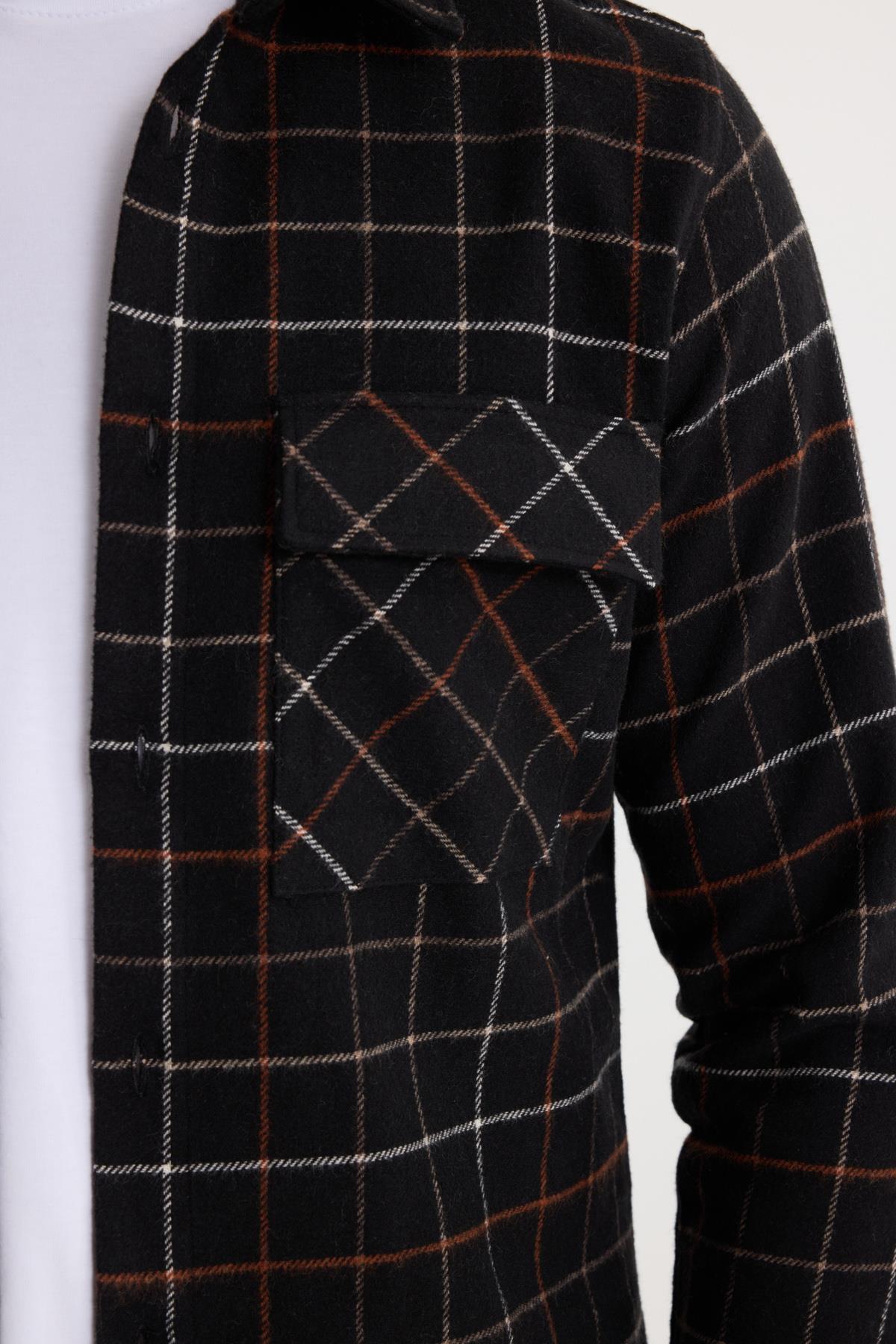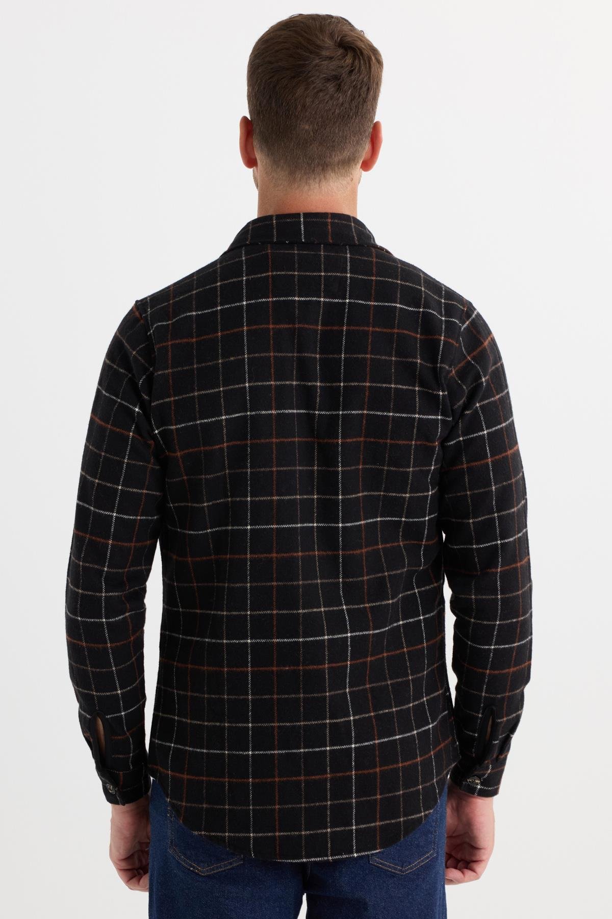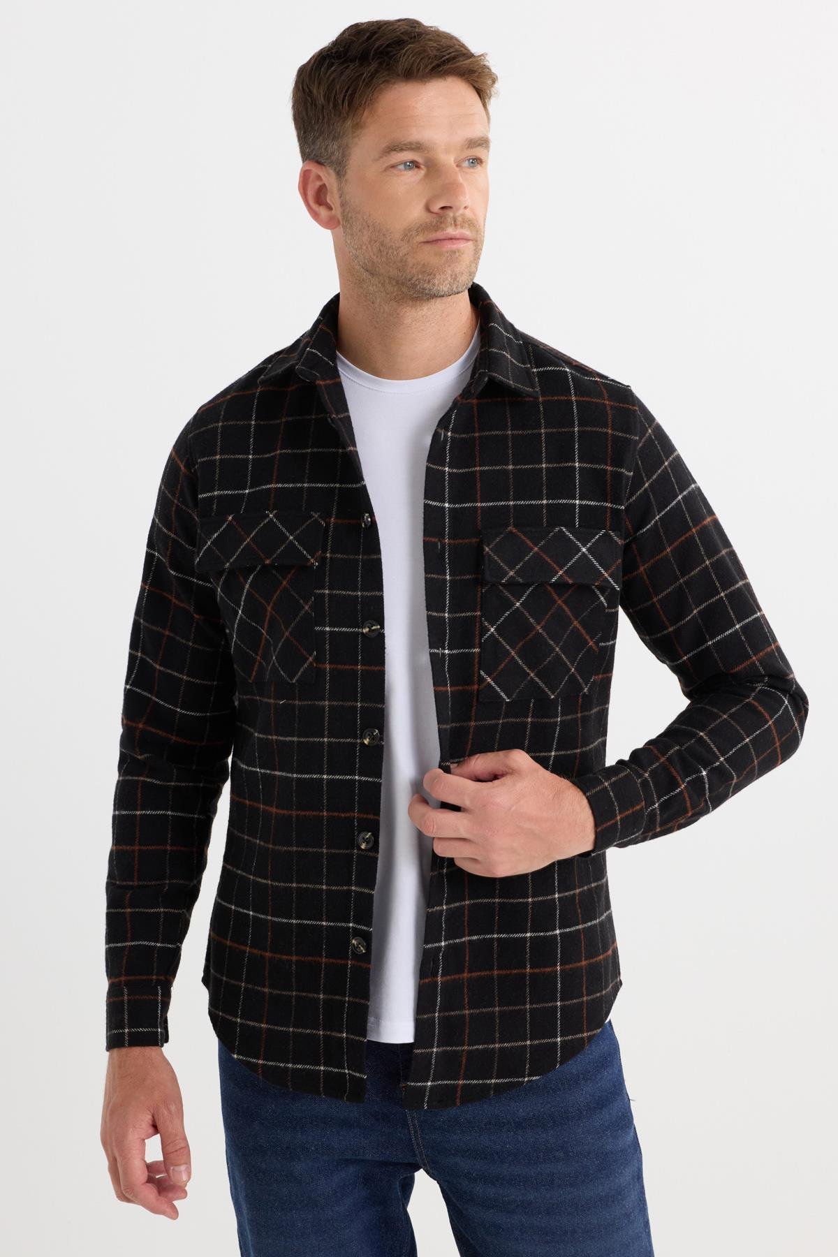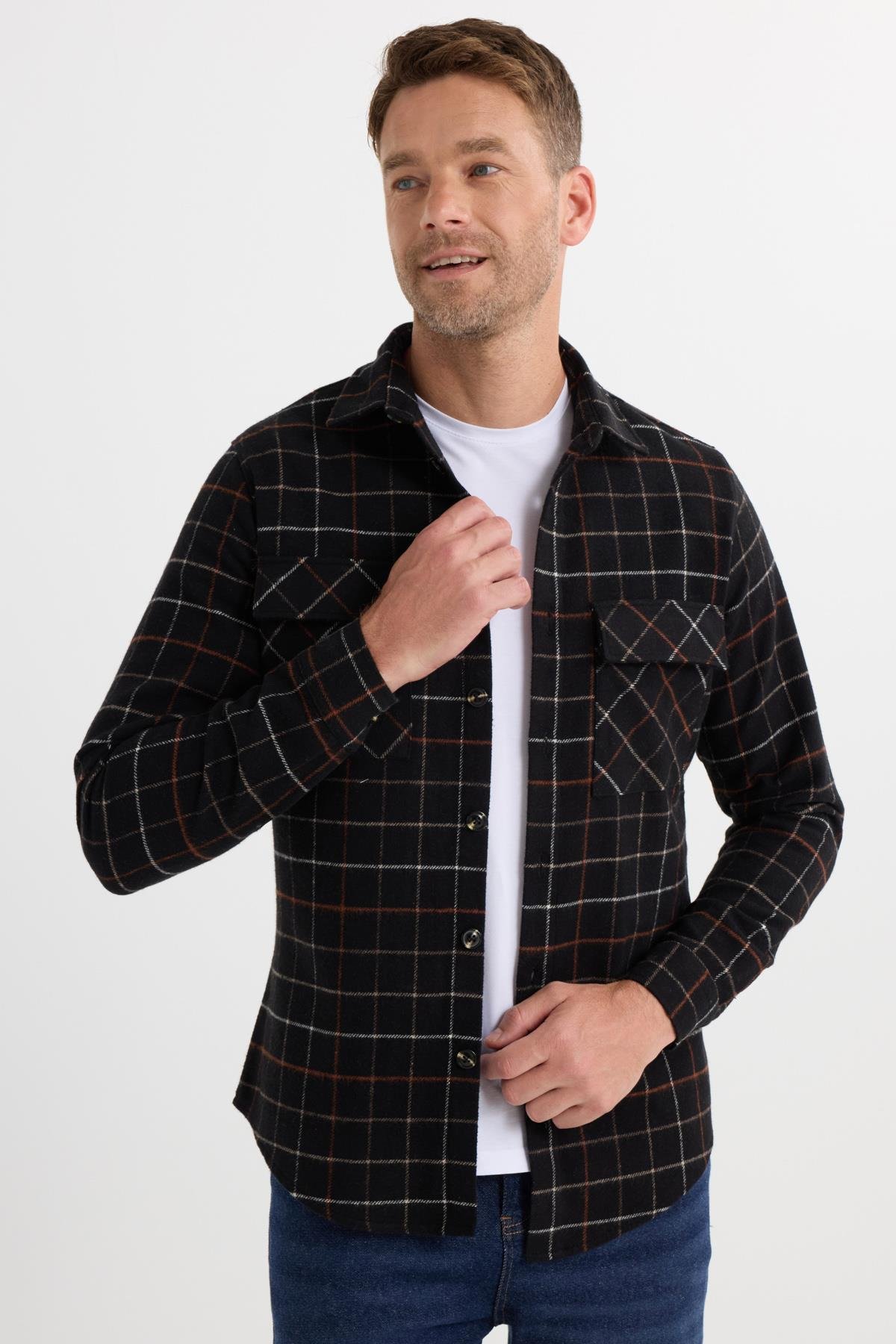 Erkek Slim Fit Dar Kesim Spor Yaka Çift Cep Kapaklı Kareli Gömlek (DR250018-3910)