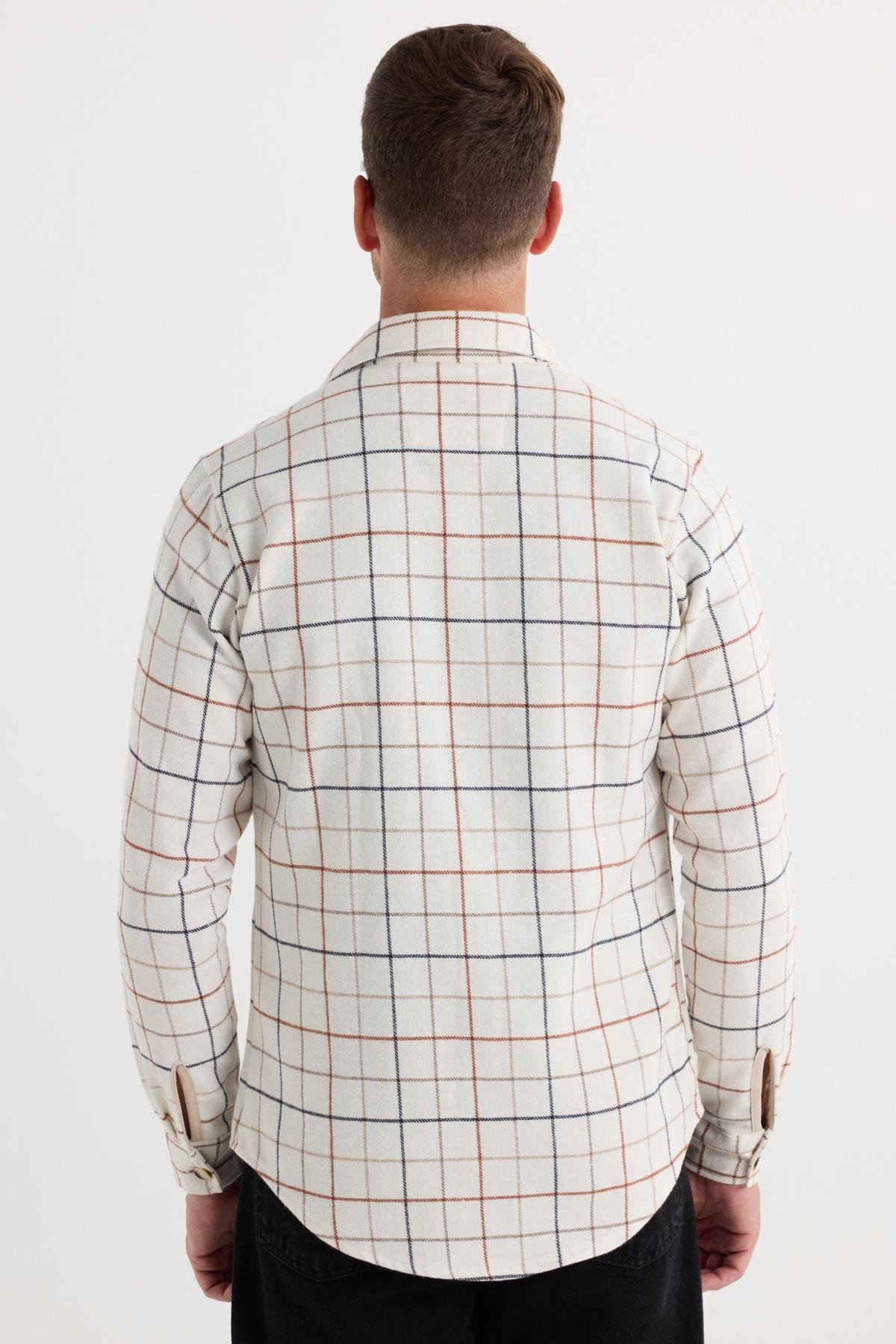 Erkek Slim Fit Dar Kesim Spor Yaka Çift Cep Kapaklı Kareli Gömlek (DR250018-3911)