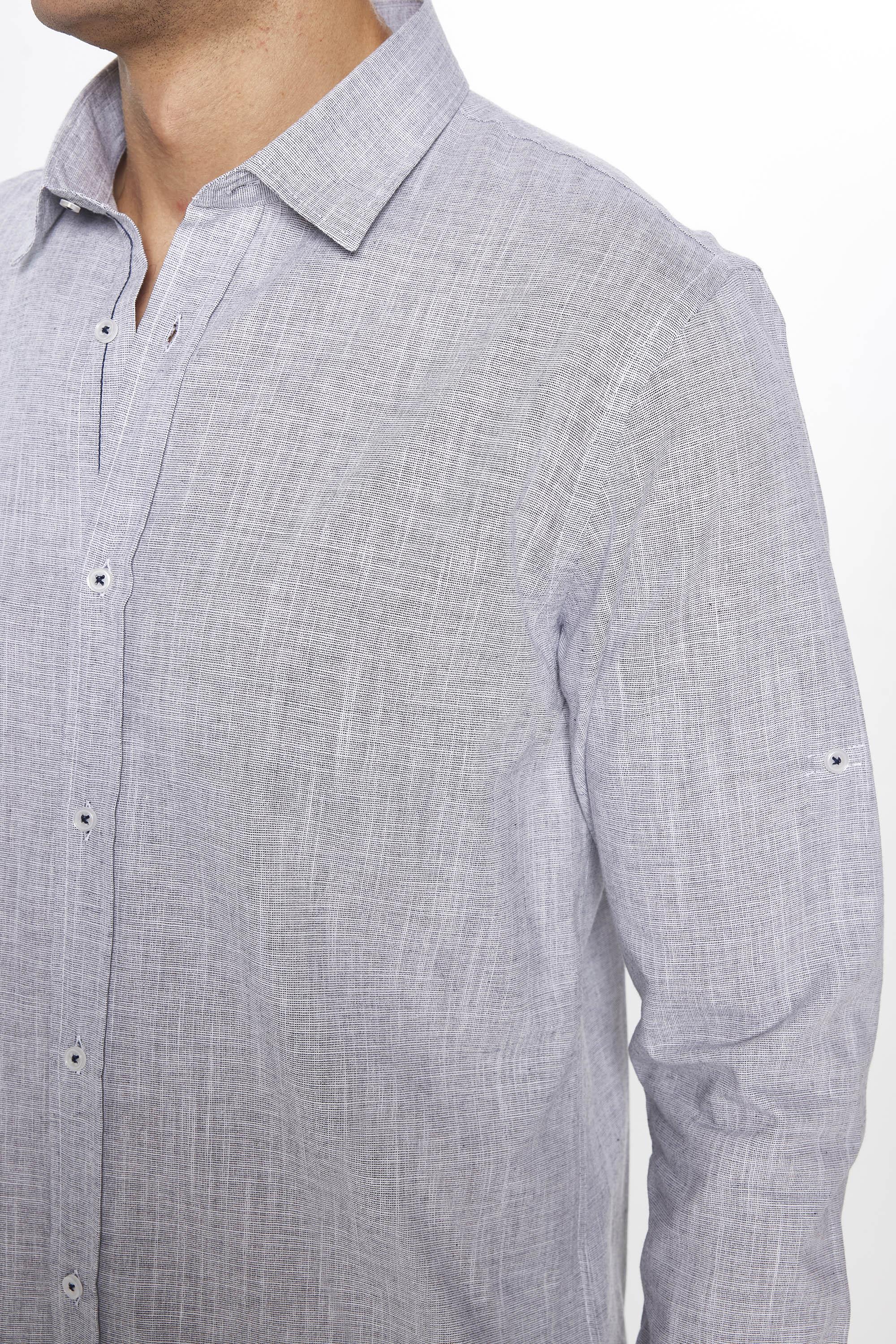 Erkek Slim Fit Dar Kesim Uzun Kollu %100 Pamuk Keten Doku Apoletli Gri Gömlek (DR230030-8510)