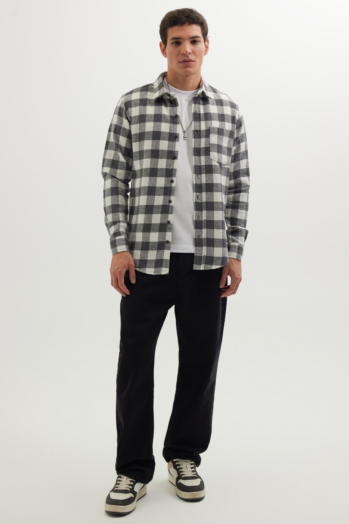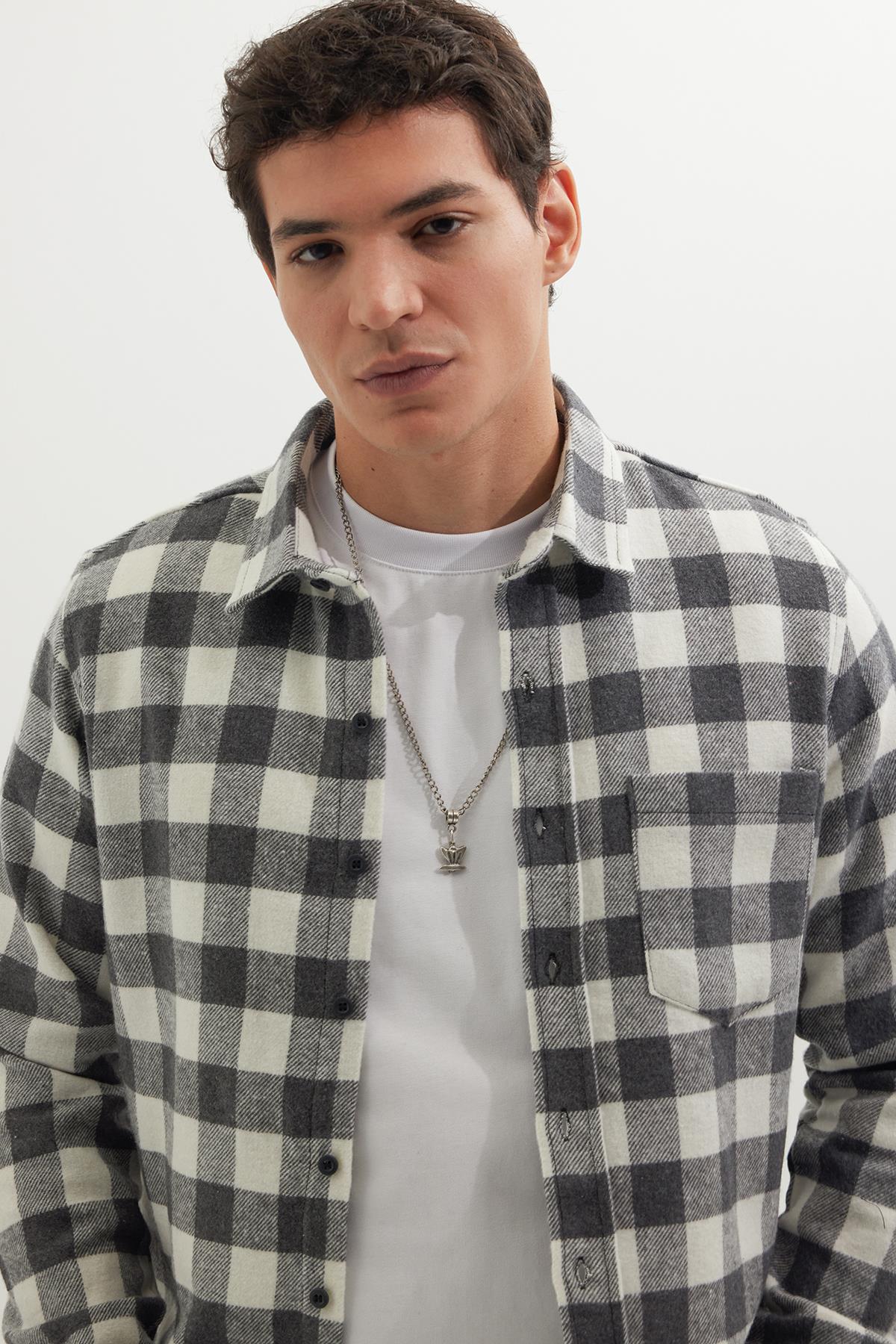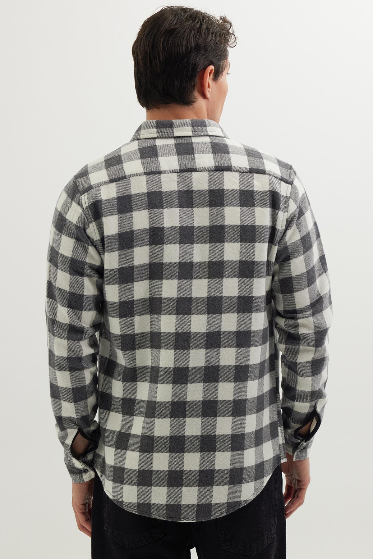 Erkek Slim Fit Dar Kesim Uzun Kollu Cepli Kareli Dama Desenli Kışlık Oduncu Gömlek (DR250021-2383)
