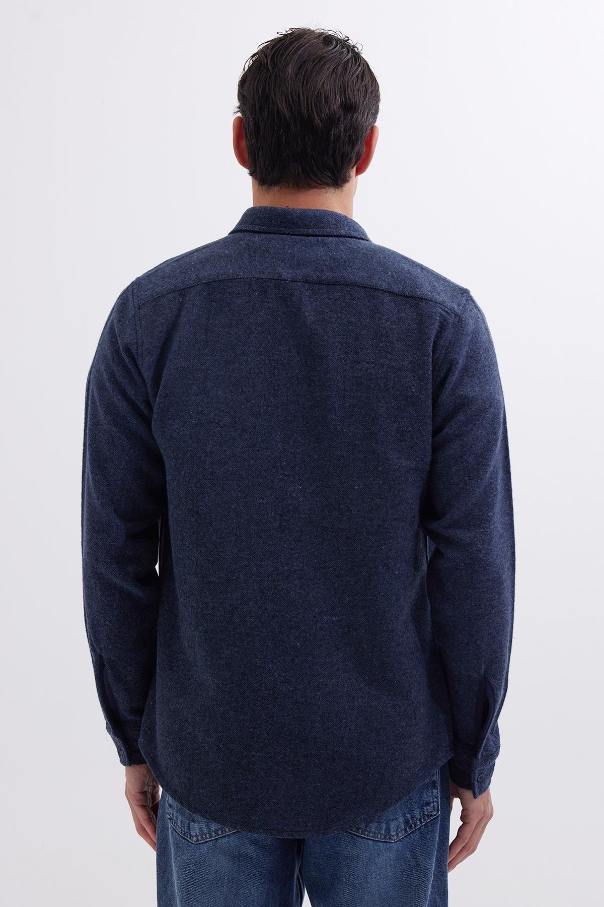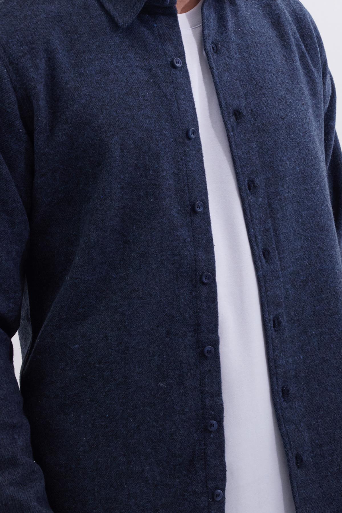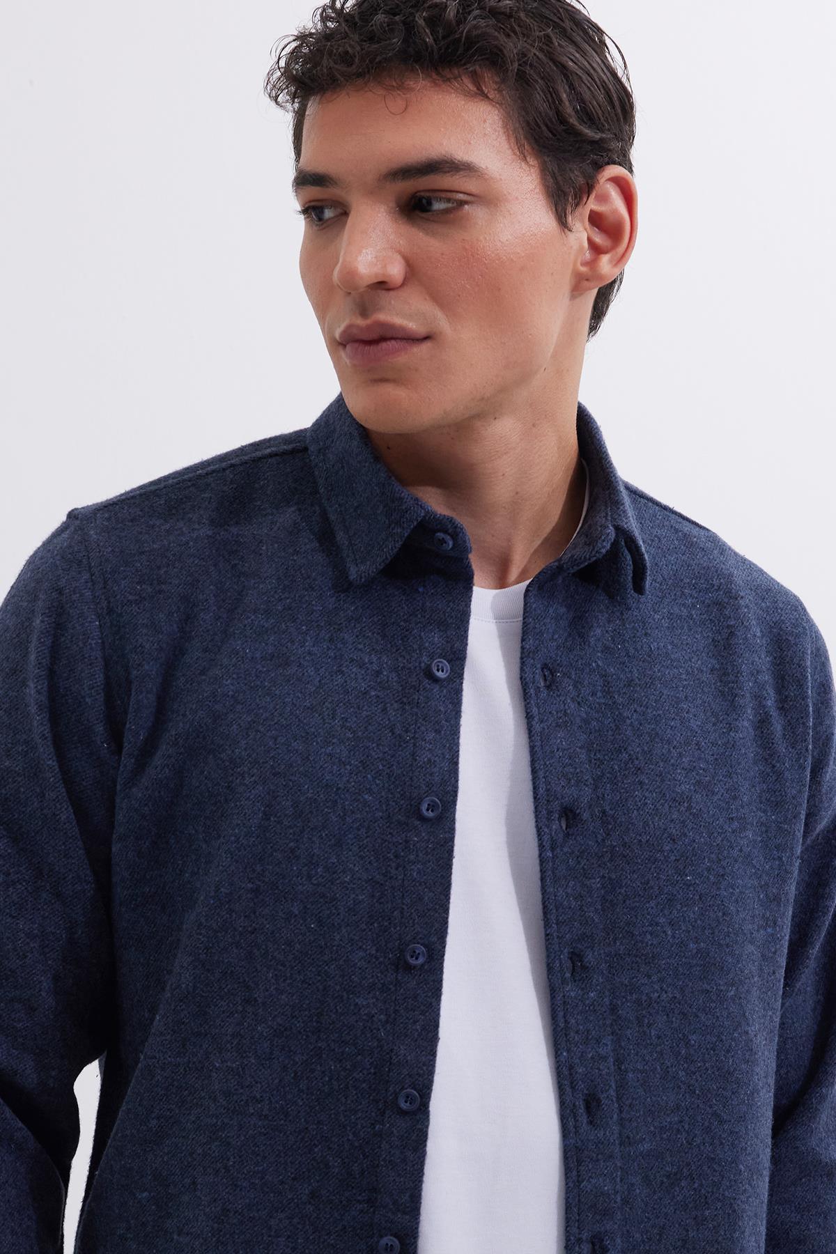 Erkek Slim Fit Dar Kesim Uzun Kollu Düz Kışlık Oduncu Lacivert Gömlek (DR250020-4042)
