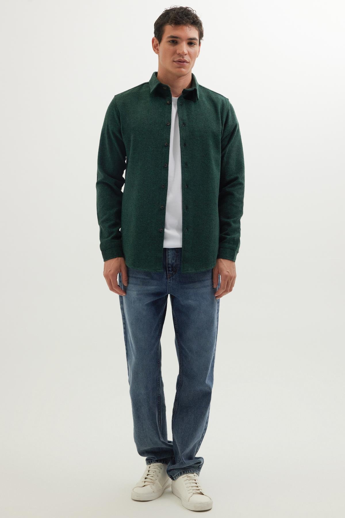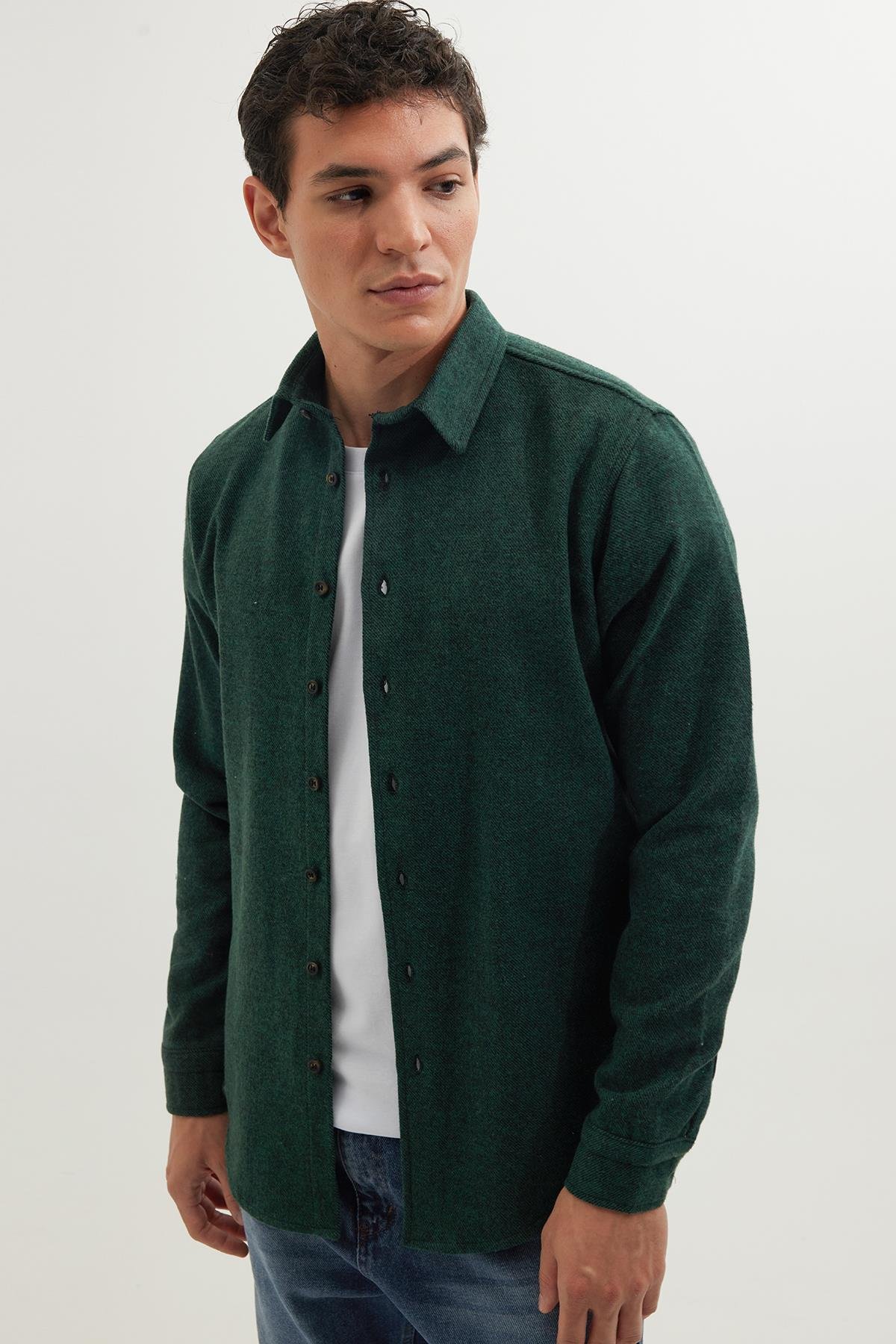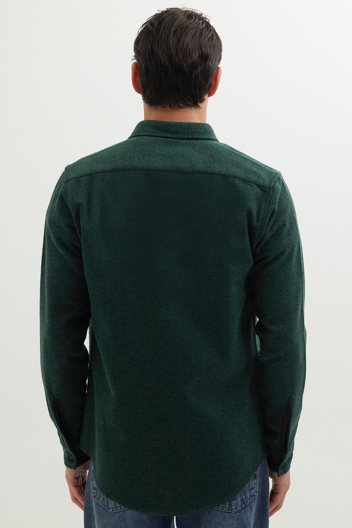 Erkek Slim Fit Dar Kesim Uzun Kollu Düz Kışlık Oduncu Yeşil Gömlek (DR250020-1800)