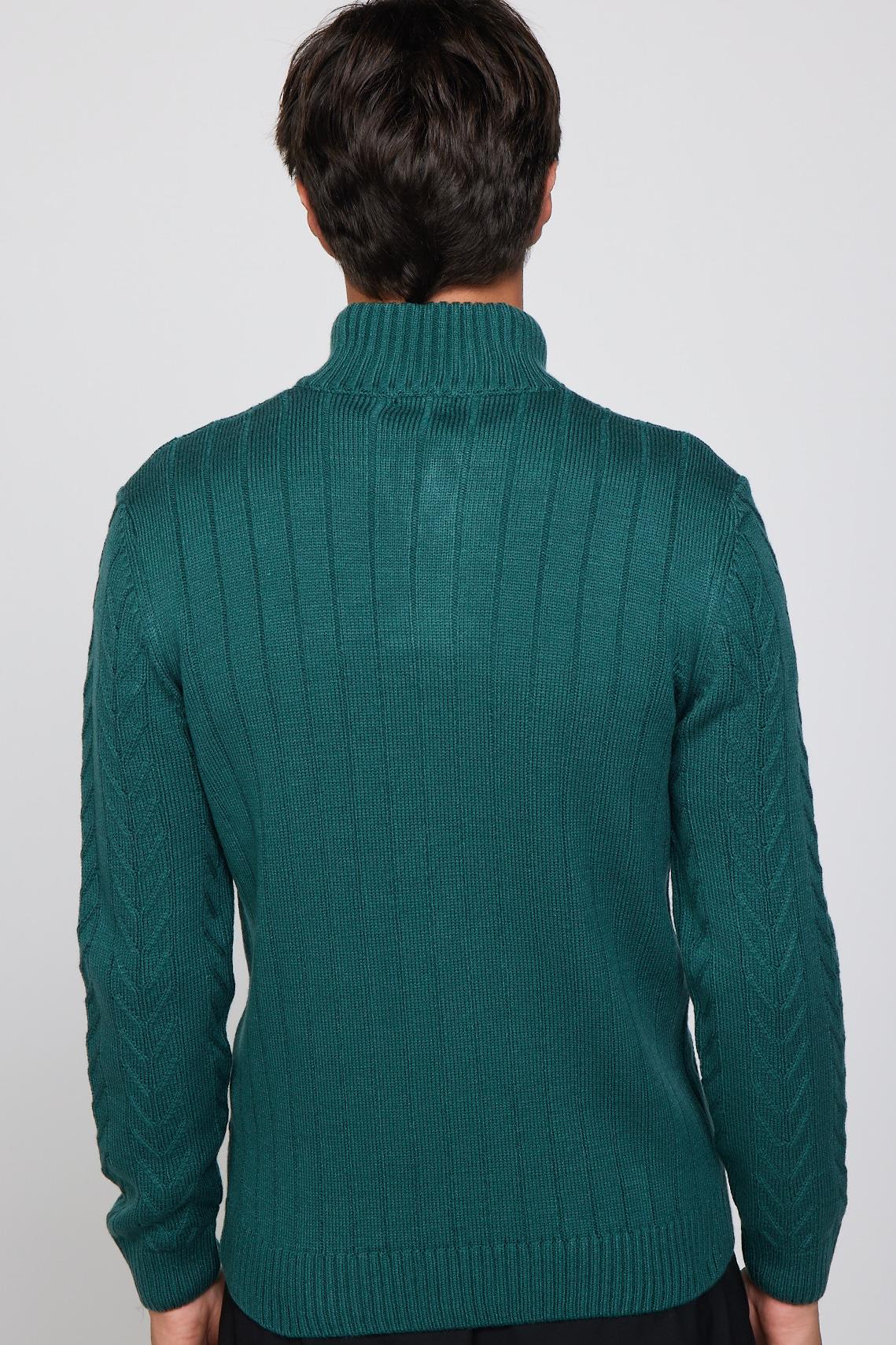Erkek Slim Fit Dar Kesim Yumuşak Dokulu Desenli Dik Yaka Düğmeli Triko Yeşil Kazak (KZ240017-GRN05)