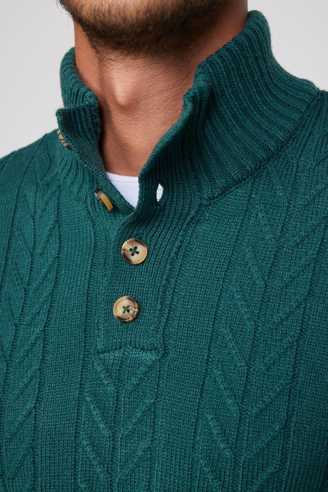 Erkek Slim Fit Dar Kesim Yumuşak Dokulu Desenli Dik Yaka Düğmeli Triko Yeşil Kazak