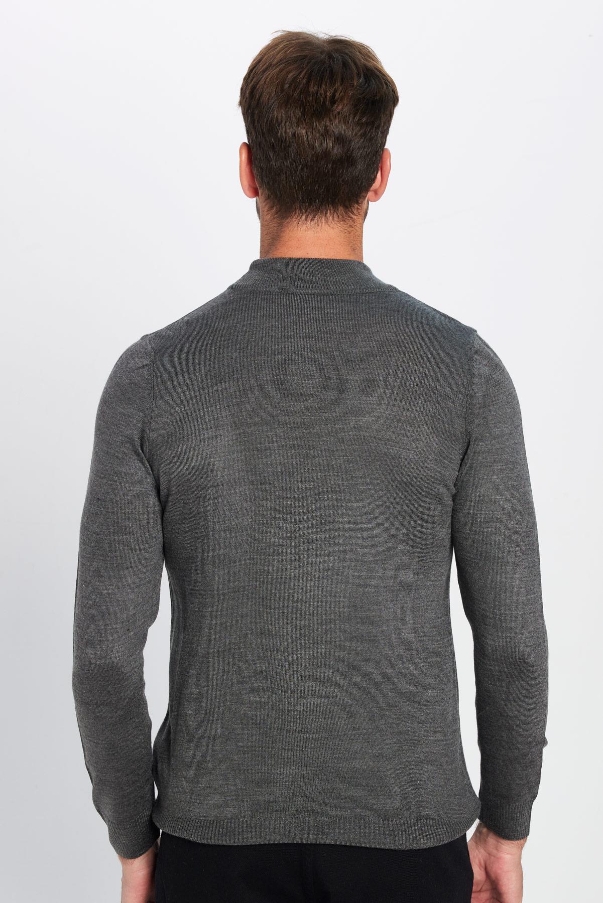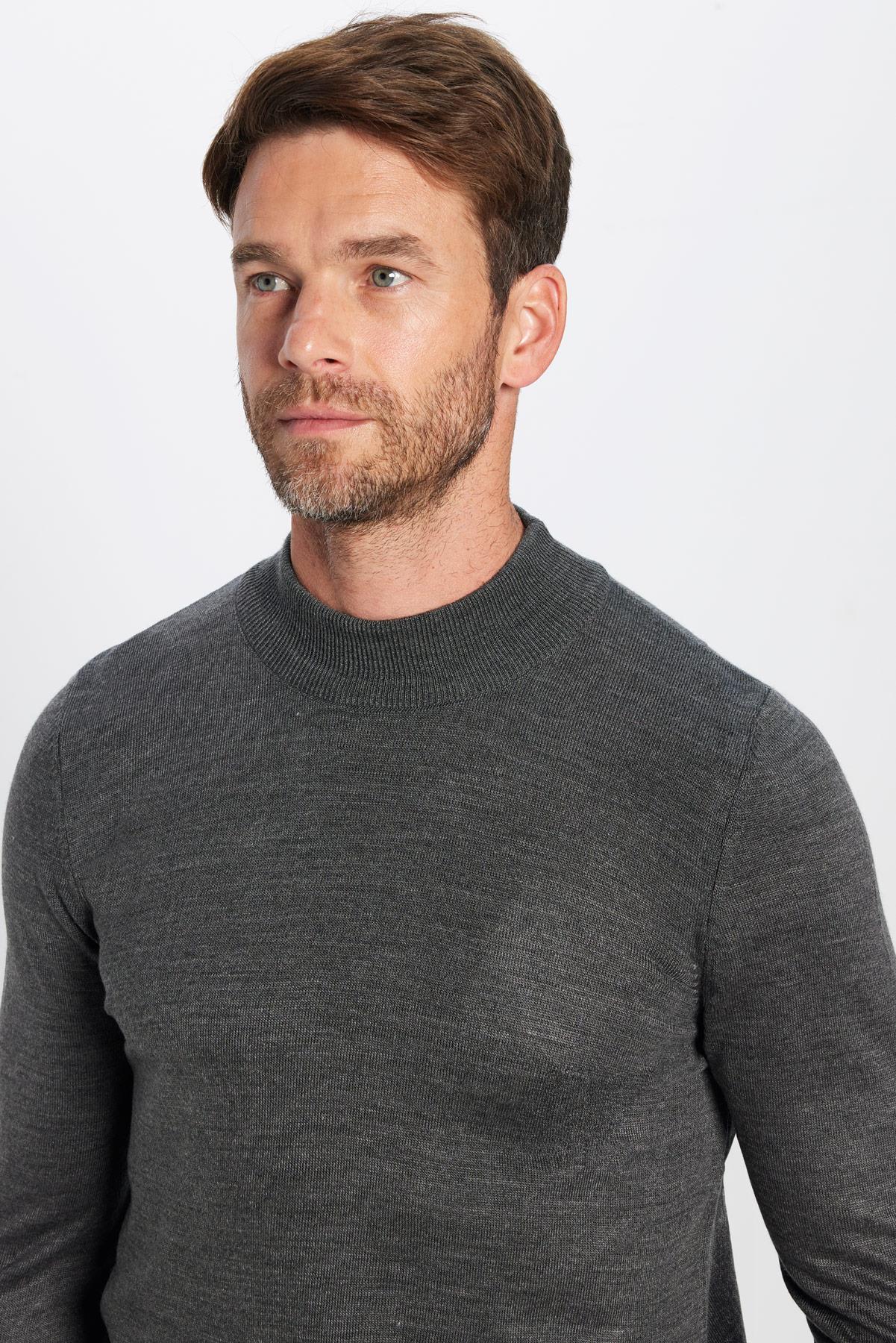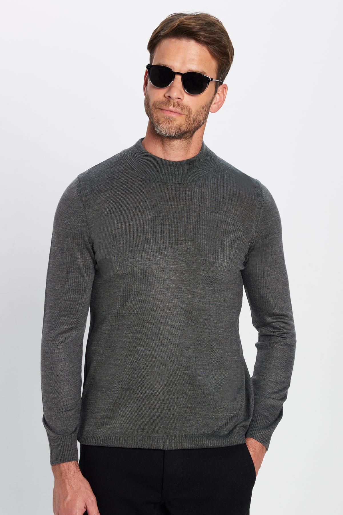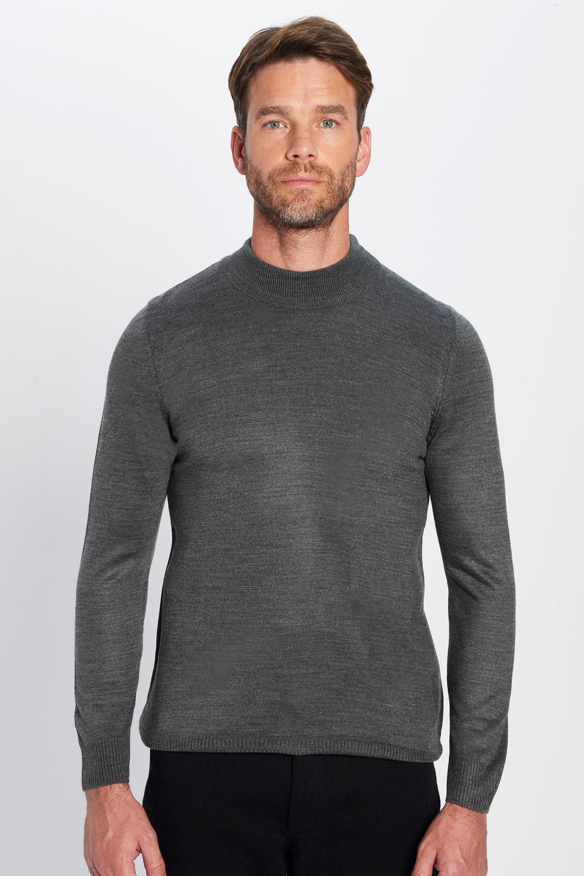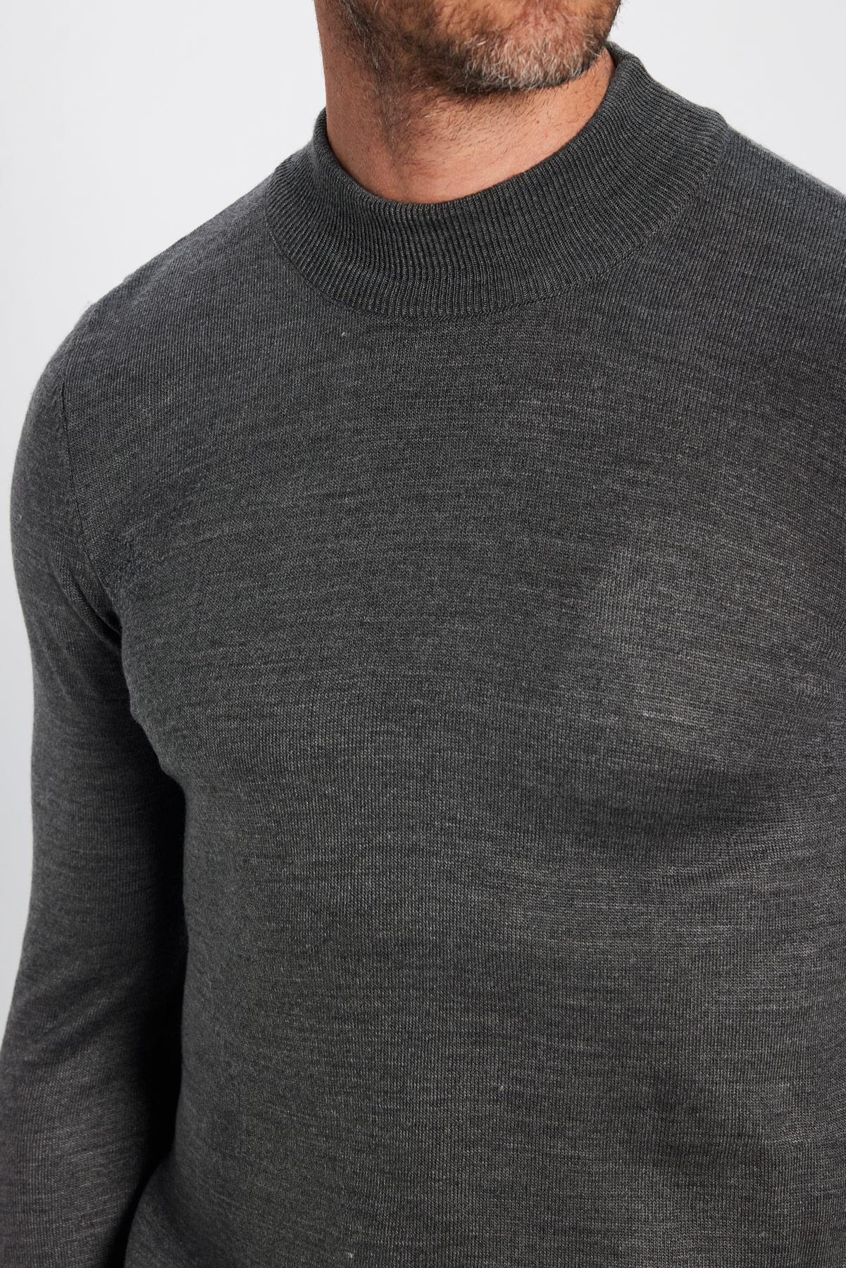 Erkek Slim Fit Dar Kesim Yumuşak Dokulu Tüylenmeyen Gri Yarım Balıkçı Yaka Triko Kazak