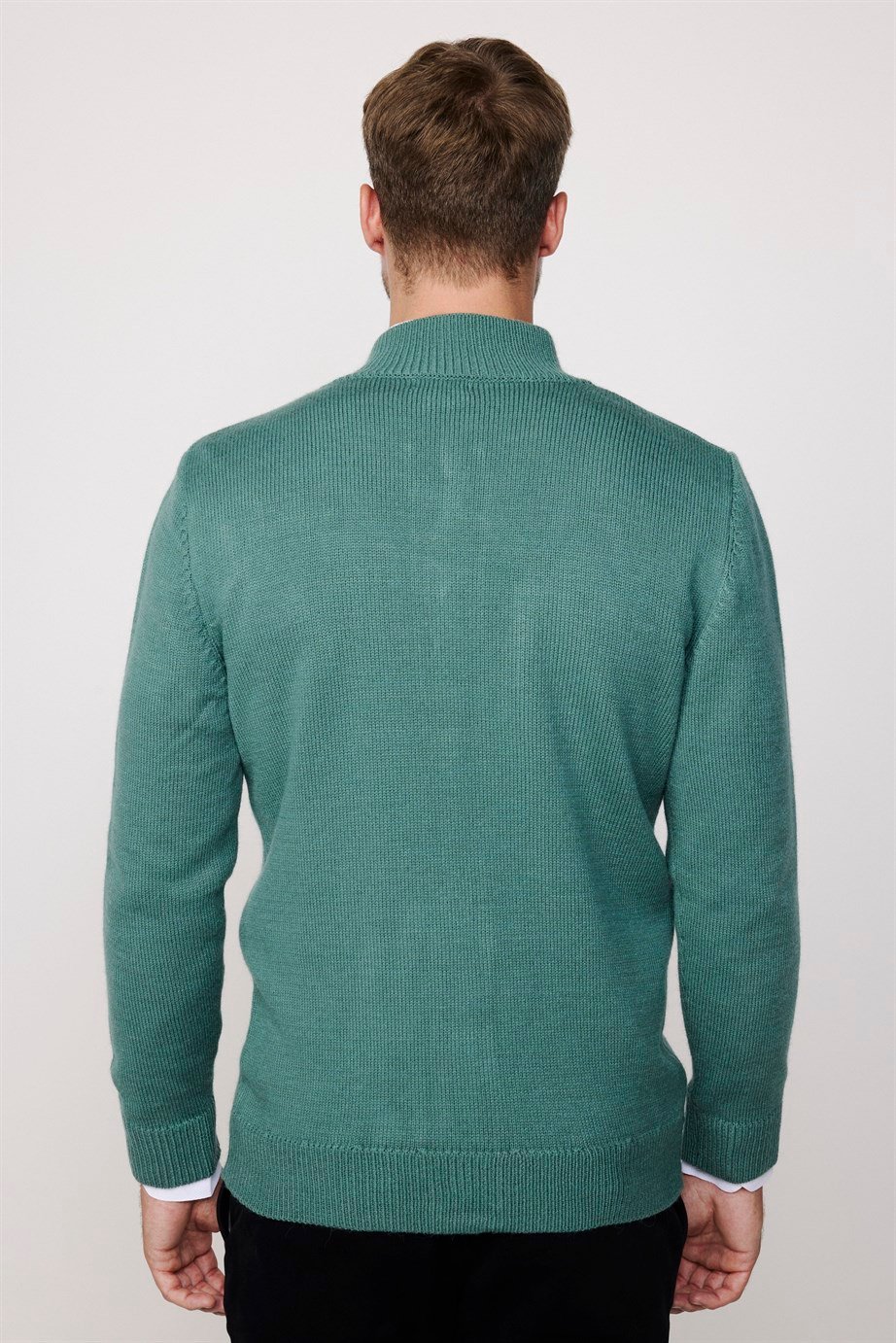 Erkek Slim Fit Dik Yaka Düğmeli Çift Cepli Yeşil Hırka (HR230003-Y06)
